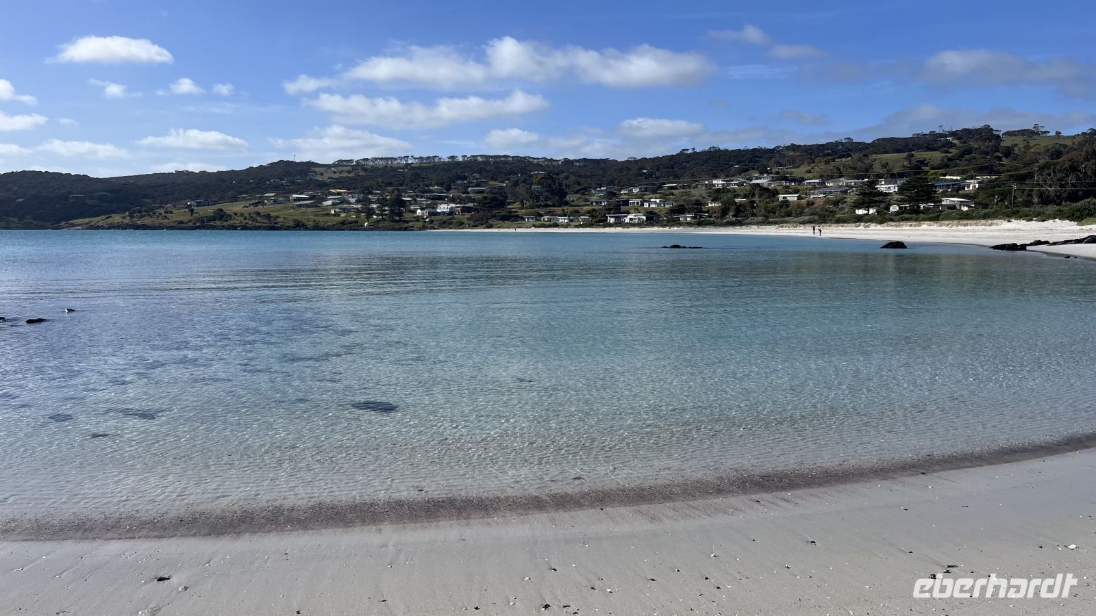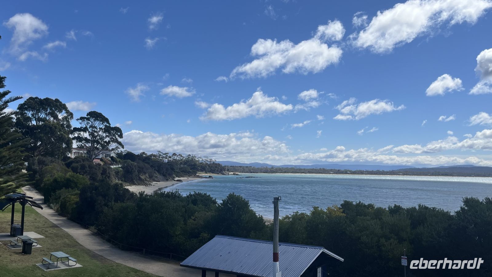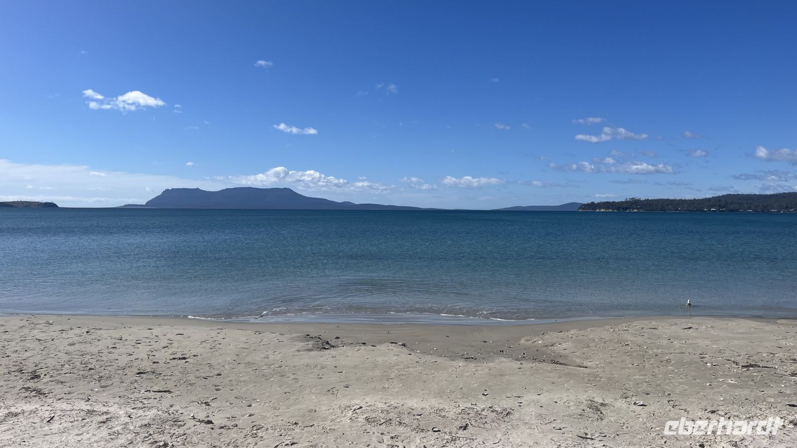 Nach dem Frühstück verlassen wir Hobart und fahren in Richtung Ostküste Tasmaniens. Die Landschaft verändert sich merklich – sanfte Hügel, dichte Wälder und immer wieder der Blick auf das tiefblaue Meer begleiten uns auf unserem Weg. Für einen kurzen Fotostopp halten wir am Strand von Swansea, wo das Meer in der Morgensonne glitzert und wir die frische Seeluft genießen.