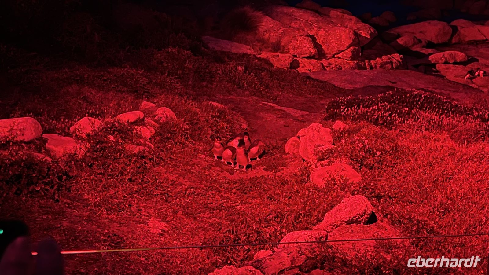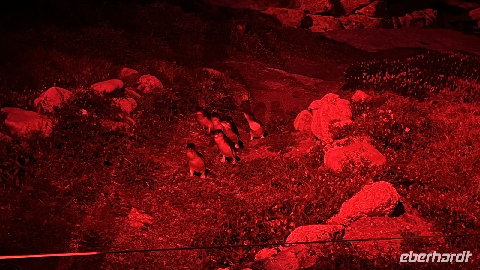 Mit speziellem Rotlicht, das die Tiere nicht stört, zeigen uns die Guides, wie die Pinguine in kleinen Gruppen aus den Wellen steigen, sich schütteln und gemächlich über den Strand watscheln. Das leise Rufen der Jungtiere aus den Nestern und das tapsige Watscheln der Rückkehrer schaffen eine fast magische Stimmung.