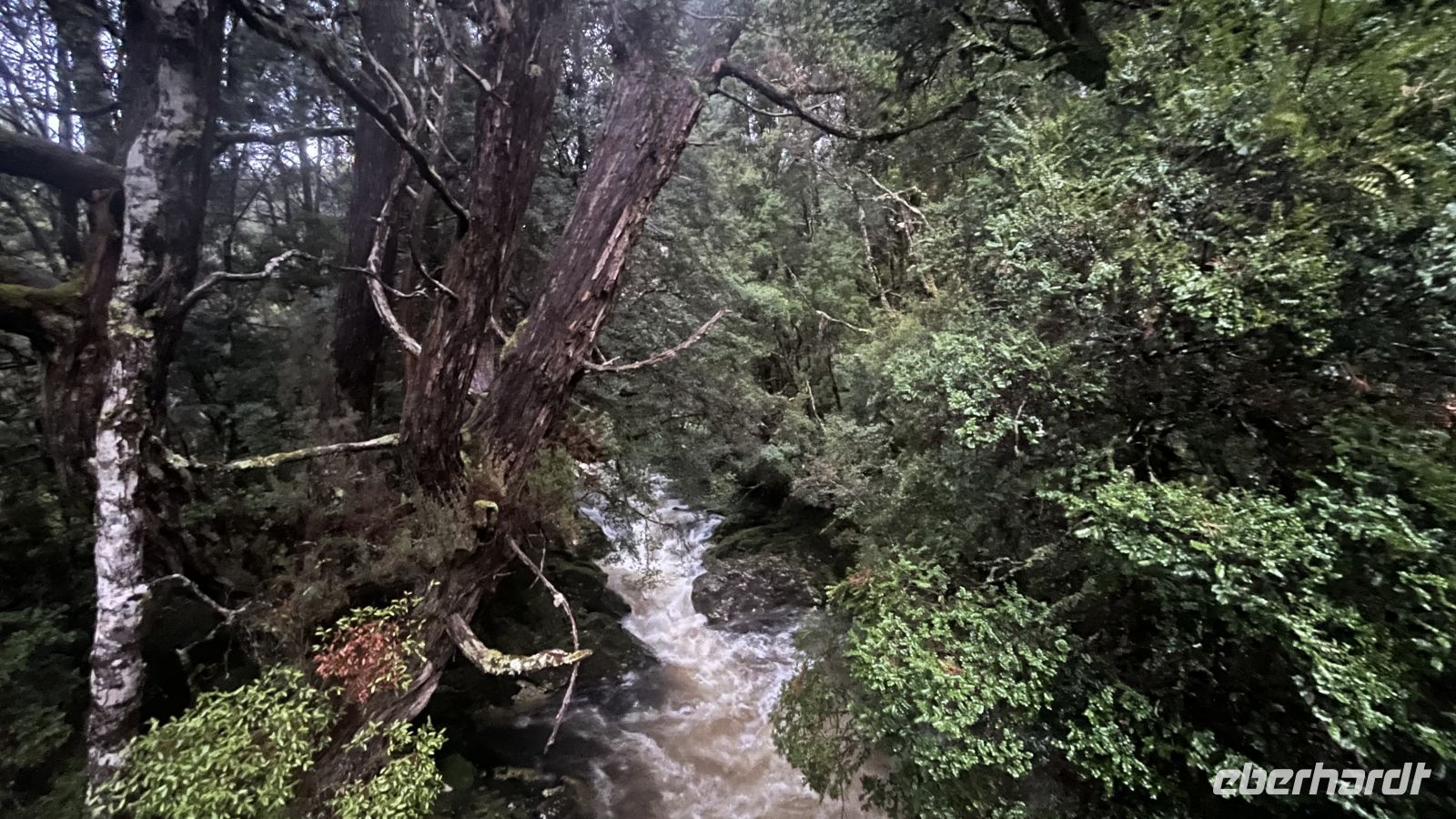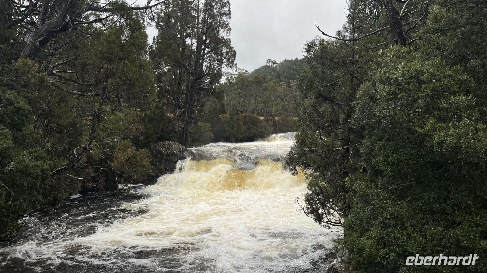 Eigentlich steht heute eine große Wanderung im Cradle Mountain National Park auf dem Programm. Doch schon beim Blick aus dem Fenster am Morgen wird klar: Das wird schwierig. Ein heftiger Sturm mit Böen bis zu 100 km/h fegt über Tasmanien hinweg, begleitet von starkem Regen. Marina erklärt uns, dass bei solchen Wetterlagen Spaziergänge im Nationalpark zu gefährlich sein können – herabfallende Äste und umstürzende Bäume sind keine Seltenheit. So beschließen wir, den Vormittag gemütlich im Hotel zu verbringen.