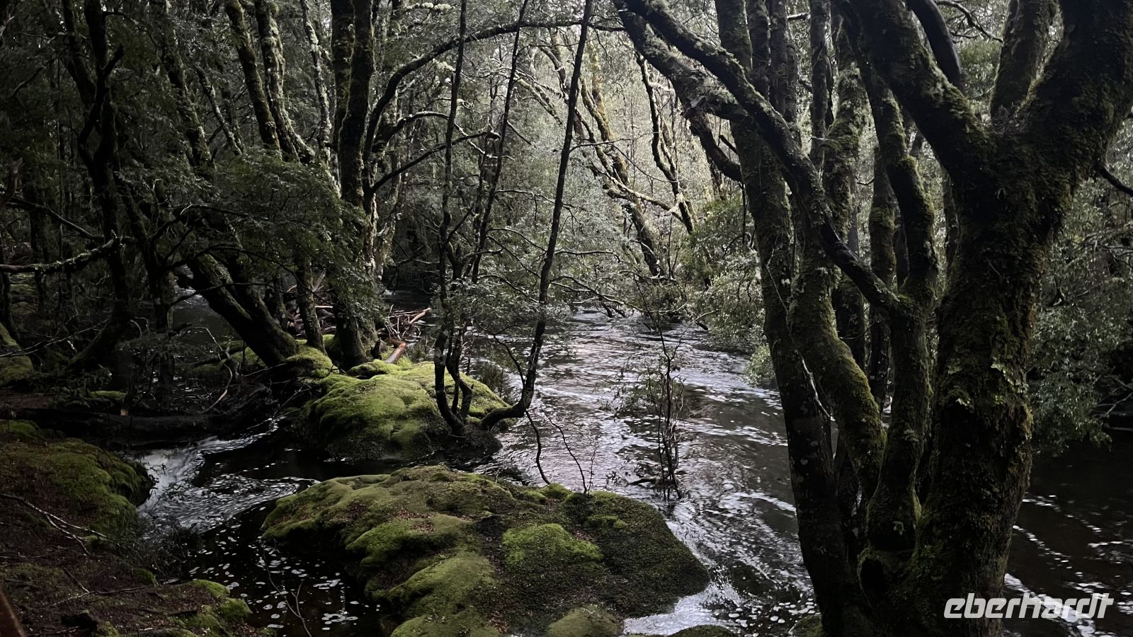 Wir machen uns direkt auf den Weg in den Mount Field National Park, einen der ältesten Nationalparks Tasmaniens. Unterwegs erzählt uns Marina viel über die wilde Natur der Insel, die für ihre dichten Wälder, klaren Flüsse und seltenen Tierarten bekannt ist. Nach einer kurzen Mittagspause starten wir zu einer kleinen Wanderung zu den Russell Falls, den wohl bekanntesten Wasserfällen Tasmaniens. Der Weg führt durch eine wunderbar feuchte, üppig grüne Vegetation, in der riesige Baumfarne und moosbewachsene Stämme eine fast märchenhafte Atmosphäre schaffen. Auch erste Vögel kommen uns hier vor die Linse.