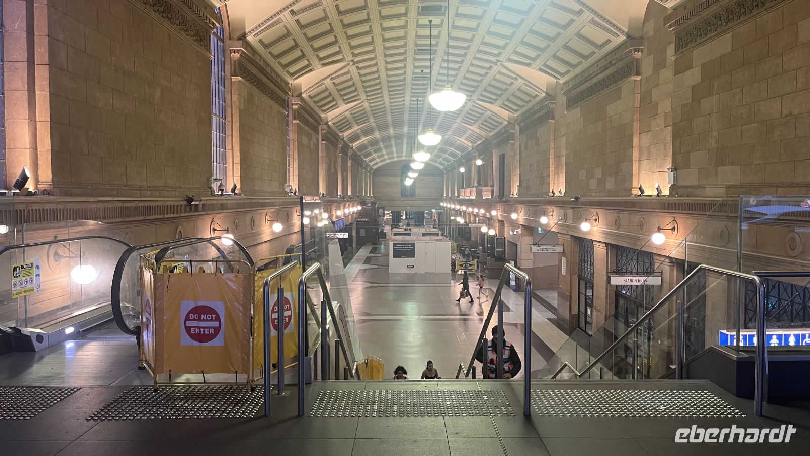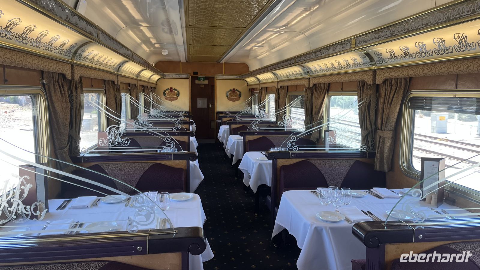 Heute steht ein ganz besonderes Highlight auf dem Programm – die Fahrt mit dem legendären Luxuszug „The Ghan“, einer Ikone australischer Eisenbahngeschichte. Am Morgen werden wir zum Bahnhof von Adelaide gebracht, wo schon reges Treiben herrscht. In der eleganten Bahnhofshalle werden wir mit einem Glas Sekt begrüßt und spüren sofort die besondere Atmosphäre dieser Reise – eine Mischung aus Abenteuer, Nostalgie und Komfort.