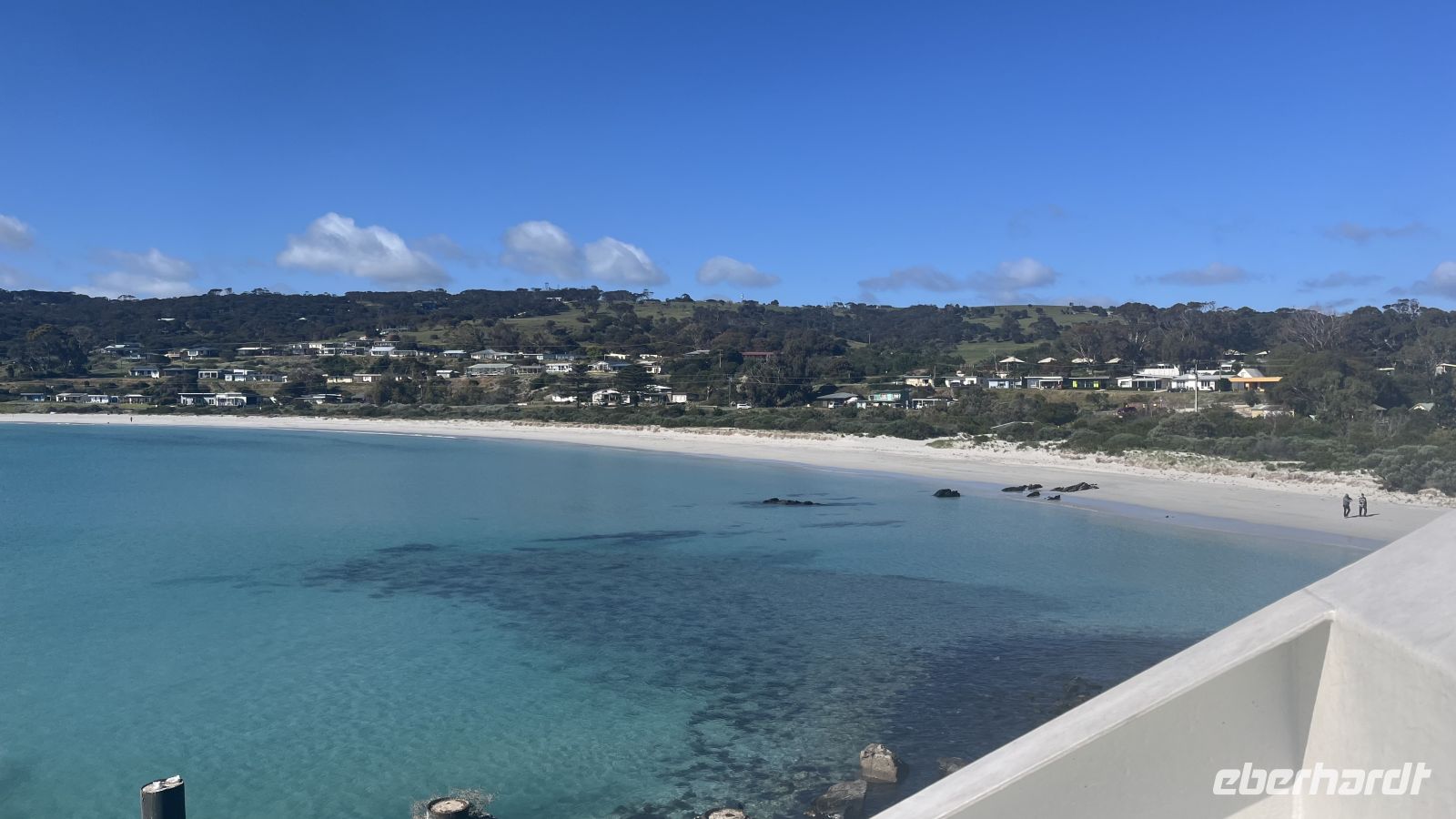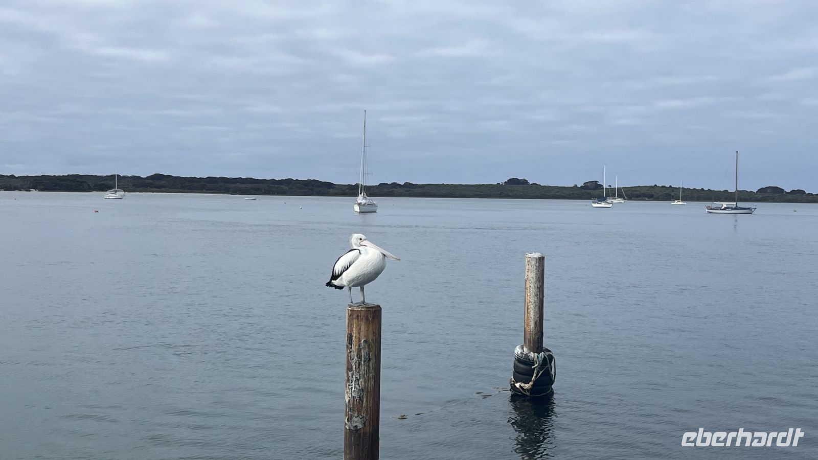 Am Nachmittag besuchen wir noch die Duck Lagoon, ein ruhiges Feuchtgebiet im Inselinneren. Hier beobachten wir verschiedene Vogelarten, die auf der Wasseroberfläche gleiten. Danach besuchen wir eine Eukalyptusfarm, auf der aus den Blättern hochwertiges Eukalyptusöl und verschiedene Naturprodukte hergestellt werden. Bei einer kleinen Führung erfahren wir, wie die Öle gewonnen werden, und probieren einige der aromatischen Produkte. Auf dem Gelände befindet sich außerdem eine Aufzuchtstation für verwaiste Kängurubabys, die hier liebevoll gepflegt und später wieder ausgewildert werden.