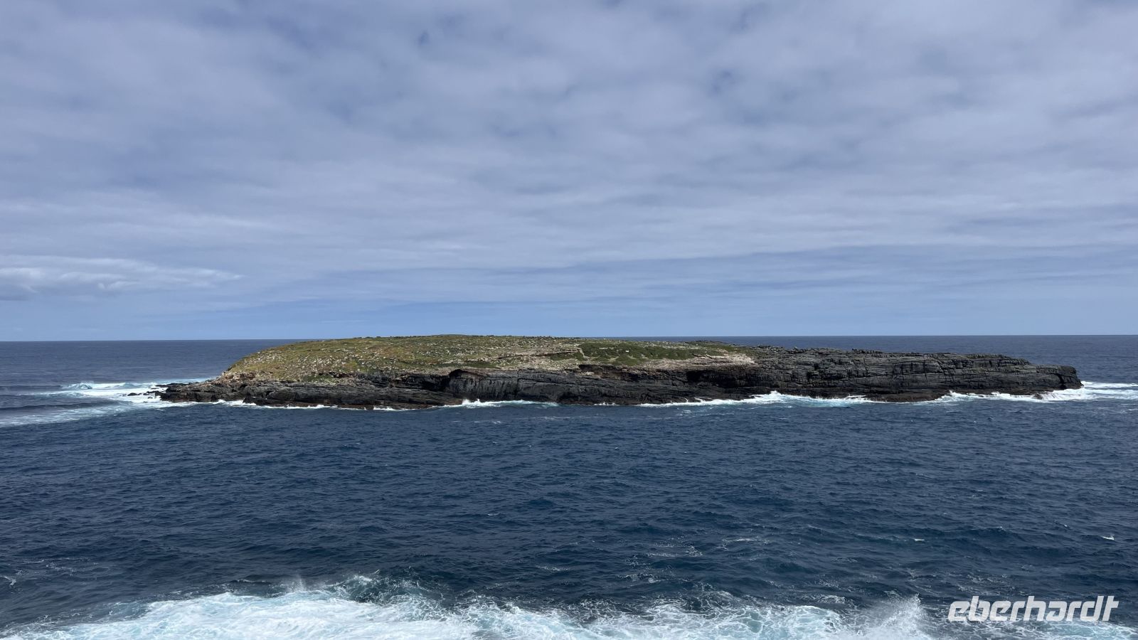 Unser nächstes Ziel sind die berühmten Remarkable Rocks, eine Ansammlung gewaltiger, vom Wind geformter Granitblöcke, die in spektakulären Formen über dem Meer thronen. Das Zusammenspiel aus orangefarbenem Fels, blauem Ozean und grauem Himmel bietet ein fantastisches Fotomotiv. Von dort geht es weiter zum Admirals Arch, einer natürlichen Felsbrücke an der rauen Südküste. Der Weg führt uns vorbei an einem malerischen Leuchtturm, und unten am Wasser tummeln sich zahlreiche Seehunde, die sich auf den Felsen sonnen oder durch die Wellen toben – ein beeindruckendes Naturschauspiel.