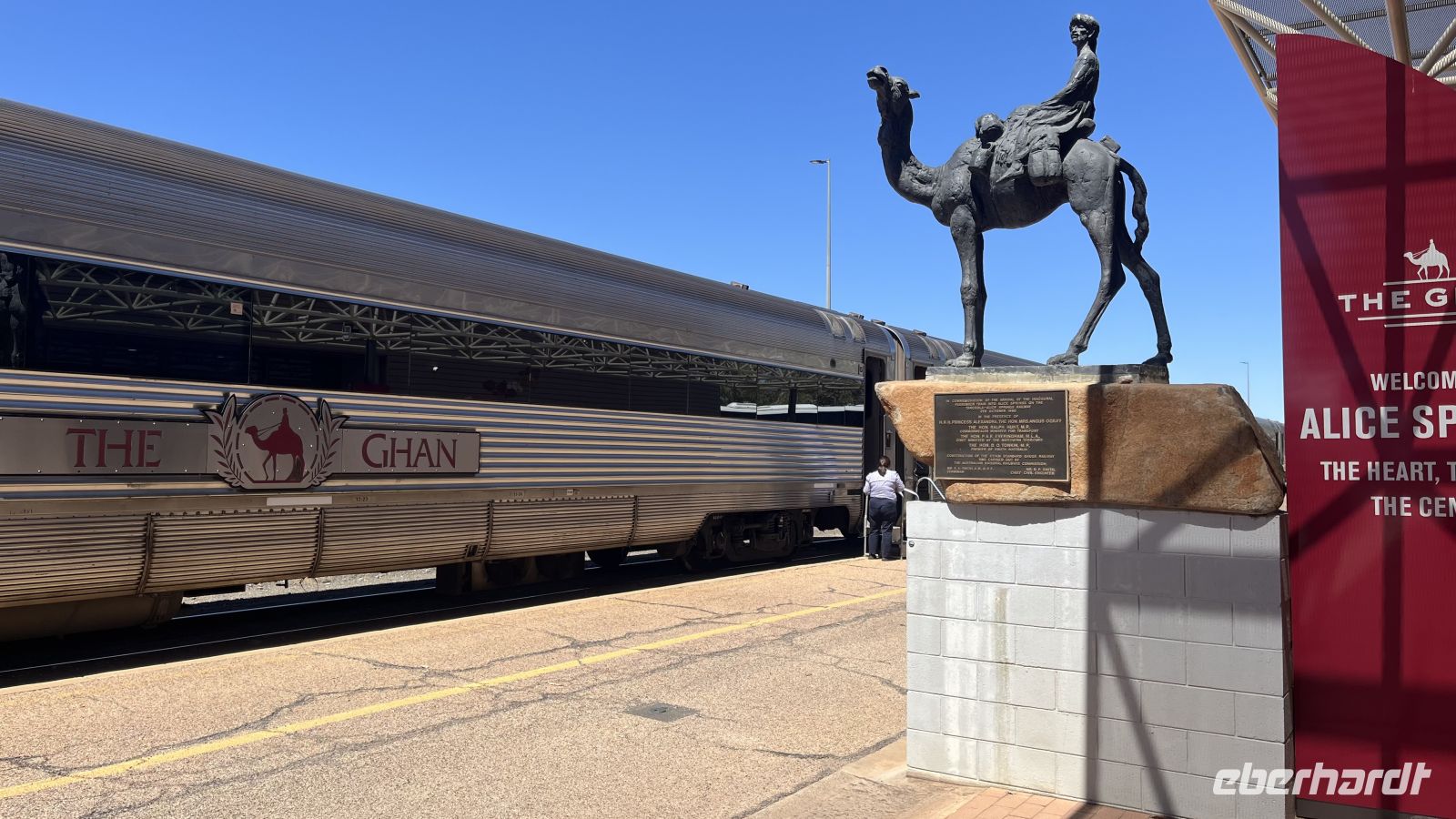Nach dieser besonderen Pause setzt der Zug seine Fahrt fort, und gegen Mittag erreichen wir Alice Springs, das Herz des australischen Kontinents. Am Bahnhof werden wir herzlich von unserer Reiseleiterin Monika begrüßt, die uns gleich zu den ersten Sehenswürdigkeiten der Stadt führt.
