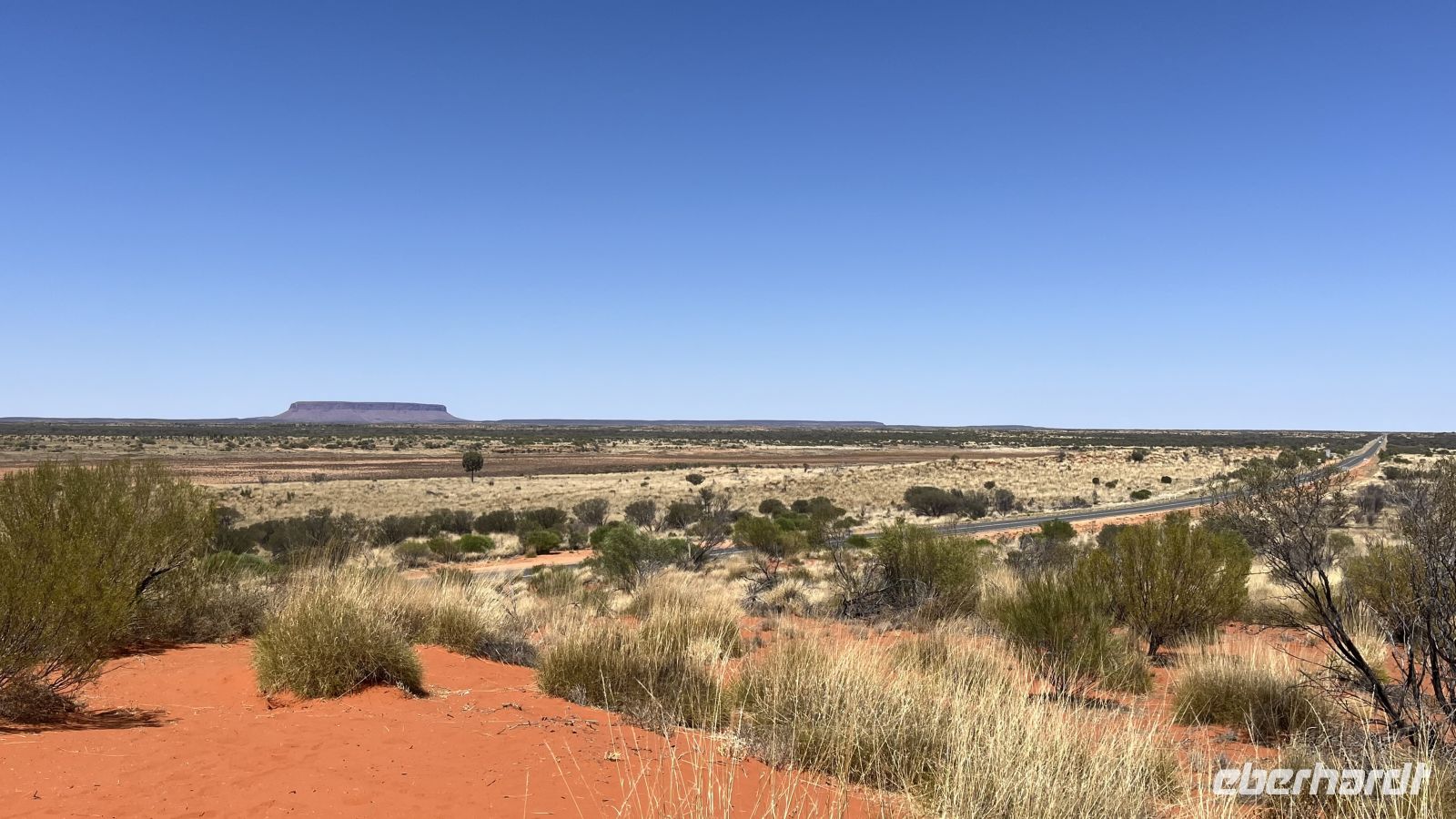Nach einem frühen Frühstück verlassen wir Alice Springs und machen uns auf die lange, aber eindrucksvolle Fahrt durch das australische Outback in Richtung Yulara, dem Tor zum Uluru-Kata-Tjuta-Nationalpark. Während der Fahrt erzählt uns Monika viel über die Entstehung der einzelnen Bundesstaaten Australiens und die Geschichte der Aborigines, deren Kultur und Mythen eng mit dieser Landschaft verbunden sind.