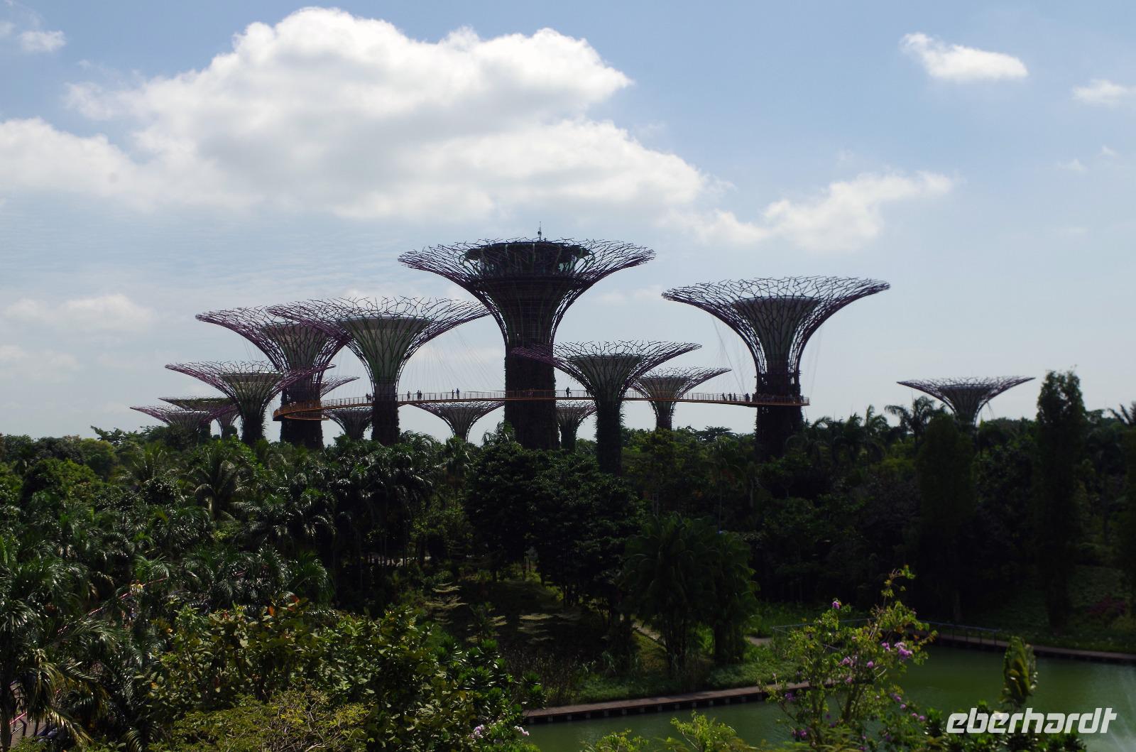 In Singapur werden wir von strahlendem Sonnenschein geweckt. Nach einem leckeren Frühstück in Buffetform trifft sich der Großteil der Gäste gegen 10.00 Uhr, um gemeinsam mit dem Taxi für rund 8 bis 10 SGD zum berühmten Marina Bay Sands Hotel zu fahren. Vorher checken wir im Hotel aus und unser Gepäck wird sicher an der Rezeption verstaut. Die Zimmer sind bis 12.00 Uhr zu verlassen. Ganz in der Nähe vom Marina Bay Sands Hotel befindet sich das mit einer Höhe von 165 Metern zweithöchste Riesenrad der Welt, der "Singapore Flyer". Nach seiner Eröffnung im März 2008 bis zur Einweihung des "The High Roller" in Las Vegas im April 2014 galt es noch als höchstes Riesenrad der Welt. Die Rundfahrt dauert circa 30 Minuten und bietet einen Rundblick über die ganze Stadt. Bedauerlicherweise werden momentan Bauarbeiten am Riesenrad vorgenommen, so dass eine Fahrt nicht möglich ist. Am Marina Bay Sands Hotel angekommen besuchen wir die Aussichtsplattform und genießen einen tollen Blick über diese einzigartige Weltmetropole. Gegen Mittag laufen wir weiter zur mit dem Marina Bay Sands Hotel über eine Passagierbrücke verbundenen Parkanlage "Gardens by the Bay". Diese auf künstlich aufgeschüttetem Land angelegte Parkgelände der 2012 eröffneten Gardens by the Bay ist über 100 Hektar groß. Die Gardens by the Bay haben viel zu bieten: Zum Beispiel zählen die "Super Trees" dazu. Dies sind mit Pflanzen bewachsene 25 und 50 Meter hohe Stahlgerüste, welche unter anderem zur Aufzucht selten vorkommender Pflanzenarten oder durch Sammlung des Regenwassers zur Pflanzenbewässerung verwendet werden. Ihren Namen haben diese vertikale "Gärten" durch ihre Form erhalten: Ihr Gerüst aus neun bis sechzehn Stockwerken hat die Gestalt eines riesigen Mammutbaumes. Über den zwischen zwei Bäumen errichteten OCBC Skyway können die Besucher - und natürlich auch wir - einen tollen Blick über die riesige Anlage genießen. Noch ein Tipp für den Abendspaziergang: Die "Bäume" werden nachts beleuchtet und eine tolle rund 15-Minütige-Show mit Licht und Ton ist zu sehen und zu hören :-) Der Bay South Garden ist mit circa 54 Quadratmetern der größte Garten in Singapur. Als Inspiration für ihn soll eine Orchidee, genauer gesagt die Nationalblume des Landes, die "Vanda Miss Joaquim", gedient haben. Im Garten befinden sich zwei aus Glas errichtete Gewächshäuser, deren Entwurf vom Architekturbüro Wilkinson Eyre aus England stammte. Im mit 1,28 Hektar großem Glashaus, dem Flower Dome ("Blumenkuppel"), werden typische Pflanzen milden und halbtrockenen Klimas wie zum Beispiel Affenbrotbäume, Olivenbäume oder die Chilenische Araukarie gezeigt. Das kleinere Glashaus mit rund 0,8 Hektar hat den Namen Cloud Forest ("Nebelwald"). Zu bestaunen ist eine rund 35 Meter hohe, von künstlichem Nebel umschlossene, einem Berg ähnelnde Stahlkonstruktion mit Innenwasserfall, welche mit Pflanzen der Tropen in einer Höhe von bis zu 3.000 Metern über Meereshöhe wie beispielsweise Orchideen oder Bromelien versehen ist. Ein Besuch der Gewächshäuser lohnt sich auf jeden Fall, vielleicht beim nächsten Stoppover in Singapur :-) Der Park kann jederzeit besucht werden, lediglich für den Besuch der Gewächshäuser oder einem Spaziergang über den Skyway ist ein Eintrittsgeld zu entrichten. Nach der gemütlichen Fahrt spazieren wir ganz entspannt zum Hotel zurück. Es ist schon sehr heiß, aber wir haben ja unsere Wasserflaschen dabei und es gibt immer wieder Schattenpausen unterwegs :-) Wir gönnen uns noch einen gemeinsamen Mittagssnack im Bayside Café & Bar, welches sich ganz in der Nähe vom Merlion befindet. Gegen 14.30 Uhr spazieren wir weiter zum Hotel zurück, welches wir rund 30 Minuten später erreichen. Alle Gäste und die Reisebegleitung treffen sich nach und nach in der Hotellobby. Um 16.00 Uhr werden wir von unserem örtlichen Reiseleiter David zur gemeinsamen halbtägigen Stadtrundfahrt abgeholt. Die Koffer werden verladen und los geht es ;-) Zuerst fahren wir nach Chinatown, wo wir unter anderem den buddhistischen Tempel "Thian Hock Keng Temple" besichtigen. David erzählt uns, dass die Lotusblüte ein ganz wichtiges Symbol sowohl für den Hinduismus als auch für den Buddhismus ist. Normalerweise wachsen die Lotuspflanzen in Schlamm, also in schmutzigem Wasser, so trüb "wie unsere Seele und Geister". Aber wenn wir aufrichtig sind, können wir eine Lotusblüte sein. Sie wachsen aus dem Schlamm, sind schön und sauber. Im übertragenen Sinne bedeutet dies, dass sich der Mensch von seinen "Sünden" befreien kann. Die Lotusblüten sind vielmals in den Tempeln zu sehen. Das Wetter meint es allerdings nicht so gut mit uns :-( Es regnet in Strömen, eine Besserung ist wohl auch nicht in Sicht. Weiter besuchen wir eine typische chinesische Apotheke und Schneiderei. Auf dem chinesischen Markt zeigt uns David die uns unbekannte Frucht "Musang King" des Durianbaumes "Durio zibethinus". Die Frucht ist auch als Durian, Zibetfrucht oder Stinkfrucht bekannt. Dann geht es weiter zum nationalen Orchideen Garten "National Orchid Garden", welchen wir gegen 17.30 Uhr besuchen. Allerdings regnet es immer noch in Strömen, so dass nicht alle Gäste den Garten besichtigen möchten. Diejenigen Gäste, welche den Garten besuchen, bestaunen die großartigen Orchideen. Wir schauen uns natürlich auch die nach Angela Merkel benannte Blume an :-) Letzte Station unserer Stadtrundfahrt ist der Besuch von "Little India", wo uns David die verschiedenen Gemüsesorten und Gewürze zeigt. Nach einem interessanten Nachmittag heißt es schon wieder "Auf Wiedersehen Singapur!" zu sagen, das großartige Australien freut sich bereits auf uns! Wir fahren zum internationalen Flughafen von Singapur, der FAST Check-In und die Kofferaufgabe erfolgen sehr gut. Dann verabschieden wir uns freundlich von unserem örtlichen Reiseleiter David, passieren die Sicherheitskontrolle und begeben uns zum Abfluggate F30 in Terminal 2. Die Wartezeit überbrück