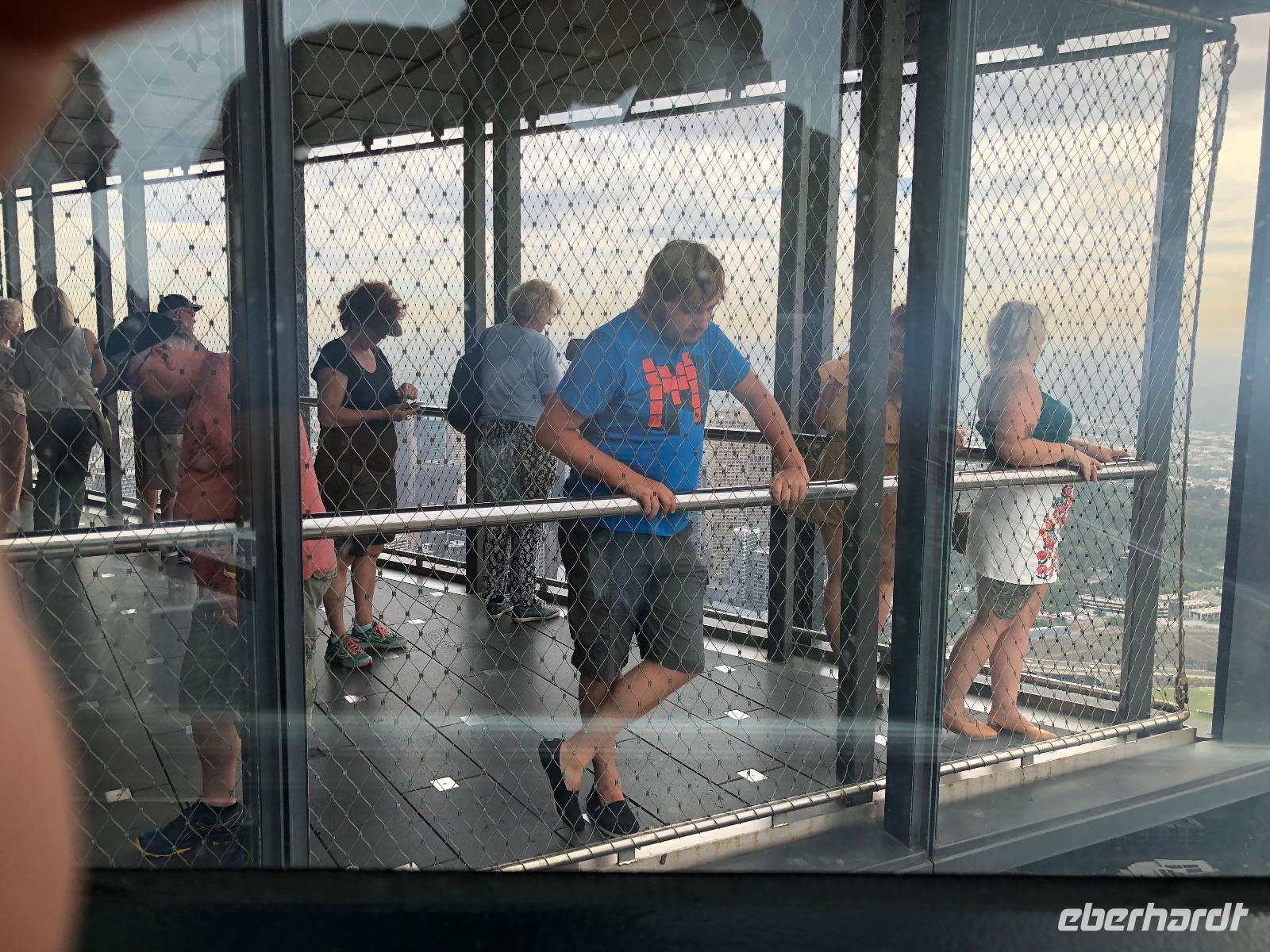 Bei strahlendem Sonnenschein werden wir geweckt. Heute werden 19 bis 28 Grad erwartet. Somit lassen wir den Regenschirm auf dem Schiff und packen eher die Sonnencreme und Sonnenschutz ein! Ab 07.30 Uhr besteht die Möglichkeit im Buffet-Restaurant "Horizont Court" Deck 14 hinten zu frühstücken. Pünktlich um 08.00 Uhr erreichen wir die Metropole Melbourne. Als Hauptstadt des Bundesstaates Victoria ist Melbourne die zweitgrößte Stadt nach Sydney in Australien und heute leben hier über 4,25 Millionen Einwohner. Von Einwanderern unterschiedlichster Herkunft geprägt wurde Melbourne bereits mehrmals zur lebenswertesten Stadt der Welt gewählt und begeistert durch ihre Offenheit und Lebensfreude. Zahlreiche vornehme viktorianische Bauten aus der Mitte des 18. Jahrhunderts erinnern an die Zeit des frühen Goldrausches. Das kulturelle Herz der Stadt bildet das Victorian Arts Centre, welches mit seiner Architektur an den Eiffelturm erinnert und mit Oper, Theater und attraktiven Ausstellungen immer wieder Besucher anlockt. Auch wir wollen uns von der lebensfrohen Atmosphäre der Stadt begeistern lassen! Am Vorabend sind die Gäste von der Reisebegleitung schriftlich eingeladen worden, an einem individuellen Stadtrundgang zusammen mit der Reisebegleitung teilzunehmen. Wir treffen uns um 09.30 Uhr und verlassen gemeinsam das Schiff. Im Hafenterminal kaufen wir uns eine Myki-Fahrkarte für AUD 15 pro Person. Die Fahrkarte ist gültig für die Hin- und Rückfahrt sowie alle Bus- und Tram-Linien im Zentrum von Melbourne. Die Bezahlung erfolgt in Bar oder mit Kreditkarte. Des Weiteren erhalten wir am Informationszentrum im Hafenterminal einen Stadtplan und vom freundlichen Personal nützliche Tipps für einen individuellen Tag in Melbourne. Wir stellen uns in der Menschenschlange an der Bushaltestelle an und fahren nur wenige Minuten später mit dem Bus 109 ins Zentrum. Die Fahrt mit dem Bus dauert rund 20 Minuten. Im Zentrum von Melbourne angekommen besuchen wir zuerst den Eureka-Tower mit Blick über ganz Melbourne in der 88. Etage. Der Eureka Tower wurde im Jahre 2006 gebaut. Mit einer Höhe von 297 Metern und 91 Stockwerken ist dieser Turm momentan das größte Gebäude in Melbourne. Der Tower befindet sich nur wenige Gehminuten von der Bushaltestelle entfernt, wo wir ausgestiegen sind. Bei einer Gruppengröße von mehr als 15 Personen erhalten die Gäste eine Ermäßigung für den Besuch des Eureka-Towers. Der reguläre Ticketpreis beträgt AUD 22, mit Gruppen-Ermäßigung bezahlen wir nur AUD 17,60. Dann wird unser Handgepäck durchleuchtet und anschließend fahren wir mit dem Fahrstuhl in die 88. Etage. Des Weiteren besteht die Möglichkeit des "Edge-Erlebnisses". Der Preis beträgt 12 AUD pro Person. "The Edge" ist wirklich zu empfehlen. Hier befinden wir uns in einem Glaskubus, welcher langsam nach außen fährt. Erst ist die Glasscheibe unter uns noch ganz milchig, dann werden Geräusche von kratzenden und zersplitternden Scheiben abgespielt. Ohne Vorwarnung wird aus der milchigen eine durchsichtige Platte und wir können 88 Etagen nach unten schauen. Schon ein komisches und spannendes Gefühl zugleich :-) Das Gruppenfoto wird erst am Schluss gemacht. Wer möchte, kann sich als Erinnerung gern noch drei Ausdrucke Plus Code für das Digitalfoto für insgesamt 15 AUD kaufen. Mit dem Gefühl "The Edge" 'überlebt' zu haben, werden wir diese Nacht sicherlich sehr gut schlafen ;-) Anschließend an dieses spannende Erlebnis spazieren wir rund 30 Gehminuten zum Kriegerdenkmal "Shrine of Remembrance", in Deutsch "Schrein der Erinnerung"", in der St. Kilda Road und einem großen Park, der King's Domain. Errichtet wurde dieses Denkmal zwischen 1928 und 1934. Heute ist dies eine zentrale Gedenkstätte zu Ehren für die 60.000 Australier, welche im Kriegsdienst gefallen sind. Zum "ANZAC Day", Abkürzung für "Australian and New Zealand Army Corps", am 25. April und Remembrance Day am 11. November finden auf diesem Platz die jährlichen Feierlichkeiten statt. Wir laufen die Stufen hinauf bis zum Balkon des Denkmals, wo wir einen großartigen Ausblick auf die Skyline von Melbourne haben. Zudem sehen wir das Gesicht des Stammesführers William Barak, welches über Melbournes CBD in der Fassade des Swanston Square-Gebäudes thront. Die Balkone des Apartmentturms waren so geformt worden, dass sie das 85-Meter-Portrait aus der Ferne zeigen. Barak war der letzte Stammesführer "Ngurungaeta" des Wurundjeri-Willam-Stammes und ein Anwalt für soziale Gerechtigkeit, welcher von 1824 bis 1903 lebte. Die Sonne meint es fast schon zu gut mit uns. Für einen Spaziergang bei fast 30 Grad empfiehlt sich immer die Mitnahme einer Flasche Wasser! Weiter führt uns unser Weg zurück zum Zentrum an der Flinders Station vorbei Richtung Innenstadt. Es bereits Mittagszeit, so dass wir uns einen kleinen Snack und ein Getränk im "Cafe L'Incontro" gönnen. Gegen 14.30 Uhr fahren wir mit der historischen Straßenbahn 35. Während die Gästen die gesamte Rundfahrt von rund 60 Minuten unternehmen und sowohl an der Flinders Station ein- als auch wieder aussteigen, verlässt die Reisebegleitung die Straßenbahn an der Haltestelle der öffentlichen Bibliothek "State Library of Victoria". Um 15.30 Uhr ist ein gemeinsamer Treffpunkt an der Bushaltestelle vereinbart worden, um zusammen zurück zum Schiff zu fahren. Wir besorgen noch Softdrinks für unterwegs oder auch eine Flasche Wein als Test, ob wir wirklich Wein ohne Korkgeld mit an Bord nehmen dürfen. Rund 30 Minuten später fahren wir zum Schiff zurück und bei Ankunft direkt auf das Schiff. Wer möchte, kann sich um 16.45 Uhr sportlich bei der Party Line Dance im "Club Fusion" auf Deck 7 hinten betätigen. Um 17.30 Uhr müssen alle Passagiere an Bord sein und gegen 18.00 Uhr verlassen wir diese großartige Stadt wieder. Die abendliche Gestaltung bleibt annähernd gleich. Wir gönnen uns abermals ein leckeres Abendessen im Restaurant "Savoy Dining Room" auf Deck 5 Mitte. Um 18.