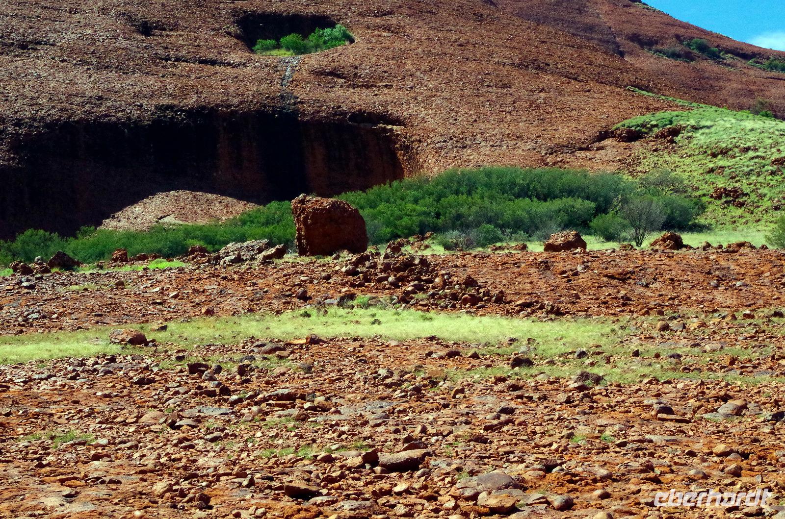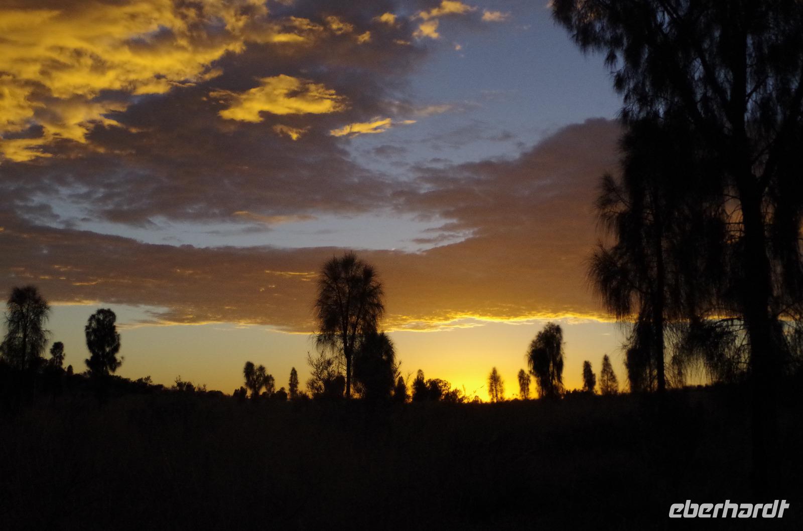 Wie bereits angekündigt heißt es heute abermals früh aufstehen. Um 05.00 Uhr werden wir geweckt und können an der Rezeption unsere Frühstücksbox abholen. Wer möchte, hätte sie sich auch am Vorabend bereits an der Rezeption geben lassen. Eine halbe Stunde später treffen wir uns mit unserer Reiseleiterin Annette und fahren zum rund 20 Fahrminuten entfernten Flughafen. An diesem Morgen checken wir parallel mit einer großen amerikanischen Gruppe ein, der Gruppenschalter ist ein klein wenig überfordert. Da bei den Check-In-Schaltern für individuelle Gäste keine Menschen stehen, checken wir ein und erhalten unsere Bordkarten. Dann verabschieden wir uns freundlich von Annette und wünschen ihr alles Gute. Wir laufen gemeinsam zur Sicherheitskontrolle, wo wir abermals auf die große Gruppe treffen. Cairns ist wirklich ein sehr kleiner Flughafen, mit der Sicherheitskontrolle meinen sie es heute ebenfalls besonders Ernst. Das Handgepäck einiger Gäste wird mehrmals durchleuchtet, so dass wir es gerade noch rechtzeitig zum Boarding am Gate 21 schaffen. Um 06.30 Uhr starte pünktlich das Boarding und rund 20 Minuten später fliegen wir mit Qantas Airways QF 1851 von Cairns nach Ayers Rock. An Bord haben wir die Wahl zwischen MC & Cheeseburger Frittata mit gebratenen Schinken oder Müsli mit Milch, Jogurt und einem Muffin. Gegen 08.55 Uhr landen wir am Ayers Rock und werden freundlich von unserem Reiseleiter Marcel und Busfahrer John empfangen. Unsere Uhren sind um 0,5 Stunden zurückzustellen. Die Koffer werden verladen und wir fahren in den rund 1.325 Quadratkilometer großen, zum UNESCO-Weltnatur- und Kulturerbe gehörenden Uluru-Kata-Tjuta-Nationalpark. Das Parkmanagement besteht aus zwölf Personen, davon sind acht Aborigines je vier Frauen und vier Männer. Sie sind alles Älteste. Auf dem von Marcel erhaltenen Informationsblatt werden die Aborigines und die Nicht-Aborigines unterschiedlich dargestellt. Während die Ältesten dunkel in U-Form gezeichnet sind, wurden die Nicht-Aborigines hell gemalt. In der Mitte befindet sich ein Kreis, welchen den Uluru als Mittel- und Treffpunkt aufzeigen soll. Dies bedeutet: "We are working together!", wir arbeiten zusammen. Kommen wir kurz zur Geschichte des Nationalparks :-) Bereits seit mehr als 10.000 Jahren lebt ein Stamm der Aborigines, die Anangu, im Gebiet des Uluru. Auf einer Expedition mit Peter Warburton wurde der Berg 1873 vom Europäer William Gosse entdeckt. Ayers Rock wurde nach dem seinerzeitigen südaustralischen Premierminister Henry Ayers benannt. Die Anangu erhielten am 26. Oktober 1985 die Eigentumsurkunde für das Gebiet am Uluru, wie die Aborigines den Berg nennen. Im Gegenzug unterzeichneten die Anangu den Vertrag, das Gebiet für 99 Jahre zurück an den Australian Parks and Wildlife Service zu verpachten. Jeder Gast benötigt eine Eintrittskarte für den Nationalpark, welche von Marcel besorgt wird. Die Eintrittskarten nimmt Marcel in Verwahrung, da wir sie am nächsten Tag nochmals brauchen und damit sie nicht verloren gehen. Unterwegs nimmt die Reisbegleitung noch die Bestellungen für das heutige Abendessen auf. Die Gäste können sich jeweils ein Hauptgericht und eine Vorspeise aussuchen. Beim Hauptgericht besteht die Wahl zwischen Porterhouse Steak, Barramundi Fisch, Hühnerbrust und Tofu; bei der Vorspeise zwischen Känguru Lende oder Emu Wurst. Dazu gibt es als Beilagen unter anderem regionales Gemüse, Kartoffeln, Gartensalat, Kartoffelsalat, gebratene Maiskolben, Krautsalat. Während der Fahrt erhalten wir von Marcel erste Informationen zum Nationalpark. Der Uluru/Ayers Rock ist ein sich rund 350 Meter über sein Umland erhobener Inselberg in der zentralaustralischen Wüste, der Gipfel liegt rund 863 Meter hoch. Weiter erzählt uns Marcel, dass dieser Berg rund drei Kilometer lang und bis zu zwei Kilometer breit ist. Der Ayers Rock besitzt einen Umfang von circa neun Kilometern. Der Berg besteht aus weichem Sandstein, welcher eigentlich grau ist. Seine rote Farbe hat er nur erhalten, da er rostet, also er oxidiert durch das viele Eisen im Gestein. Es besteht immer noch die Möglichkeit, den Berg zu besteigen. Die Aborigines bitten aber darum, dies nicht zu tun, aus Respekt den Ahnen und der Kultur gegenüber, der Uluru ist für sie ein heiliger Berg. Auf der anderen Seite spielt auch die Sicherheit eine große Rolle. Oftmals überschätzen sich die Wanderer, es kommt zu Kreislaufproblemen oder Stürzen. Gegen 09.30 Uhr besuchen wir Kata Tjuta (The Olgas). Übersetzt wird Kata Tjuta mit "viele Köpfe", wobei "Kata" für "Kopf" und "Tjuta" für "viele" steht. Die Strecke Walpa Gorge ist rund einen Kilometer lang, unterwegs sind ein paar Holzsitzbänke vorhanden. Der Weg ist steinig und uneben. Am Ende der Strecke befindet sich eine Felsspalte. Heute ist es sehr warm, keine Wolken sind zu entdecken und eine leichte Brise ist zu spüren. Bei den Olgas gibt es zwei Wanderwege: Der einfachere Wegführt führt etwa einen Kilometer tief in die Schlucht Walpa Gorge, welche nach hinten immer enger wird. Links und rechts ragen Felswände empor. Besonders beeindruckend sind aber die vielen blühenden Blumen, welche hier überleben können. Der zweite anspruchsvollere Wanderweg ist ein Rundweg durch das "Valley of Winds". Wir nehmen die leichtere Wanderung, welche uns durch die Natur und Felsen sehr gut gefällt. Anschließend fahren wir weiter zum "Kata Tjuta Dune Viewing". Gern würden wir unterwegs für einen Foto-Stopp anhalten, dies ist aber nur manchmal an ausgewiesenen Stellen möglich. Wir legen dann einen Stopp von über 20 Minuten am Aussichtpunkt "Kata Tjuta Dune Viewing" ein. Dann fahren wir zum 3-Sterne-Hotel "Outback Pioneer Resort" in Yulara. Als wir hier ankommen, freuen wir uns auch sehr, dass wir unsere Zimmer schon beziehen können. Wir ziehen uns kurz um und treffen uns wenig später an der Bar, wo wir von Eberhardt TRAVEL auf ein Getränk unserer Wahl eingeladen werden. Na dann: "Prost!" Wir gönnen uns