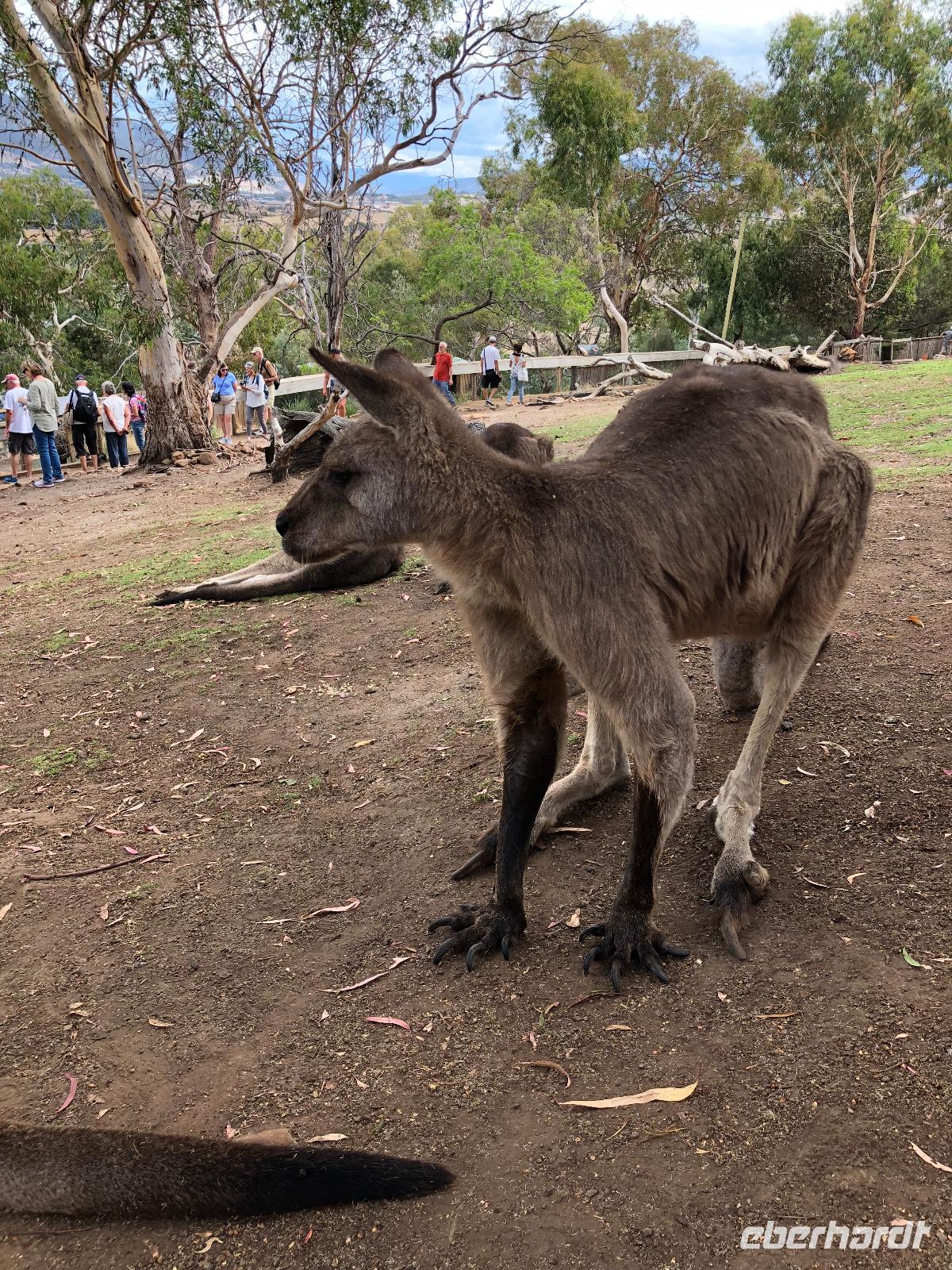 Am Vortag haben die Gäste bereits wieder eine schriftliche Information von der Reisebegleitung zum heutigem Eberhardt-Exklusiv-Ausflug in Hobart in Tasmanien. Wir freuen uns, diese bezaubernde Insel im Süden Australiens bei einer spannenden Eberhardt-Inselerkundungstour kennenzulernen. Es werden 14 bis 29 Grad erwartet, aber es ist auch mit Regen zu rechnen. Na, warten wir es mal ab ;-) Um 08.00 Uhr erreichen wir die tasmanische Hauptstadt Hobart. Nach einem leckeren Frühstück im Buffet-Restaurant "Horizont Court" trifft sich die Reisegruppe um 08.15 Uhr im Atrium Deck 6 beim Gästeservice und unser Ganztagesausflug kann starten. Wir verlassen das Schiff und treffen uns im Hafenterminal mit unserer örtlichen Reiseleiterin Regina Zimmerli. Das kostenfreie WLAN im Hafenterminal werden wir nutzen, sobald wir von unserem Ausflug zurück sind. Auf Wunsch der Gäste besuchen wir zuerst den Salamanca Market, welcher nur jeden Samstag zwischen 08.30 und 15.00 Uhr stattfindet. Zum Glück ist ja heute Samstag ;o) Auf dem Markt sehen wir auch das typische Musikinstrument der Australier, das Didgeridoo. In der Sprache der Tjapukai heißt es ausgesprochen "Jigi Jigi". Das Didgeridoo wird im Wald nach geeigneten Hölzern von Eukalyptus-Bäumen gesucht, welche bereits von innen durch die Termiten ausgehöhlt sind. Mit einem langen Stock oder Speer wird das Innere unter anderem von Blättern und Holzmehl gereinigt. Wenn eine Reinigung aufgrund der Krümmung aber nicht möglich ist, dann wird es ausgebrannt. Am Mundstück bringen sie Bienenwachs als Polster für die Lippen an. Es gibt vier Schritte zum "richtigen" Didgeridoo-Spielen. Erster Schritt ist das richtige Vibrieren der Lippen, zweitens entsteht der Rhythmus mit der richtigen Zungenbewegung. Drittens ist das korrekte Wispern. Der vierte Schritt ist am schwierigsten, da die eigene Kreislaufatmung zu beherrschen ist. Die Luft muss ohne Absetzen durch die Nase eingezogen und durch den Mund wieder ausgestoßen werden. Ebenfalls typisch für Australien ist der Bumerang (in Tjapukai-Sprache "Whongo" ausgesprochen). Zu den verschiedenen Formen zählen Haken-Bumerang, Keulen-Bumerang oder der aerodynamische Kreuz-Bumerang und Y-Bumerang. Der "Haken-Bumerang", auch "Nummer 7 Bumerang" genannt, wird zur Jagd größerer Vögel wie dem Emu verwendet. Dieser und den "Keulen-Bumerang" werden ausschließlich zur Jagd von nicht fliegenden Tieren verwendet. Der Kreuz-Bumerang ist an der Kante geschärft. Der Y-Bumerang kommt besonders bei der Jagd nach Buschhühnern, kleineren Truthähnen oder Waldhühnern zum Einsatz, wobei wie bei den anderen Bumerangs auf die Beine gezielt wird. Zudem gibt es noch den bekannten "Rückkehrenden Bumerang", welcher häufig aus Wurzelholz hergestellt wird, wobei es aus der natürlichen Krümmung der Wurzel heraus gearbeitet wird. Die Oberseite ist leicht gerundet, die untere Seite ist flach. Anschließend an den Besuch unternehmen wir eine kleine Stadtrundfahrt. Die Hauptstadt Tasmaniens wurde 1803 als Sträflingskolonie gegründet. Die heute 185.000 Einwohner zählende Stadt schmiegt sich mit all ihren Vororten entlang der Flussufer. Bei einer Rundfahrt durch das Stadtzentrum sehen wir die historischen Gebäude auf der Macquarie Street und Elisabeth Street sowie entlang der Uferpromenade mit Hunter Street und Franklin Wharf. Den Salamanca Place kennen wir nun schon, hier wurden Lagerhäuser zu Galerien und Restaurants umfunktioniert. Weiter fahren wir zum Mount Field National Park, welcher vor allen Dingen wegen seiner reichhaltigen und unterschiedlichen Vegetation ein Besuch wert ist. Nur eine Autostunde von Hobart entfernt befinden sich die drei Stufen der Russell Falls, üppige Farnwälder und einige der höchsten Bäume der Welt. Im Mount Field National Parks spazieren wir zuerst den Rundgang "Tall Trees Walk" entlang und bewundern die höchsten Bäume der Welt. Dann fahren wir zum Informationszentrum zurück und spazieren zu den tollen Russel Falls. Ein Spaziergang zu den Lady Barron Fällen vorbei an Lake Dobson, palmenartigen Pandani und Sumpf-Eukalyptushainen auf dem Lady Barron Falls Circuit ist ebenfalls empfehlenswert. Wieder zurück setzen wir uns an Holzbänke und Holztische, wo wir unseren Mittagssnack einnehmen. Nächster Programmpunkt ist der auf die Australische Tierwelt spezialisierte Bonorong Wildlife Sanctuary, welches wir gegen am Nachmittag besuchen. Wir sehen den Tasmanischen Teufel und niedliche Wombats. Hier können wir uns mit einem schlafendem Koala fotografieren lassen oder putzige Kängurus füttern und streicheln. Danach geht es auch schon wieder zum Schiff zurück. Unterwegs legen wir noch einen Stopp am Supermarkt und am Bottle Shop ein, schließlich müssen wir die nächste Flasche Wein mit an Bord nehmen :-) Wir feiern heute auch den Geburtstag eines Reisegasts, gesungen haben wir schon am Morgen, jetzt gibt es noch eine Runde TimTams vom Geburtstagskind ausgegeben. Regen ist am heutigen Tag angekündigt worden, jetzt regnet es aber in Strömen! Zum Glück hat das schlechte Wetter erst auf der Rückfahrt zum Schiff eingesetzt, also wieder einmal Glück gehabt, wir sind dann wohl doch eine Glücksgruppe :-) Angekommen im Hafenterminal verabschieden wir uns freundlich von unserer Reiseleiterin Regina. Bevor wir auf das Schiff zurückkehren, nutzen einige Gäste noch das kostenfreie gut funktionierende WLAN im Hafenterminal. Um 16.30 Uhr findet die Hobart Local Show mit "Tasmania Police Pipe Band & Scottish Dancers" im Princess Theater Deck 6 & 7 vorn statt. Rund eine Stunde später heißt es wieder: "Alle an Bord!". Zur gewohnten Uhrzeit um 17.30 Uhr essen wir zu Abend im Restaurant "Savoy Dining Room". Die Abfahrt von Hobart zum Fjordland Nationalpark in Neuseeland erfolgt um 18.00 Uhr. Wer möchte, schaut sich heute die Spotlight Showtime "Cameo Rascale" im Princess Theater mit internationaler Akrobatik, Komödie und Jonglieren um 19.00 Uhr oder 21.00 Uhr an. Der Gitarrist und Sänger David