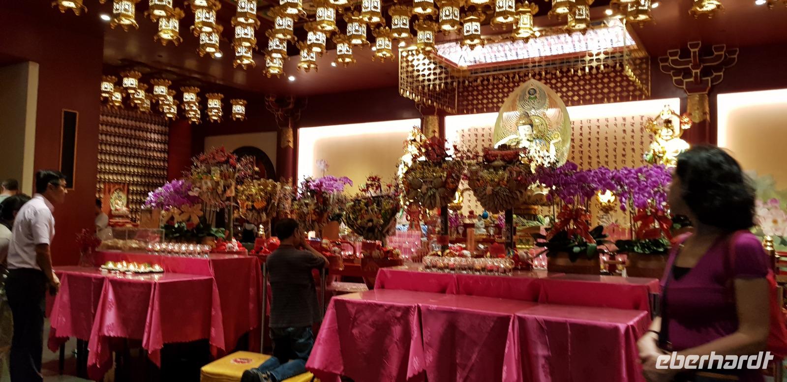 Nach Rückkehr am Hotel treffen wir uns am frühen Nachmittag wieder mit Martine, um einen Überblick über die Stadt bei einer Rundfahrt zu bekommen. Unser erster Halt ist am Orchideengarten, wo wir viele verschiedene Varianten der schönen Pflanzen in allen denkbaren Farben bewundern können. Die Rundfahrt führt uns weiter vorbei an den wichtigsten Sehenswürdigkeiten der Stadt - wir können noch einen Blick auf den Merlion und den Singapur Fluss bei Tag werfen, bevor wir Chinatown erreichen. In der ganzen Stadt ist noch die verbliebene Dekoration des kürzlich gestarteten chinesischen Neujahrsfestes zu sehen. In Chinatown selbst geht es recht ruhig zu. Nach der Besichtigung eines Tempels haben wir hier noch etwas Zeit zur freien Verfügung bis wir wieder zum Flughafen fahren und unseren Weg nach „Down Under" antreten.