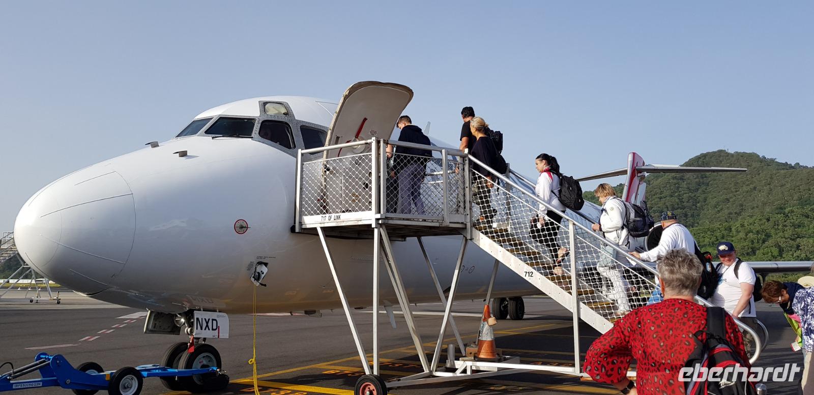 Heute hat das Warten endlich ein Ende, unsere große Reise nach Singapur, Australien und Neuseeland beginnt. Die ersten Gäste treffen sich mit der Reisebegleiterin am Flughafen Dresden. Gegen 14.15 Uhr startet unsere Maschine nach Frankfurt, wo wir dank der pünktlichen Landung ausreichend Zeit haben, entlang der endlos scheinenden Gänge im Flughafengebäude unser Abfluggate nach Singapur aufzusuchen. Gegen 20 Uhr treffen wir hier auf die anderen Gäste unserer Gruppe und fliegen gemeinsam nach Singapur.