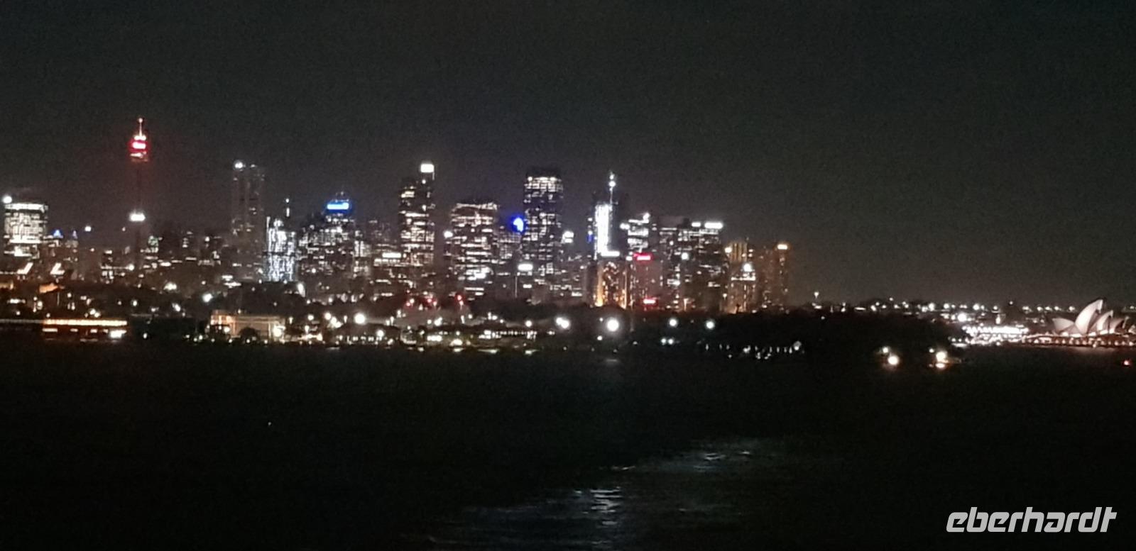 Mit dem Ablegen um 18 Uhr verlassen wir Australien und freuen uns auf die bevorstehende Überfahrt nach Neuseeland und die uns dort erwartenden Häfen, Menschen und Landschaften.
