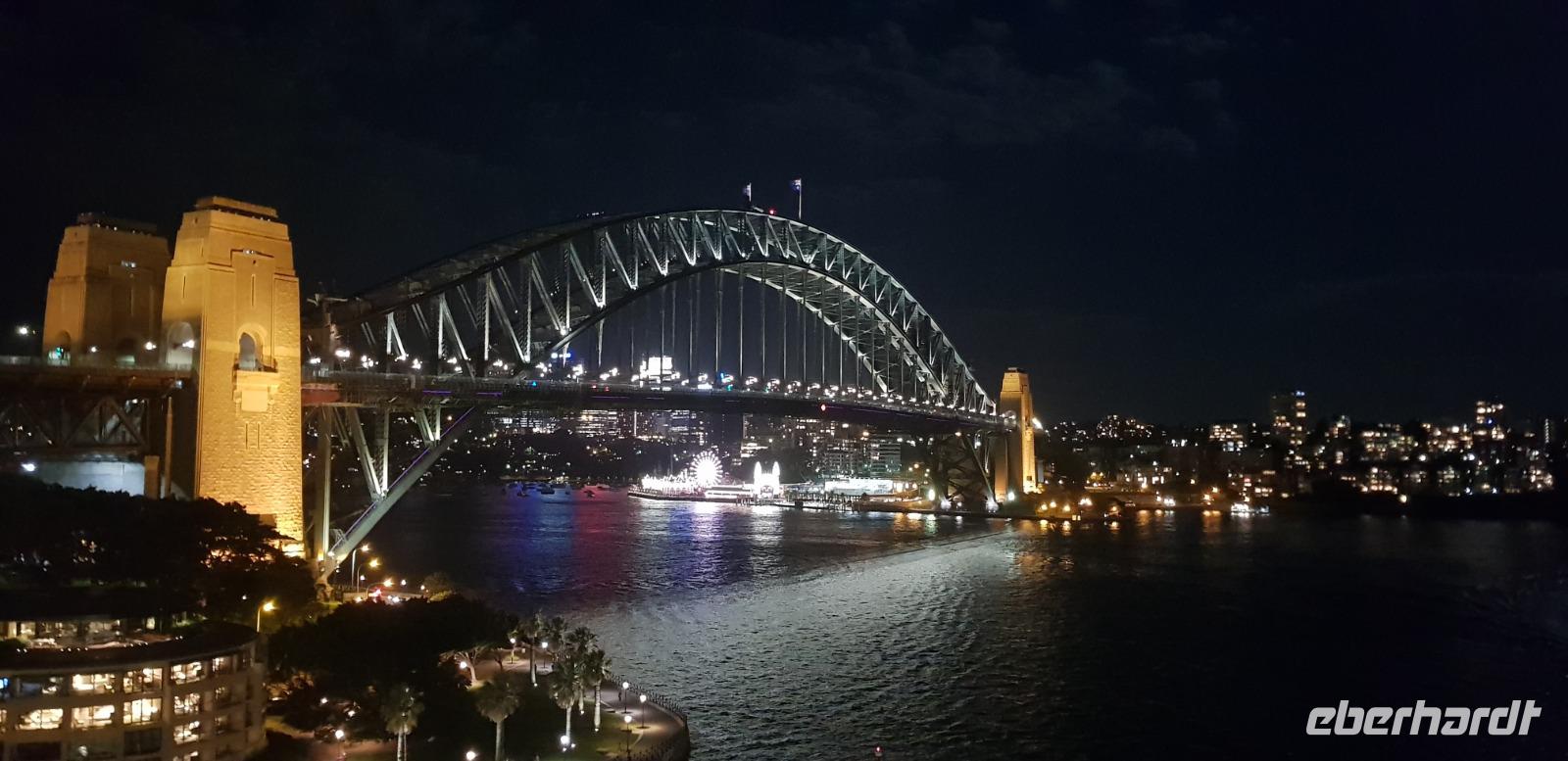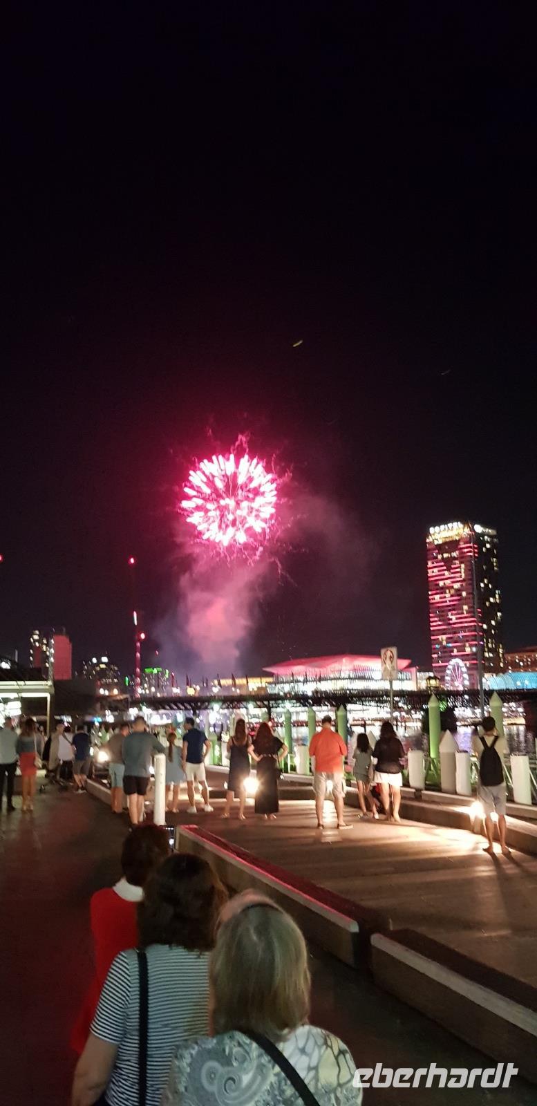 Dort angekommen, begrüßt uns unsere Reiseleiterin Uli, die für alle Gäste einen Stadtplan liebevoll und detailliert mit den wichtigsten Sehenswürdigkeiten vorbereitet hat. Wir fahren direkt zum Hotel und lassen den Abend bei leckerem Essen und einem Feuerwerk am Darling Harbour ausklingen.