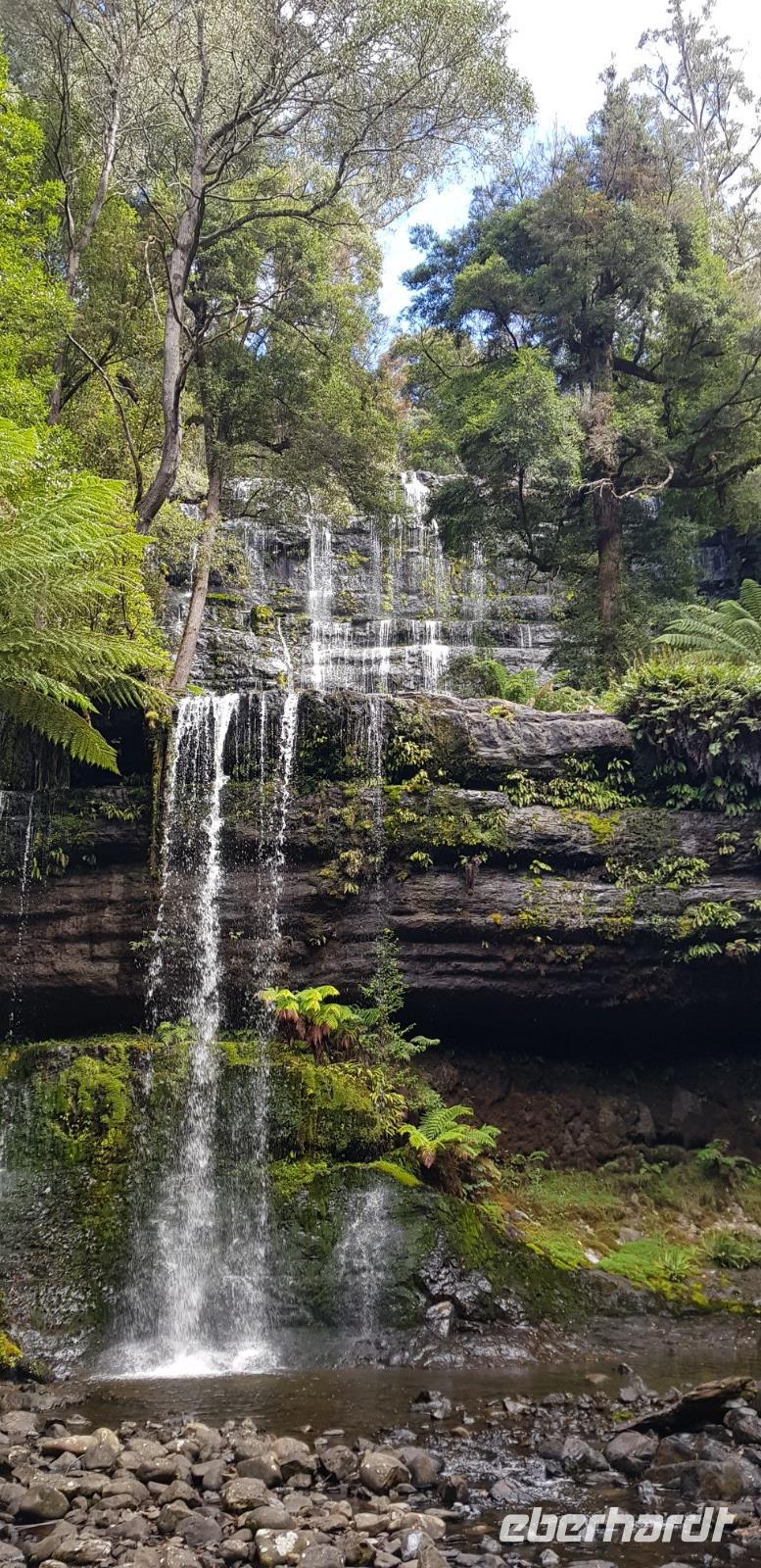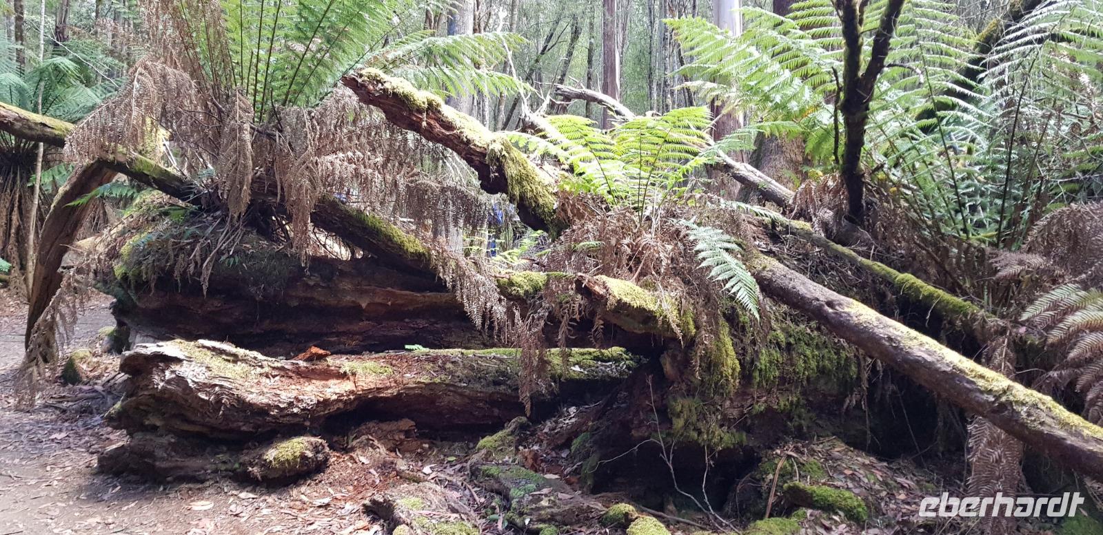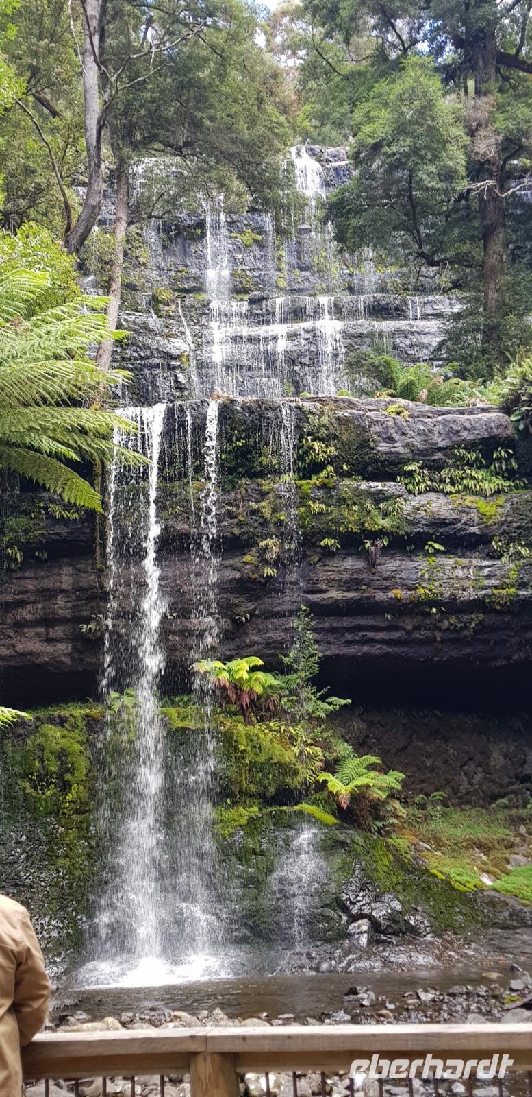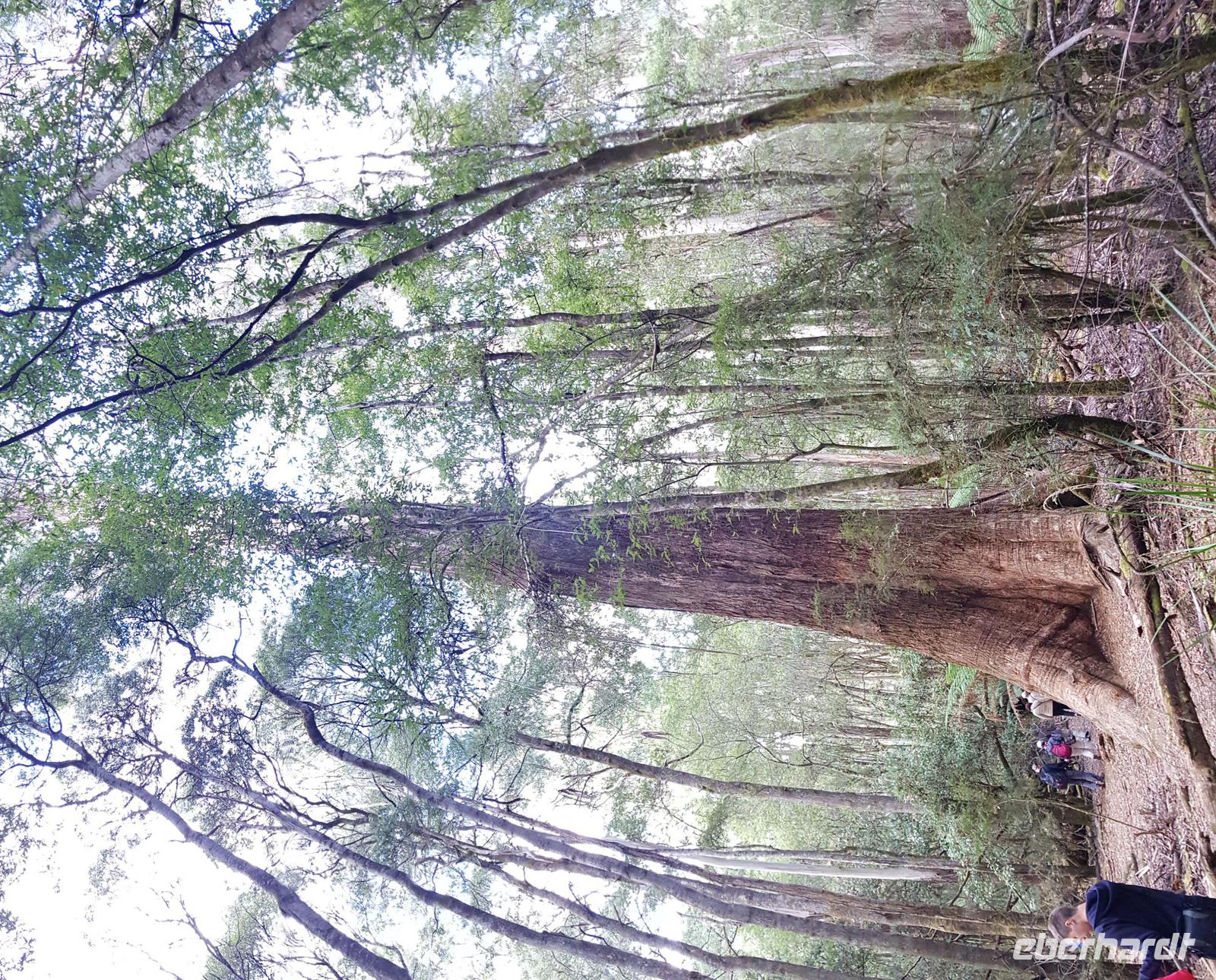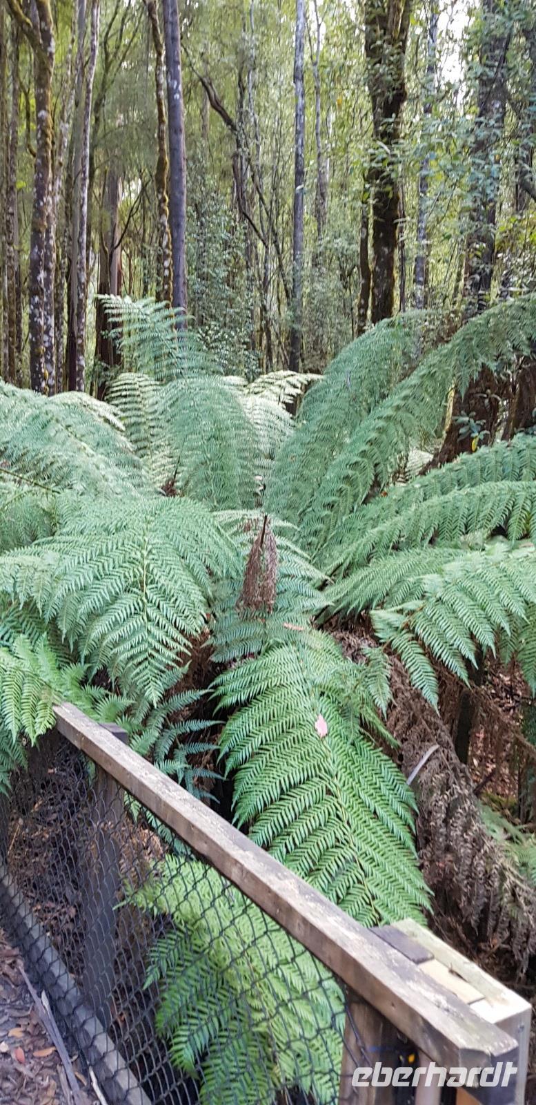 Unser Tag startet heute etwas früher. Um 08.30 Uhr treffen wir uns, um endlich die einzigartige Natur und Tierwelt Australiens anzuschauen. Heute geht sicherlich der ein oder andere Kindheitstraum in Erfüllung, denn wir bekommen die Kängurus, Emus, Koalas und sogar den tasmanischen Teufel zu Gesicht. Wir starten von Hobart, der Hauptstadt Tasmaniens aus und fahren zunächst ein wenig durch die Stadt, vorbei am Salamanca Markt, der Kathedrale, dem Hafen und verschiedenen Parks und bekommen einen kleinen Eindruck, wie die ca. 200 000 Einwohner hier leben. Danach geht es entlang des Derwent Rivers zum Mt Field Nationalpark, wo wir zwei kleine Spaziergänge im Regenwald unternehmen. Auf dem „Tall Trees Walk" gibt es riesige Baumfarne und Eukalyptusbäume zu sehen. Einige der Bäume sind mehrere Hundert Jahre alt, bis zu 90 Meter hoch und haben einen Umfang von bis zu 20 Metern.