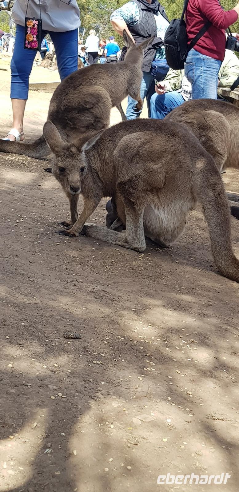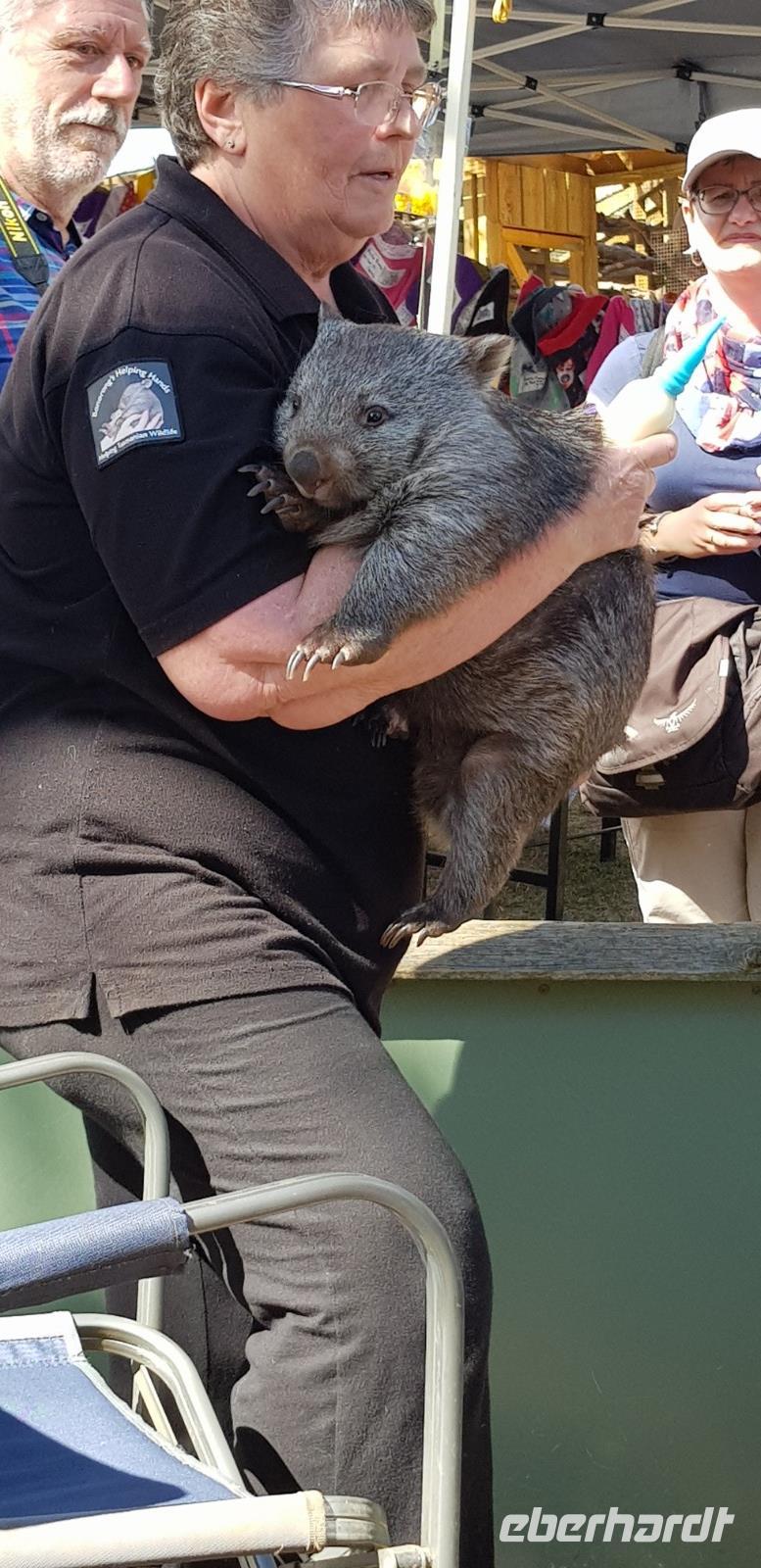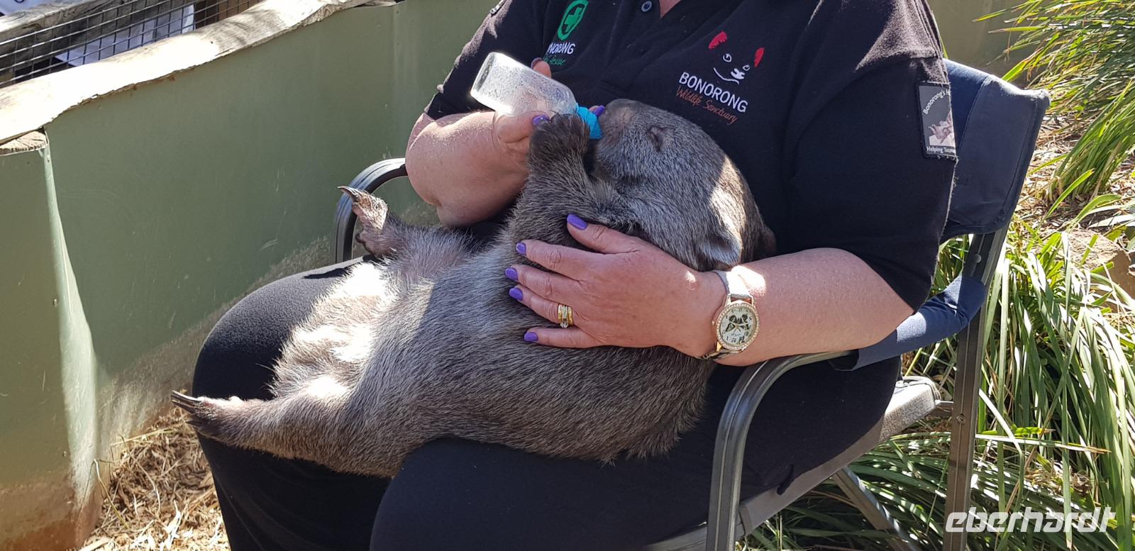 Bei unserem zweiten Spaziergang gehen wir zu den Barron Falls, einem tollen kleinen Wasserfall in mehreren Stufen. Danach können wir uns bei einem lecker belegten Foccachia-Sandwich stärken, bevor wir in den Bonorong Wildlife Sanctuary weiter fahren. Hier werden verletzte und verwaiste Tiere aufgenommen und behandelt, um sie im Idealfall wieder in die freie Wildbahn entlassen zu können. Wir haben ausreichend Zeit, die sich hier frei bewegenden Kängurus zu füttern, uns mit einem Koala fotografieren oder dem Wombat-Baby beim Trinken seiner Spezialmilch zuzuschauen.