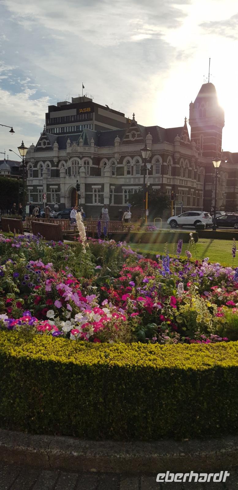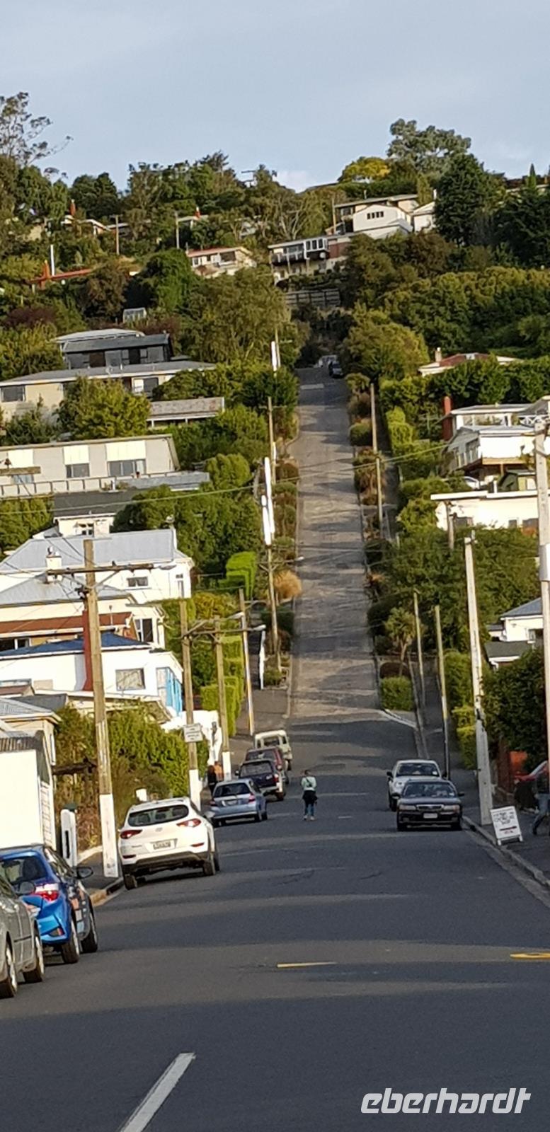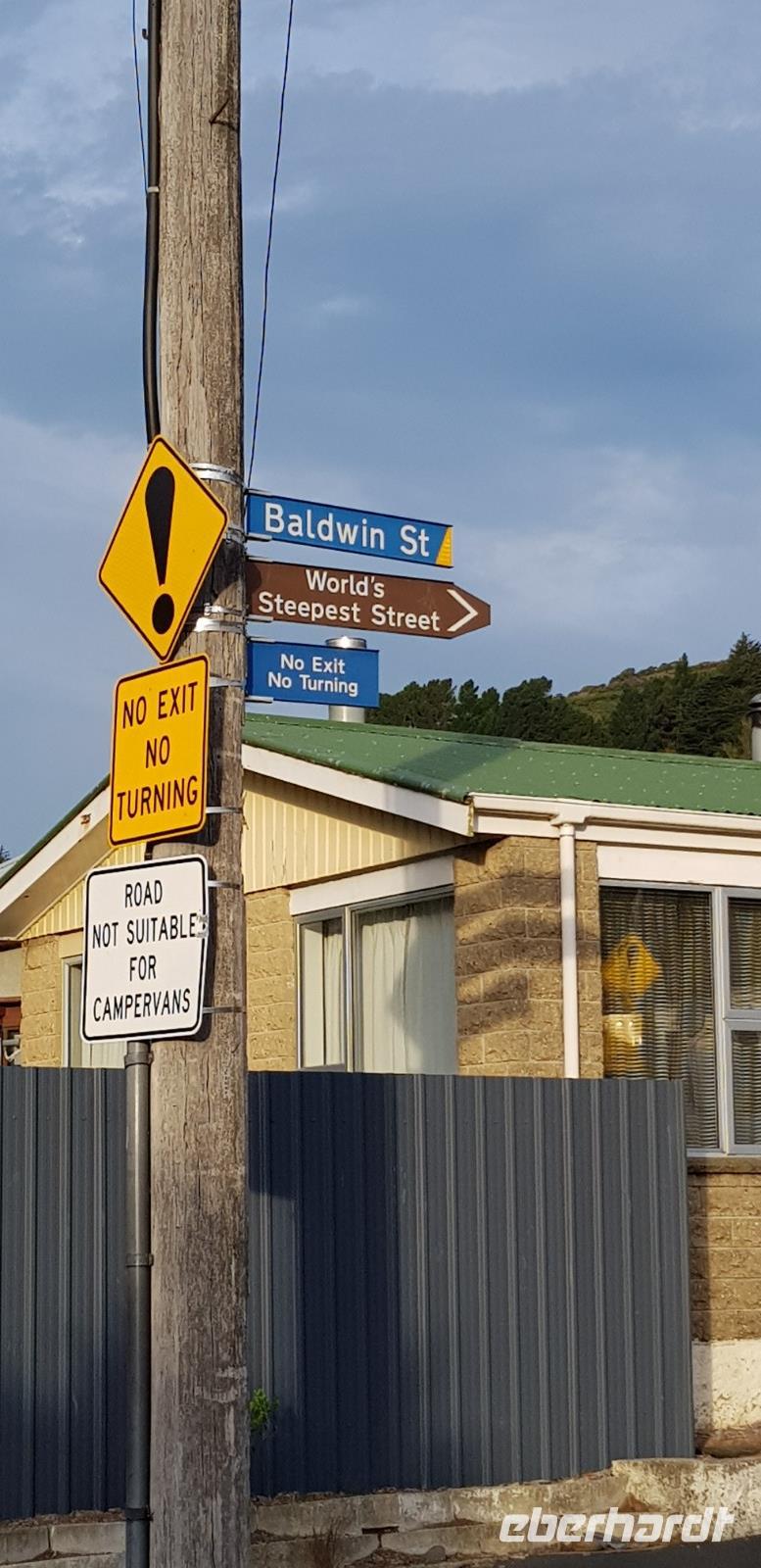 Nach diesen höchst interessanten Einblicken in die Natur und Tierwelt der Otago Halbinsel fahren wir noch in die Stadt Dunedin und haben sogar noch ein paar Minuten Zeit, uns den hübschen Bahnhof von innen anzuschauen. Neben dem „schönsten Bahnhof der Welt" hat Dunedin noch ein weiteres Superlativ zu bieten. Nämlich laut Guiness-Buch der Rekorde die steilste Straße der Welt, die Baldwin Street hat eine Steigung von 19,3° oder 35 % und übertrifft damit sogar die Filbert- und 22nd Street in San Francisco.