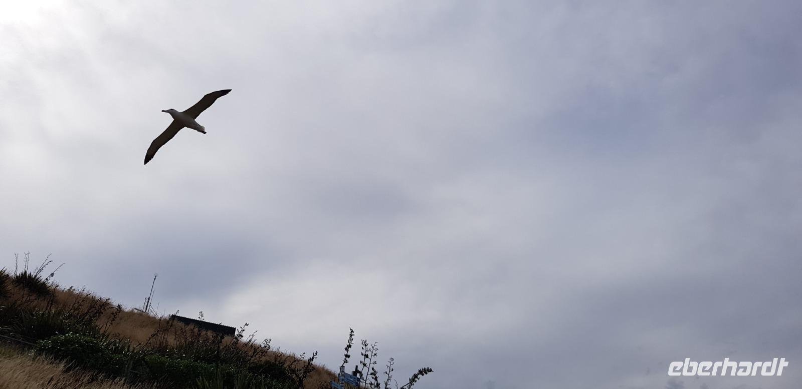 Vorher steht für uns ein nicht weniger interessanter Besuch der Königsalbatrosse an der Spitze der Otago Halbinsel bevor. In Taiaora Head befindet sich die weltweit einzige Brutkolonie dieser beeindruckenden Vögel auf dem Festland. Bei einer Führung erfahren wir vieles über diese Tierart und beim Spaziergang auf den Hügel erblicken wir den Königsalbatross, der über uns sogar seine Kreise zieht und dessen Flügelspannweite bis zu drei Meter erreichen kann.