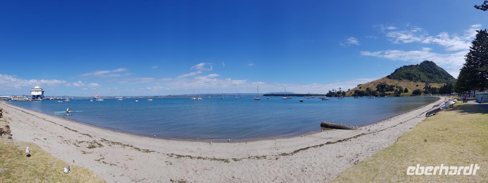 Andere verbringen den Tag wieder individuell im Hafen von Tauranga und unternehmen eine Stadtrundfahrt in einem Hop-on, hop-off Bus. Es gibt vieles zu entdecken, zum Beispiel ein interessantes Luftfahrtmuseum, in dem Flugzeuge aus den Weltkriegen ausgestellt sind und die man teilweise sogar von innen anschauen kann. Zudem kann man in einem historischen Dorf Halt machen, in dem man nette kleine Boutiquen und Souvenirläden findet oder am Strand einen ausgedehnten Spaziergang zu den heißen Pools oder um den Mount Maunganui machen kann.