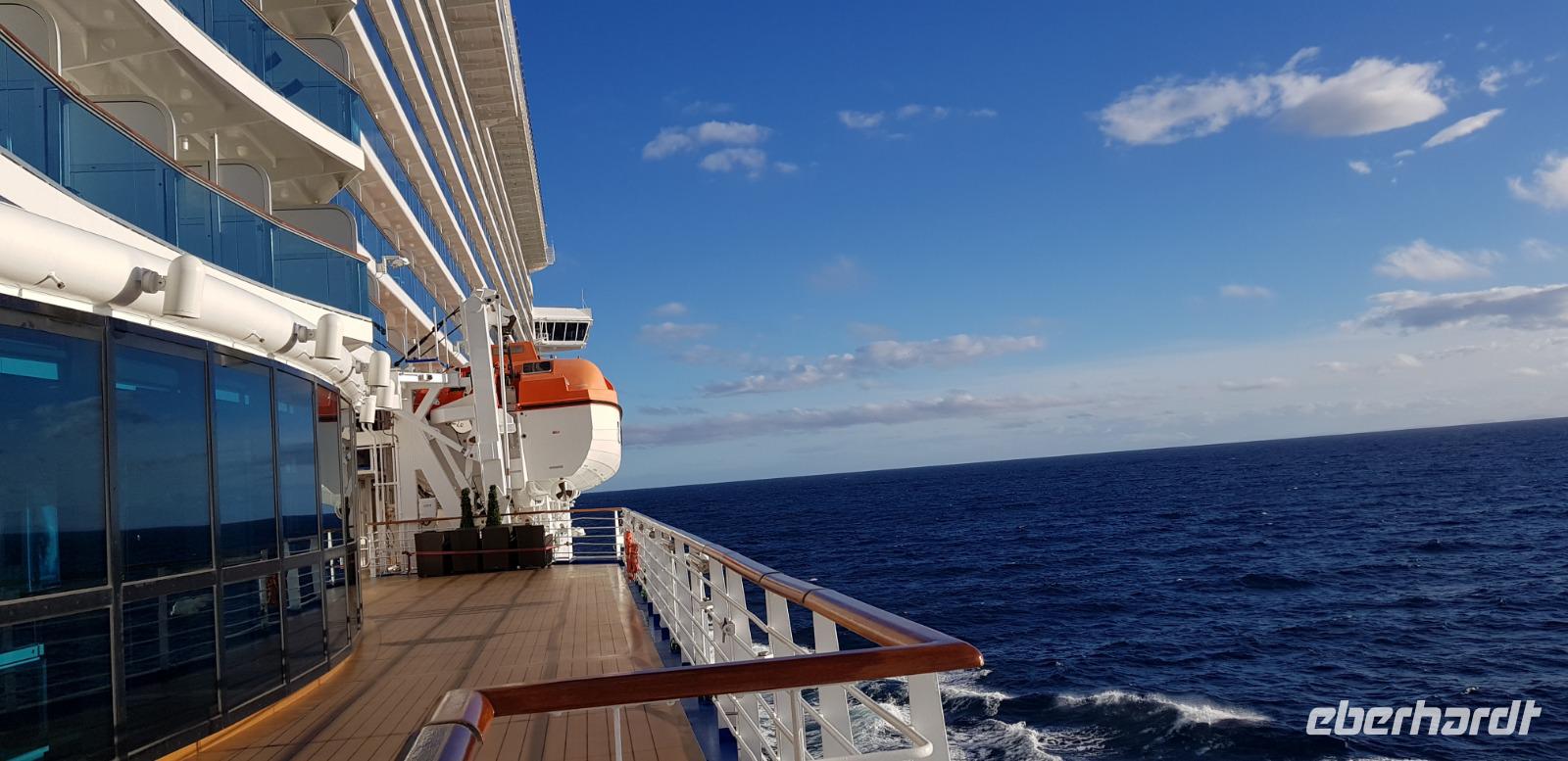 Am heutigen, bereits letzten Seetag auf unserer Reise müssen wir schon die ersten Vorbereitungen für die Ausschiffung in Auckland vorbereiten. Dennoch bleibt noch genügend Zeit, sich den Annehmlichkeiten unseres Kreuzfahrtschiffes hinzugeben. Ob beim Saunagang, im Fitnessstudio oder einer tollen Show im Theater - für jeden Geschmack ist etwas dabei, um sich die Zeit ein wenig zu vertreiben.