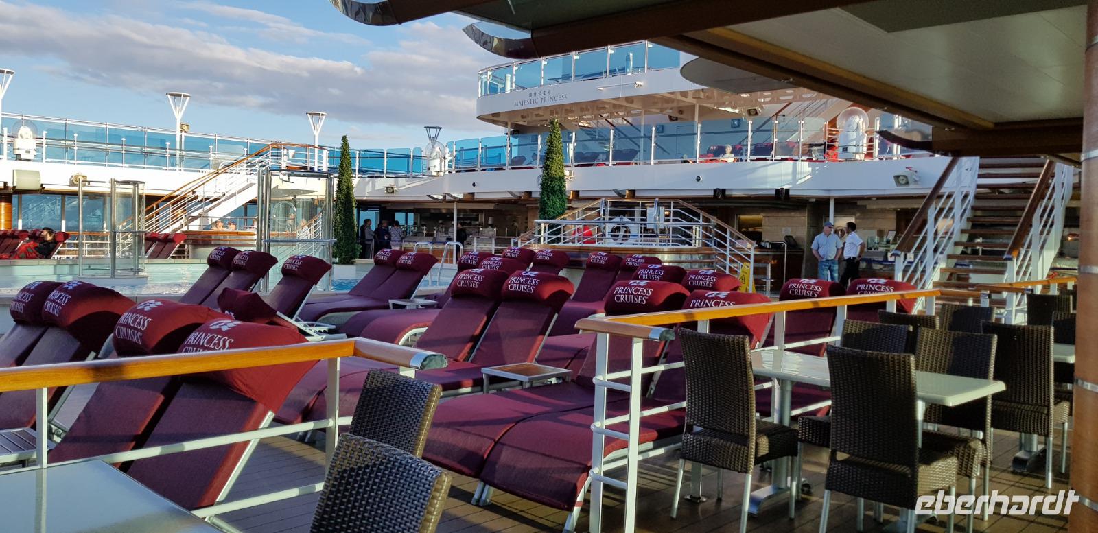 Ein weiterer Tag ganz im Zeichen der Entspannung und Erholung liegt vor uns. Sicher gibt es noch vieles zu erkunden auf unserem schwimmenden Hotel. Nicht nur die tollen Restaurants und Bars warten darauf, entdeckt zu werden. Auch das Fitnessstudio, der Spa Bereich, die zahlreichen Shops an Bord, die Piazza und das Princess Theater bieten viele Beschäftigungs- und Unterhaltungsmöglichkeiten.