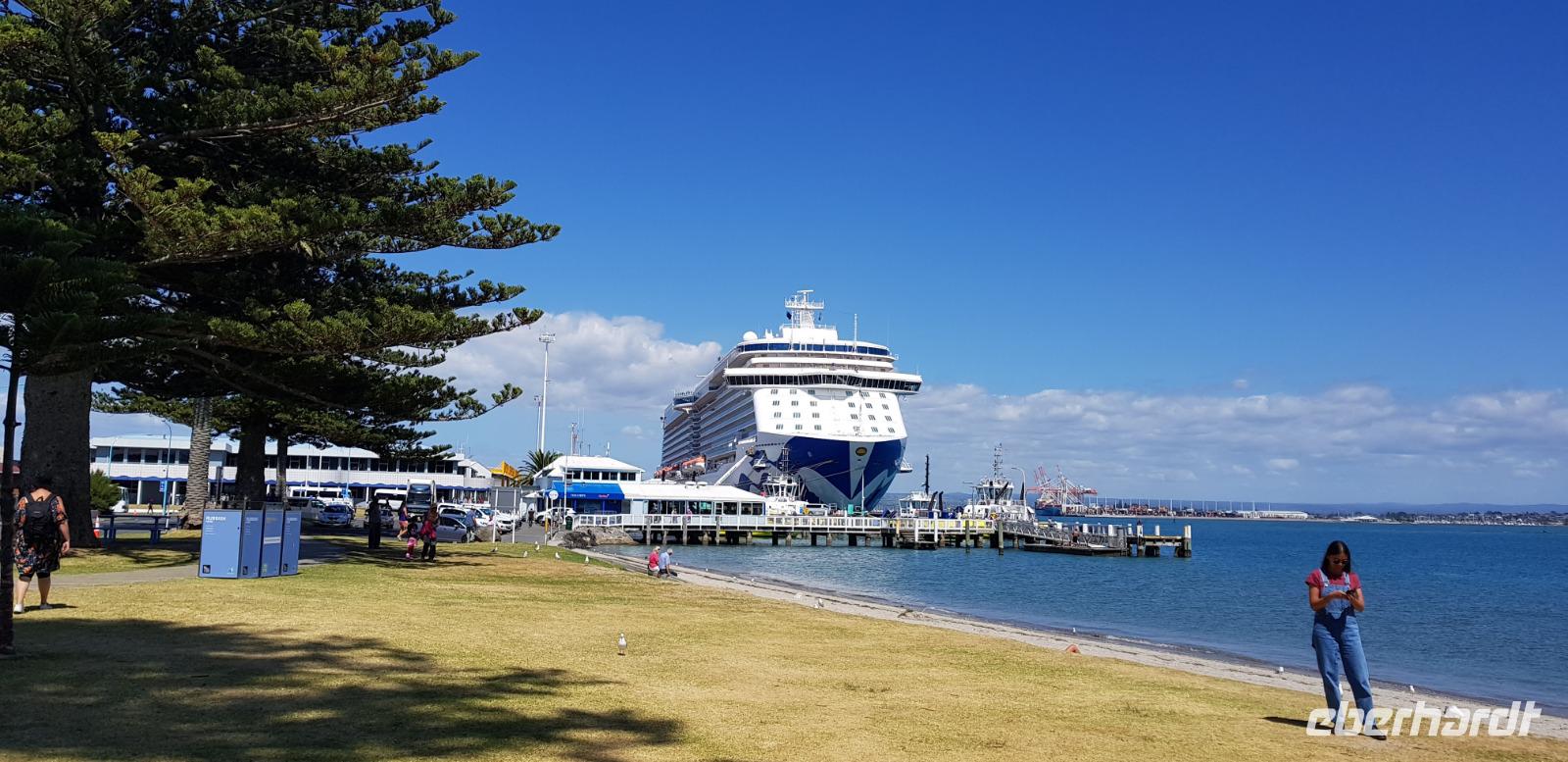 Wir starten mit unserer Rundfahrt durch die Metropole vom Hafen aus entlang der Esplanade in Richtung St. Kilda, einem mit seinem tollen Strand und den zahlreichen Cafés, Restaurants und Bars bei Rucksacktouristen und Familien ebenso angesagten Stadtteil. Rex, unser Busfahrer, fährt anschließend sogar ein Stück entlang der Formel 1 Rennstrecke im Albert Park, wo demnächst das Autorennen stattfinden wird und die Vorbereitungen dafür bereits in vollem Gange sind. Weiter geht es vorbei am Fawkner Park und dem Kriegerdenkmal bis zum botanischen Garten, wo wir uns bei einem kleinen Rundgang die Füße etwas vertreten und die einheimische Pflanzenwelt anschauen können. Danach fahren wir ins Stadtzentrum, vorbei an der Oper, dem Hauptbahnhof, St. Pauls Kathedrale und durch den Stadtteil „Docklands", wo wir am alten Hafen Melbourne´s einen kurzen Fotostopp einlegen. Vorbei am Melbourne Museum, dem Royal Exhibition Museum und am Parlamentsgebäude fahren wir anschließend ins Yarra Valley zu Fergusons Weingut. Nach einem leckeren Mittagessen können wir die hier angebauten und hergestellten Weine verkosten. Am späten Nachmittag erreichen wir den Hafen kurz vor Auslaufen des Schiffes und können den Abend ganz entspannt an Bord genießen.