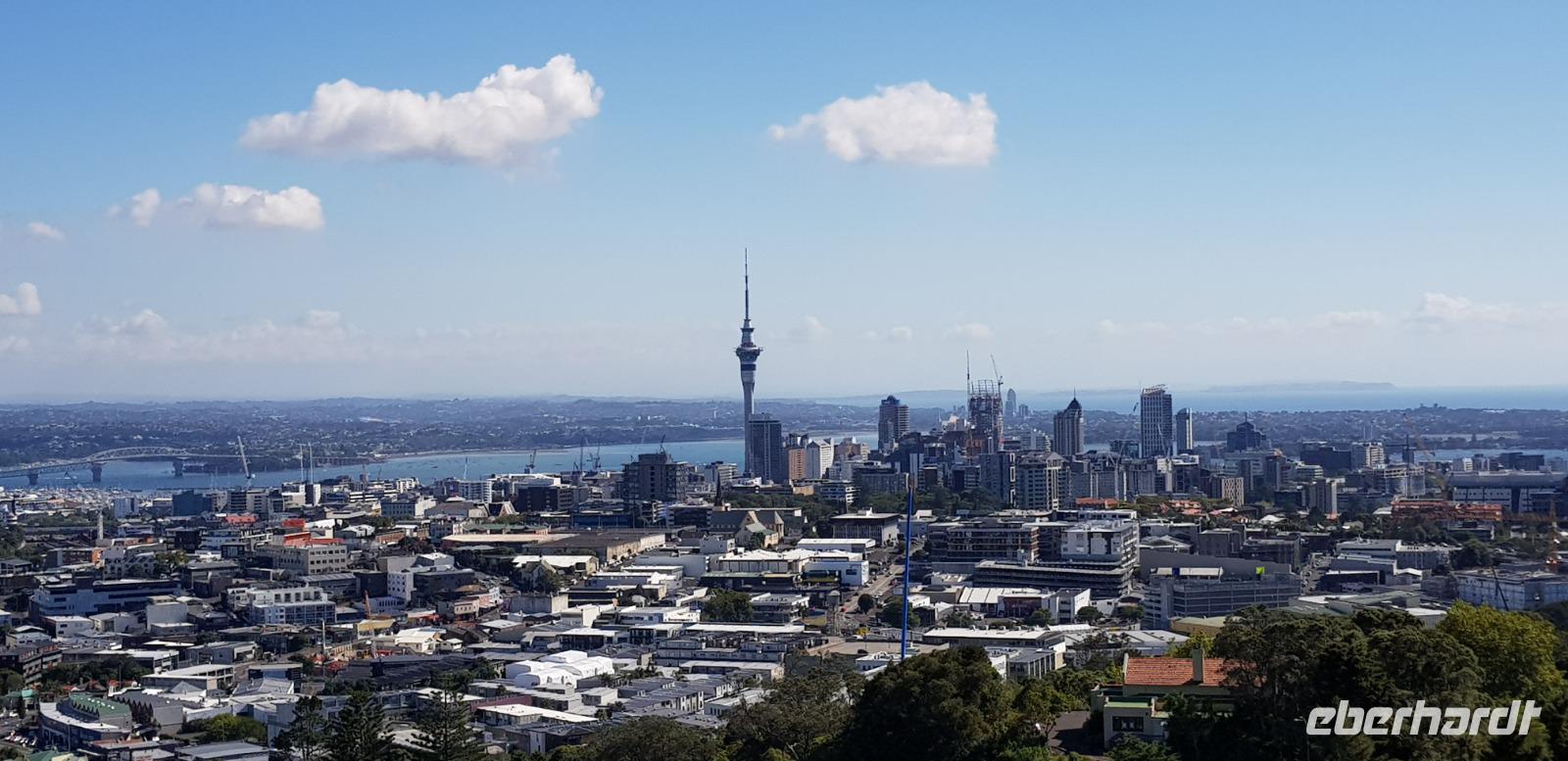 Frühmorgens verlassen wir bereits unser Schiff und treffen, nachdem alle unsere Koffer im Terminal aufgefunden wurden, auf Doris, unsere Reiseleiterin für den heutigen Tag. Wir beginnen unsere Stadtrundfahrt mit tollen Blicken auf die Skyline von Auckland, passieren die Hafenbrücke und machen unseren ersten Stopp am Hafen mit einer tollen Aussicht auf diese und die Stadt selbst. Ein wenig beneiden wir die Einheimischen, die am heutigen Samstag Zeit für einen Segelausflug auf ihren Booten bei tollem Sonnenschein genießen können. Aber auch wir können an unserem nächsten Halt, dem Berkleys Point noch ein bisschen Sonne tanken, bevor wir uns am Wintergarten und später auf dem Mount Eden die Beine vor dem bevorstehenden langen Flug vertreten können. Auf dem Mount Eden spazieren wir entlang des Kraterrandes des erloschenen Vulkans und genießen dabei die Ausblicke, die sich von hier aus auf die Stadt bieten. Schweren Herzens treten wir danach die Fahrt zum Flughafen an, denn wir könnten in dieser schönen Stadt sicher noch ein - zwei Tage verweilen.
