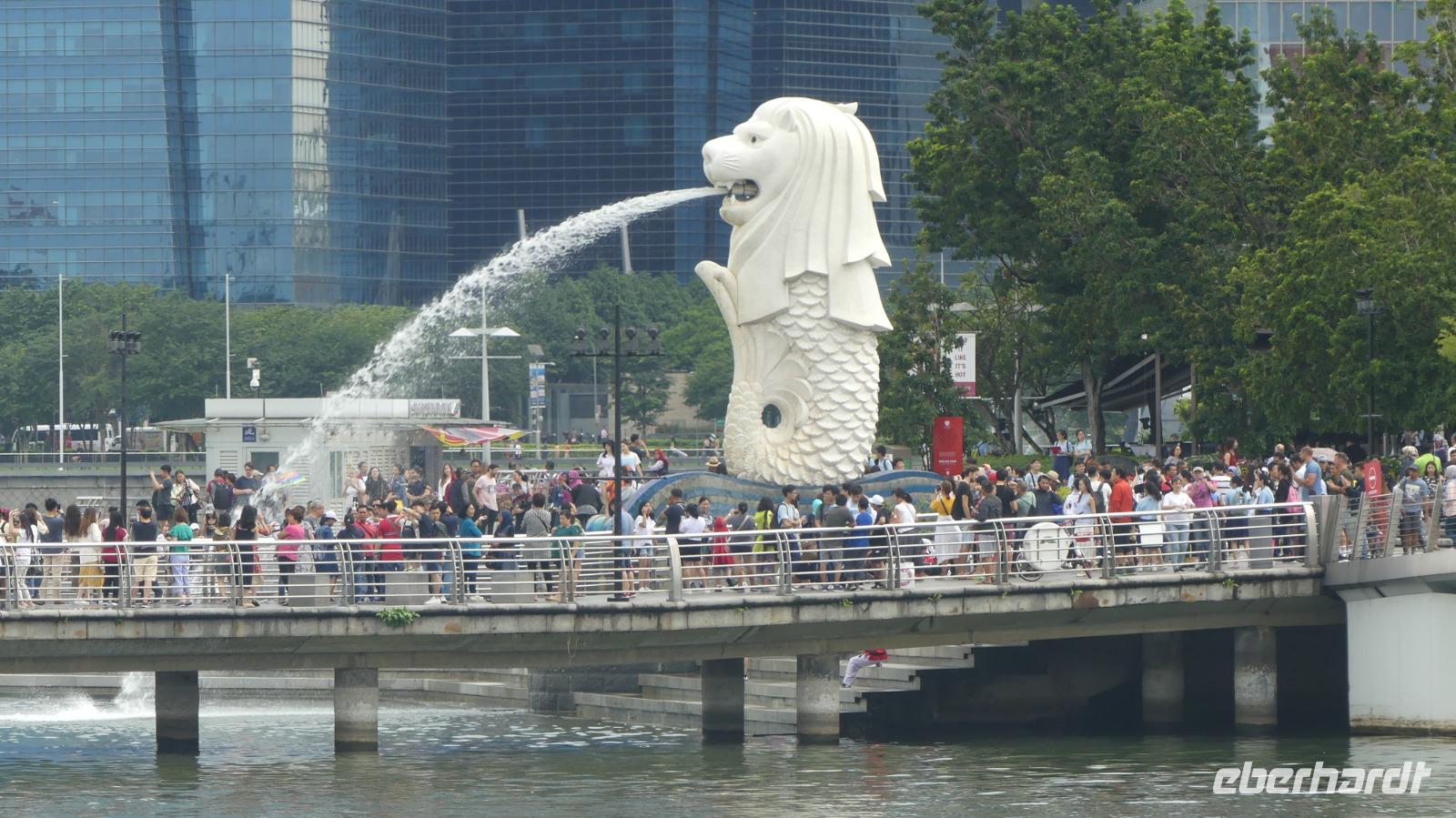 Am Nachmittag unternehmen wir mit David eine Stadtrundfahrt. Dabei sehen wir im Zentrum wichtige Gebäude wie das alte Parlament, das alte Postamt (heute das Fullerton Hotel), das Raffles Hotel („Heimat" des Singapur Sling), Kunstgalerie, Gerichtsgebäude, die Kunstfigur Merlion, nochmal das Casino....