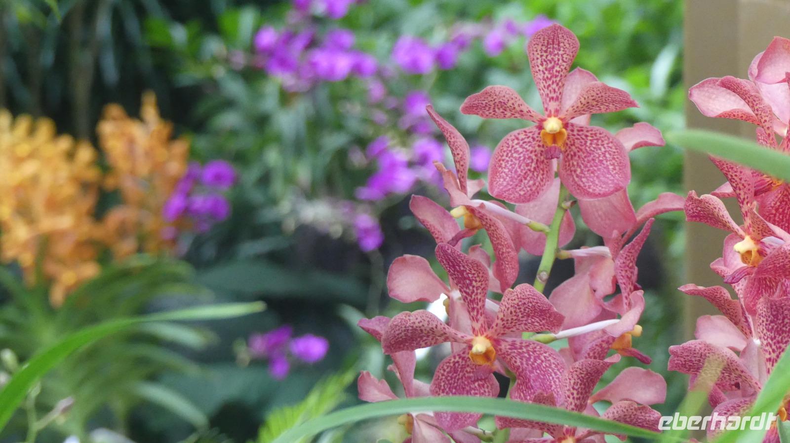 In Little India bereitet man sich auf den nächsten Feiertag vor, entsprechend gibt es alle möglichen nützlichen und wohl noch mehr unnütze Dinge zu kaufen. Und hier duftet es nach Gewürze, zwischen Ständen mit Früchten, Stoffen, Glitzersachen... Auch im Botanischen Garten geht es bunt zu, die Vielfalt der Farben vieler Orchideen ist beeindruckend. Unter ihnen befinden sich Züchtungen für prominente Besucher wie Lady Diana oder Kanzlerin Merkel.