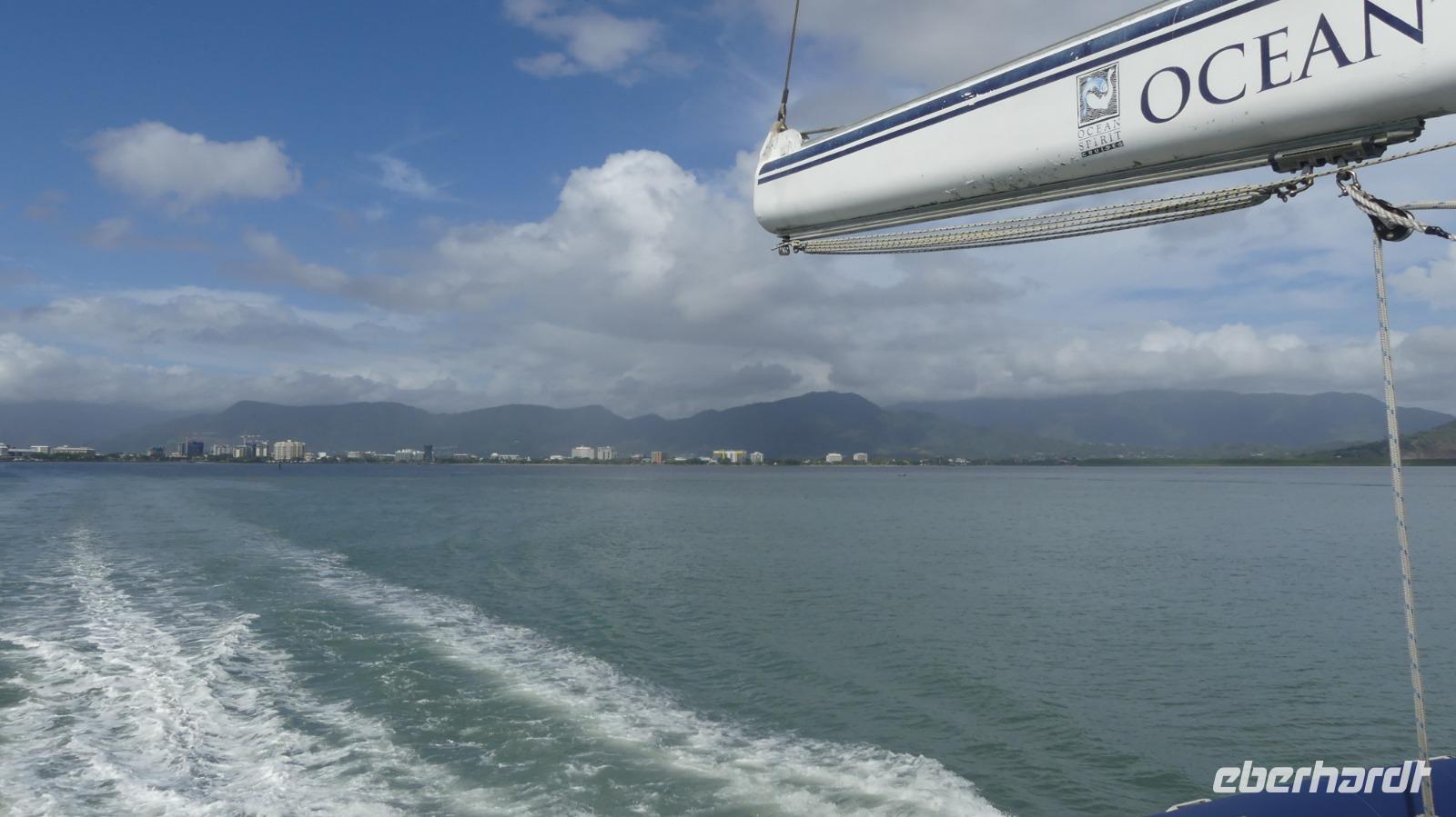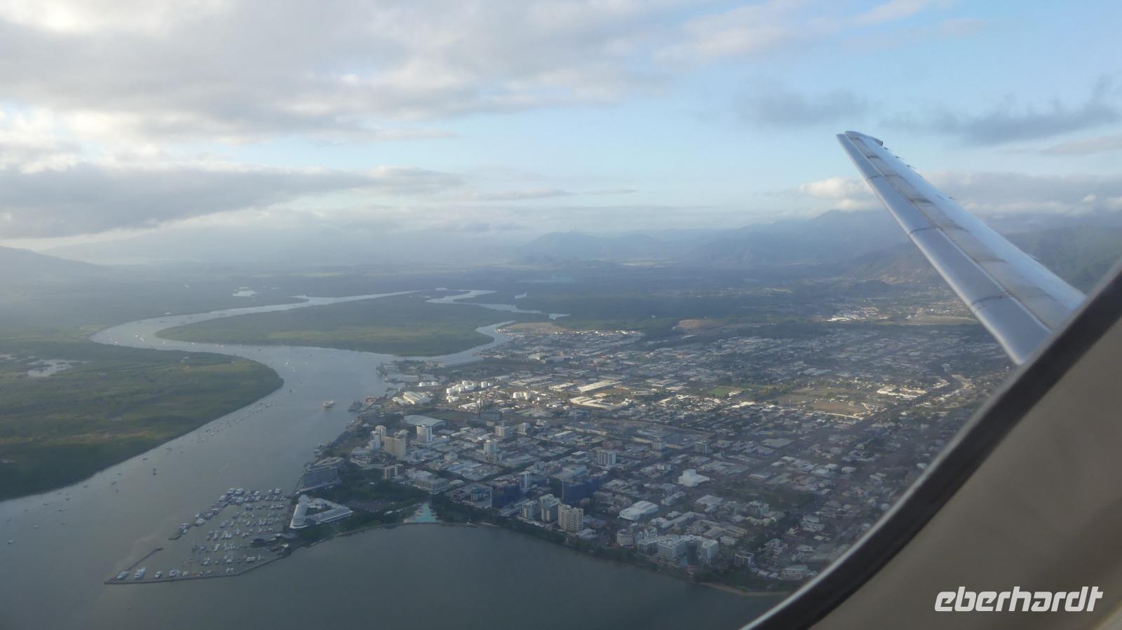 Nochmals ein Nachtflug: kurz nach Mitternacht, gegen 1.00 Uhr starten wir in Singapur Richtung Australien. Ein angenehmer Flug, der Flieger von Silk Air ist neu und nicht ausgebucht. Nach 6 Flugstunden und weiteren 2 Stunden Zeitverschiebung landen wir am Morgen bei 28 Grad im tropischen Nordosten Australiens, in Cairns.