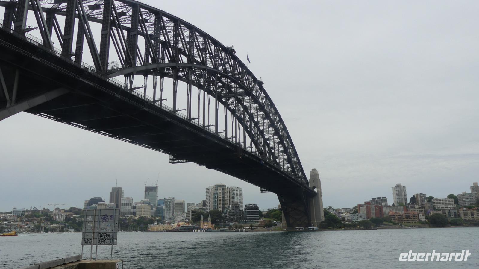 Am Vormittag zeigt uns Uli ihre Stadt. Zuerst halten wir direkt unter der riesigen Harbour Bridge. Schon 1932 erbaut, ist sie immer noch mit über 1.100 Meter Länge die größte Stahlbogenbrücke der Welt. Auch das berühmte Opernhaus können wir von hier zum ersten Mal sehen.