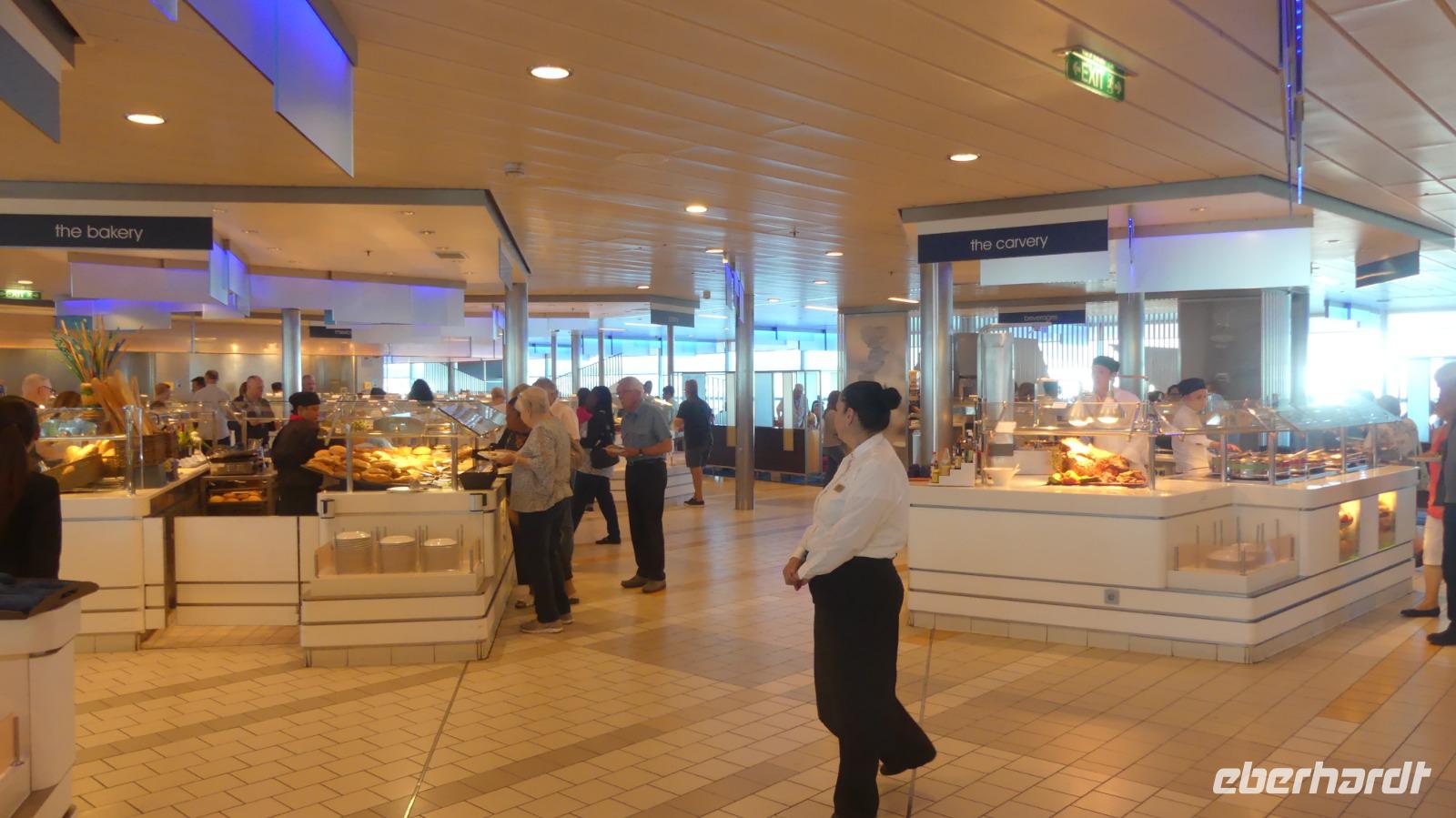 Abends testen wir das Buffet auf Deck 14 und tauschen unsere Erfahrungen vom Tag aus.