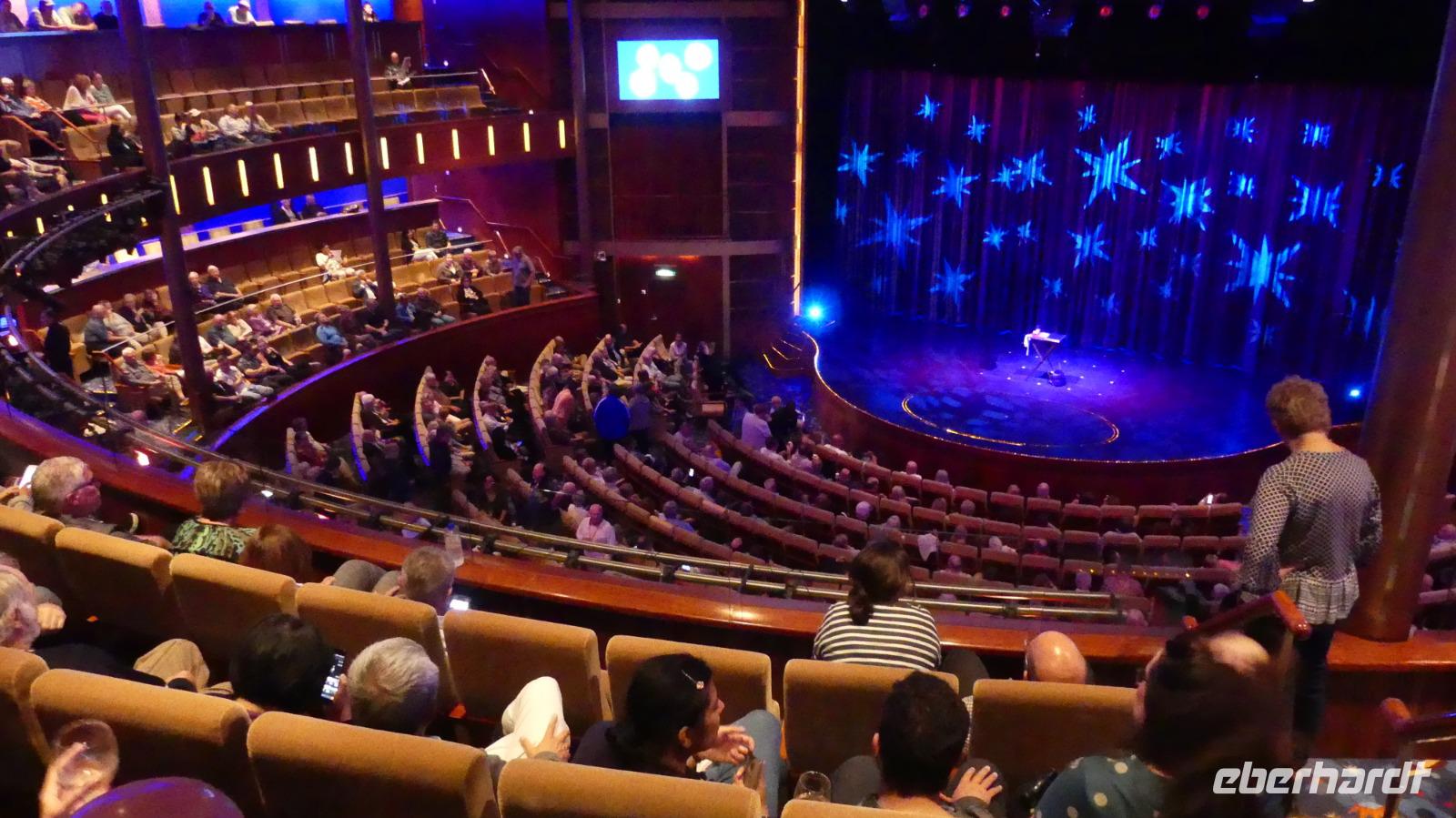 Nachmittags findet die obligatorische Seenotrettungsübung statt. Für dieses lange deutsche Wort nutzt man hier einfach nur die Bezeichnung „drill". Einfach ist die Übung auch an sich, die Schwimmwesten bleiben unterm Bett und die Meisten müssen sich im Theater versammeln, wo aus der Übung eher eine amerikanische Show gemacht wird.