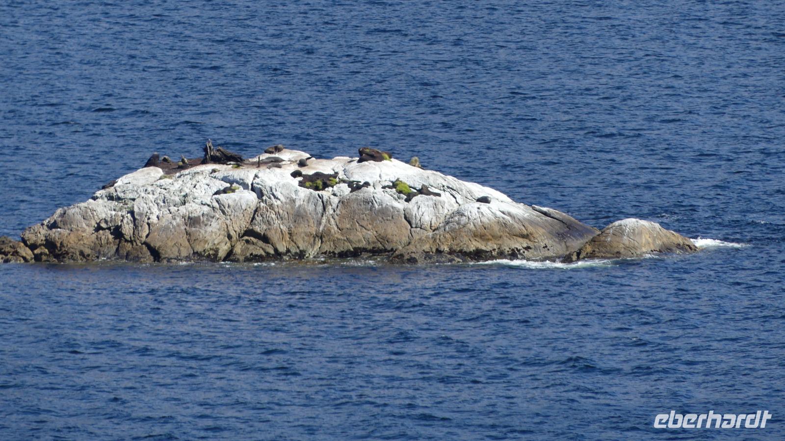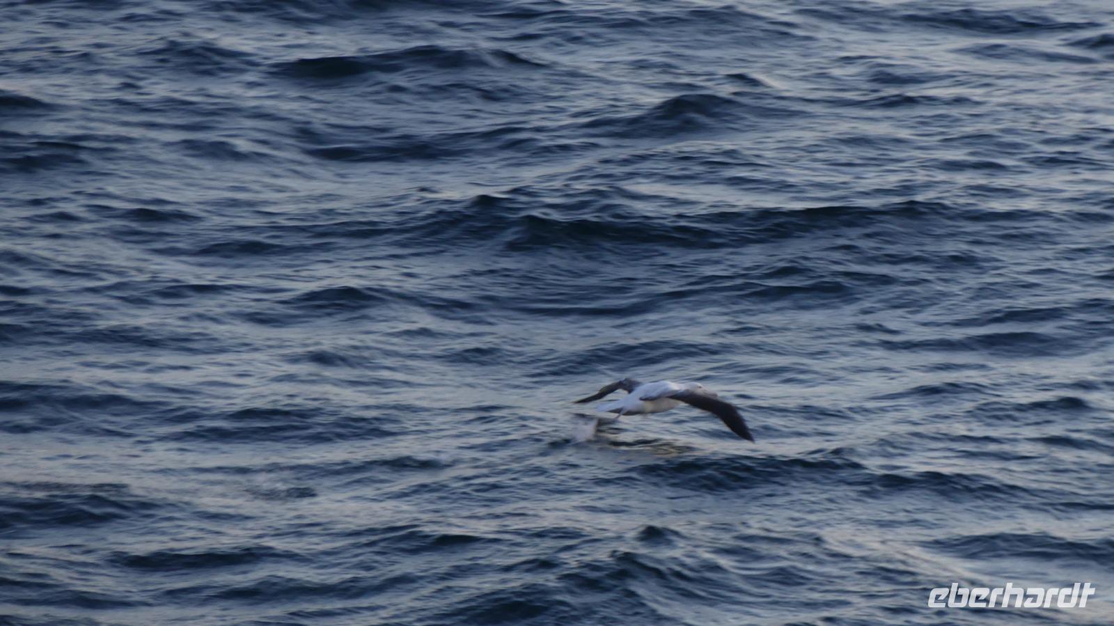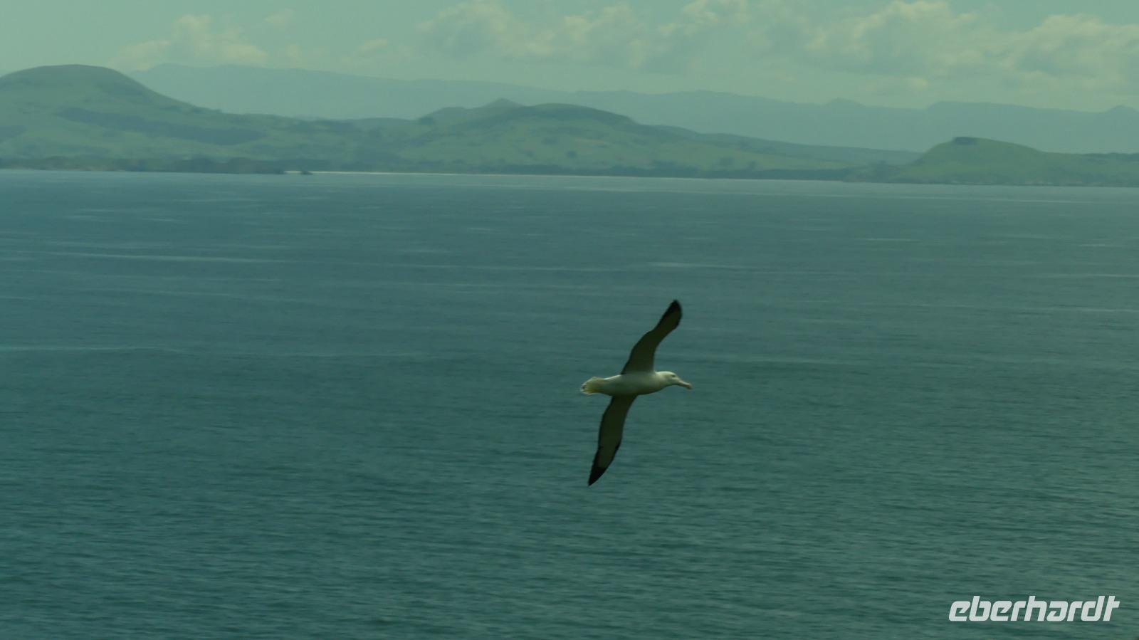 Kurz vor 18.00 Uhr erreichen wir pünktlich unser Schiff. Bei der Ausfahrt passieren wir die Albatross Kolonie. Dabei bestätigt sich was uns Hildegard gesagt hat: am Abend frischt der Wind auf, den die Albatrosse so mögen und so können wir zum Abschied die Albatrosse beim Fliegen beobachten.