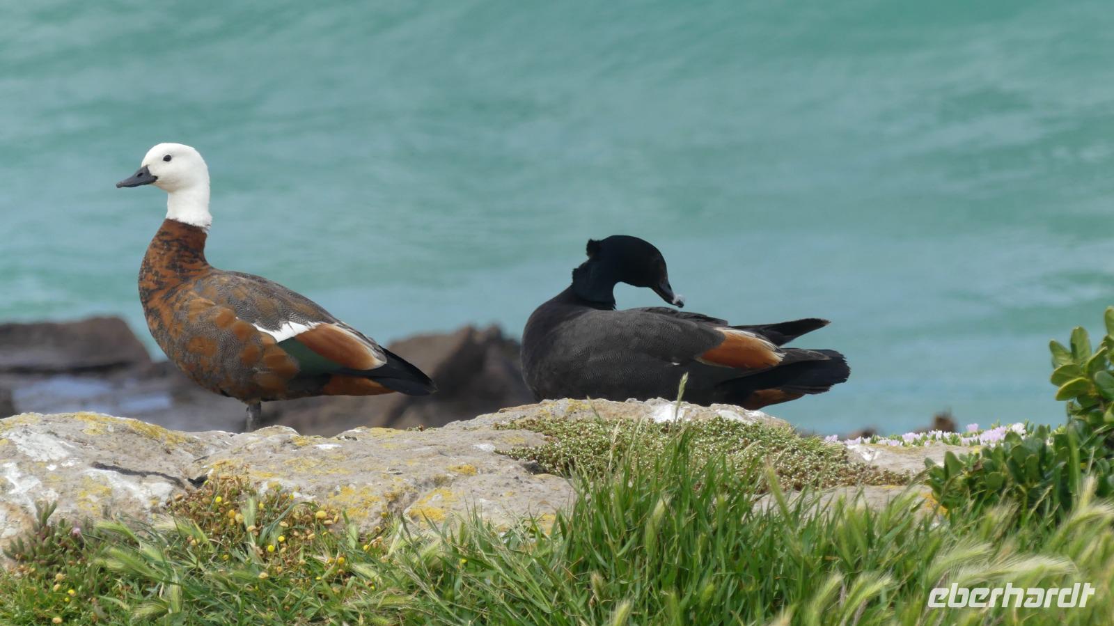 Die ersten Eindrücke von der Otago Halbinsel scheinen das typische Neuseelandbild - grüne Hügel mit Schafen und Kühen zu bestätigen. Dazu ist es Frühling und es blühen viele Pflanzen. Entlang der Küstenstraße des Naturhafens gelangen wir zur äußersten Landspitze, wo sich eine Albatross Brutkolonie befindet. Es ist weltweit die einzige Albatross Brutkolonie, welche auf Land und nicht auf einer Insel liegt. Von den etwa 250 Vögeln können wir einige beobachten. An der Steilküste sehen wir außerdem Kormorane (Hilde meint, niemand hat ihnen gesagt, dass sie nicht zum Fliegen gemacht sind...dafür sind sie sehr gute Taucher), Robben (gut getarnt und ziemlich weit entfernt), Weißkopflachmöwen (die sind gar nicht scheu und brüten zum Teil am Wegesrand) und Löffelreiher.