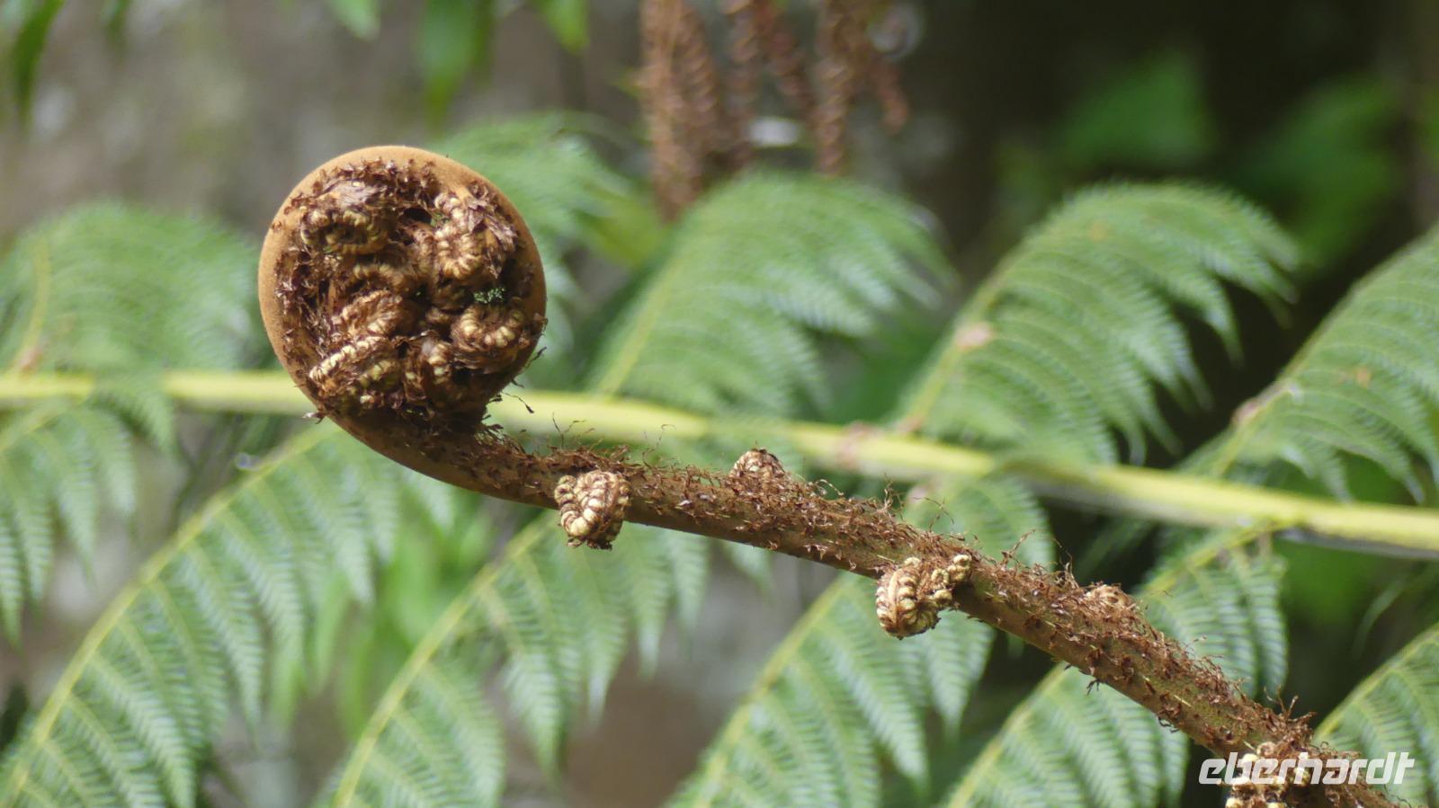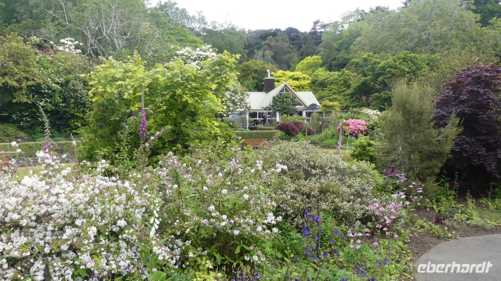 Auf der Rückfahrt zum Schiff halten wir am Glenfalloch Woodland Garten. Neben vielen heimischen sind auch zahlreiche eingeführte Pflanzen Teil des wunderschön angelegten Parkes. Uns fallen besonders baumhohe Rhododendren, Baumfarne und ein etwa 1.000 Jahre alter Matai Baum auf.