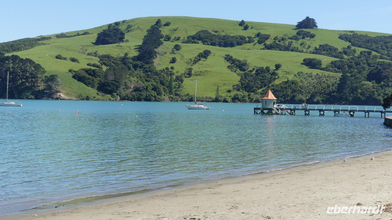 Um 9.00 gehen wir von Bord in Port Chalmers, nahe Dunedin. Die Pier an der wir liegen ist nicht unbedingt für Passagiere gedacht, eher für´s Verladen von Holz. Es ist unser erster Landgang in Neuseeland. Als Kreuzfahrer genießen wir die neu in dieser Saison eingeführte Regelung, dass die Landausflüge ohne weitere Einreiseformalitäten stattfinden. Erst am letzten Tag beim Ausschiffen in Auckland werden wir offiziell in Neuseeland einreisen.
