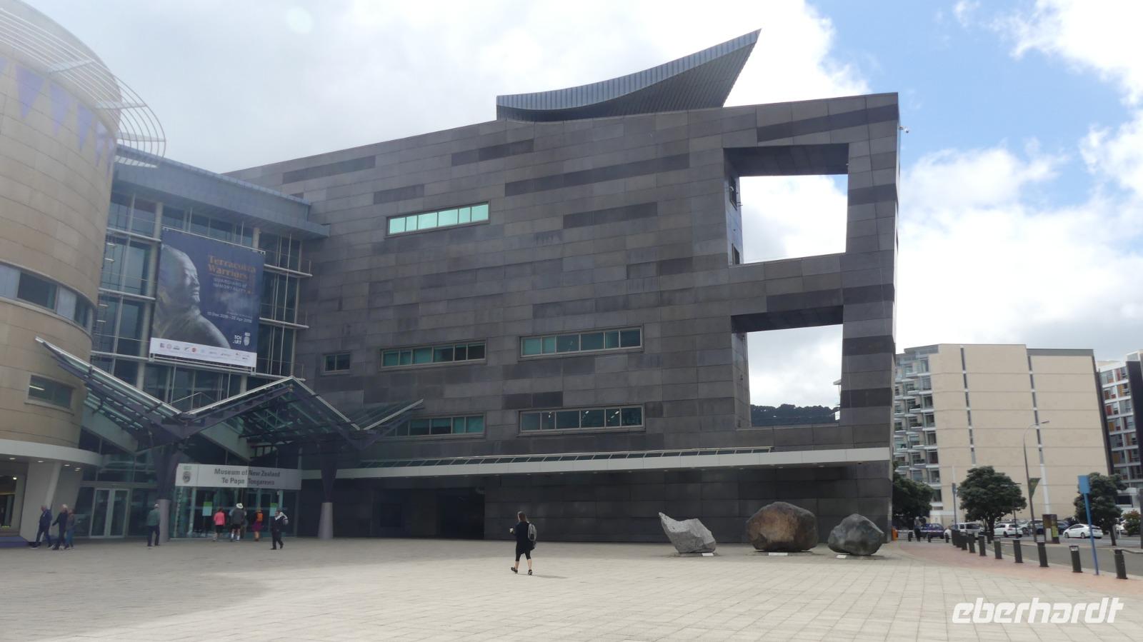 Wir unternehmen am Vormittag eine halbtägige Rundfahrt „Wellington Panorama" von der Reederei. Wir beginnen am Nationalmuseum Te Papa. Allerdings ist das Museum nicht auf unseren Besuch vorbereitet, wir müssen eine halbe Stunde warten, bis es öffnet, was unsere Besichtigungszeit entsprechend verkürzt. Auch für den Botanischen Garten und den Aussichtspunkt Mount Victoria hätten wir uns mehr Zeit gewünscht. Der Busfahrer ist so freundlich und setzt uns an der Talstation der Cable Car ab, nachdem er uns auch die Shuttle Busstationen gezeigt hat. So können wir jetzt, wer möchte, eine kleine eigene Tor unternehmen: die rote Cable Car gehört zu den Wahrzeichen Wellingtons. Wir fahren mit der Bahn hinauf zum Botanischen Garten, den wir in Ruhe ohne Zeitdruck besichtigen. Neben der heimischen Flora befinden sich hier auch Pflanzen aus verschiedenen Regionen der Welt wie z. B. Australien. Auch verschiedene interessante Vögel sind zu sehen. Zurück in die Innenstadt am Hafen geht es wiederrum mit der Cable Car. Am Lambton Quay bummeln wir an Geschäften vorbei. Ein Straßenstand mit frisch geernteten Süßkirschen lädt zum Kosten ein, allerdings liegt der Kilopreis bei stolzen 28 Neuseeländischen Dollar, rund 15 Euro.