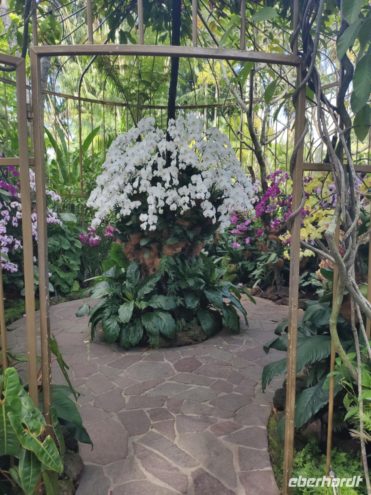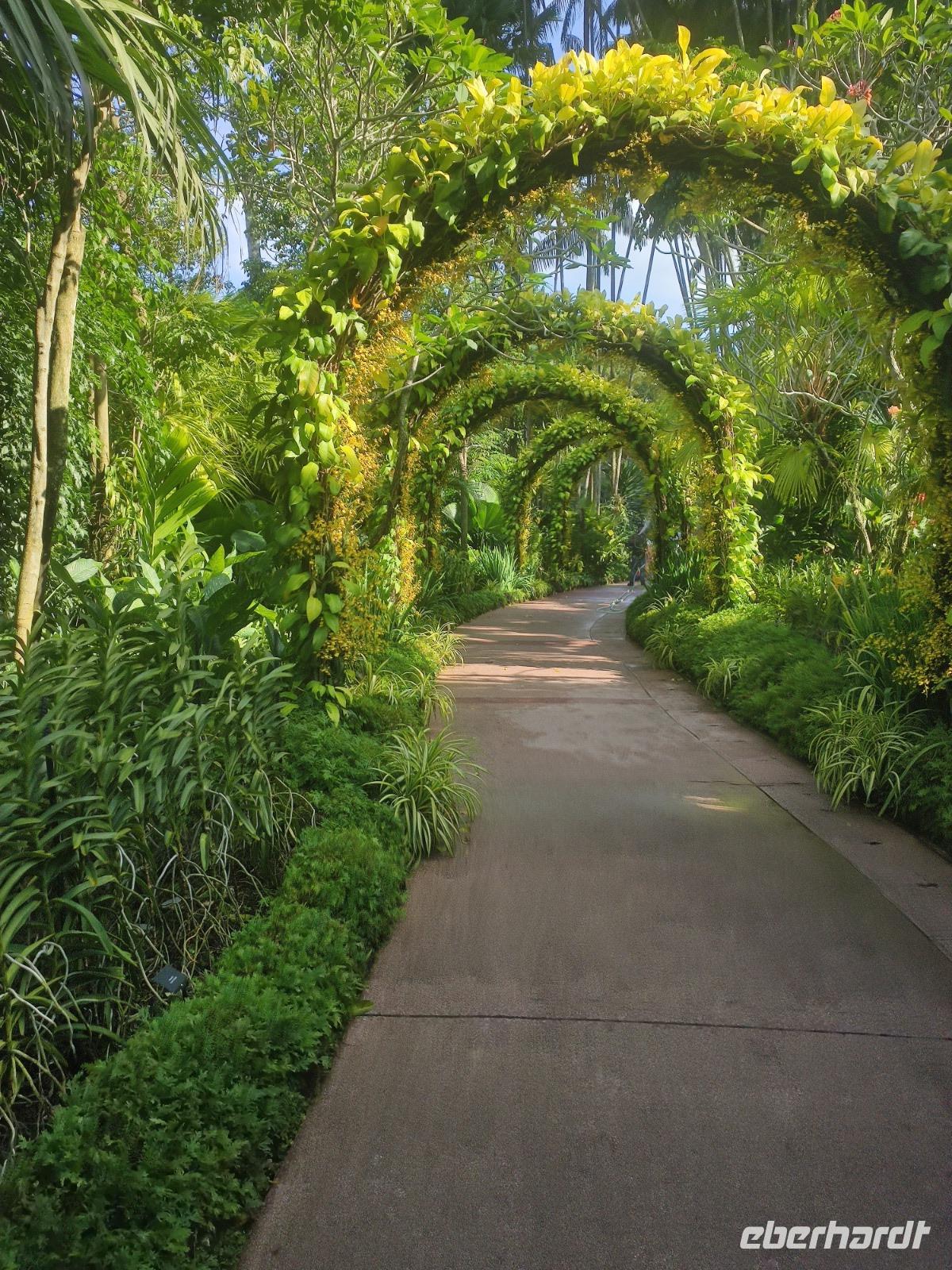 Nach dem Frühstück, das auf der Hotelterrasse eingenommen wurde, unternahm ein Teil der Reisegruppe einen Spaziergang entlang des Singapore Rivers zum Merlion, einer wasserspeienden Statue in der Nähe des Marina Bay Sands Resort. Andere nutzten den freien Vormittag, um das große Aquarium zu besichtigen oder den Gardens by the Bay einen Besuch abzustatten. Gegen Mittag holte uns der örtliche Guide David vom Hotel ab, um zuerst eine kleine Stadtrundfahrt zu unternehmen. Am Padang, einer Rasenfläche in der Innenstadt machten wir Stopp und gingen von hier einen kurzen Fußmarsch hinunter zum Wasser. David erklärte, dass der Merlion eine Mischung aus Löwe und Meerjungfrau darstellt und sowohl für die Stärke Singapurs, als auch die Verbundenheit der Stadt mit dem Meer stehen soll. Singapur ist eine sehr wohlhabende Stadt, vor allem da Menschen aus den Nachbarländern hier ihr Geld anlegen. Hinzu kommt der große Anteil des Tourismus, vor allem in Kombination mit dem Glücksspiel. Allerdings folgen auch andere Länder diesem Beispiel, so plant Japan in Tokio ein ähnliches Projekt, wie das Marina Bay Sands Resort, daher wird es in den nächsten Jahren für Singapur wichtiger werden, andere Einnahmequellen zu erschließen. Als gelungenes Beispiel für die Koexistenz von verschiedenen Ethnien kann Singapur dennoch gelten. Die 6 Mio. Einwohner kommen zum größten Teil aus China, Malaysia oder aus Indien. Dies spiegelt sich auch in den vier Amtssprachen wider oder in den vertretenen Religionen. Dieses Zusammenleben konnte man gut während der Stadtrundfahrt erleben, so fuhren wir zuerst nach Chinatown, wo wir eine kleine Runde drehten. Allerhand Souvenirs wurden hier angeboten, gerade da in diesen Tagen das chinesische Neujahrfest vonstattenging. Besonders interessant war die hohe Sauberkeit innerhalb der Stadt. So gibt es beispielsweise keine mobilen Essensstände, sondern nur fest installierte Buden, da so ein Mindestmaß an Hygiene garantiert werden kann. Jeder der Essen anbietet, bekommt ein Zertifikat, das aussagt wie sauber es dort ist. Auf diese Weise hat man als Tourist immer gleich eine Vorstellung von der Qualität des Essens. Im Anschluss stand der Besuch des Botanischen Gartens auf dem Programm. Insbesondere der Orchideengarten stellte sich als prachtvoll heraus. Auch unsere Kanzlerin kam bereits in den Genuss, dass eine Orchideenart nach ihr benannt wurde. Das letzte Viertel, das besucht wurde, war das Indische Viertel. Inder stellen mit gut 8 % eine wichtige Bevölkerungsgruppe. An den einzelnen Obstständen wurden wir eingeführt in die unterschiedlichen Gemüse- und Obstsorten, die hier verkauft werden. Darüber hinaus erfuhren wir von David, an welchen Merkmalen und dekorativen Details der Kleidung man eine verheirate indische Frau erkennen kann. Nachdem wir das Abendessen eingenommen hatten, ging es zum Flughafen, mit dem Ziel Richtung Australien aufzubrechen.