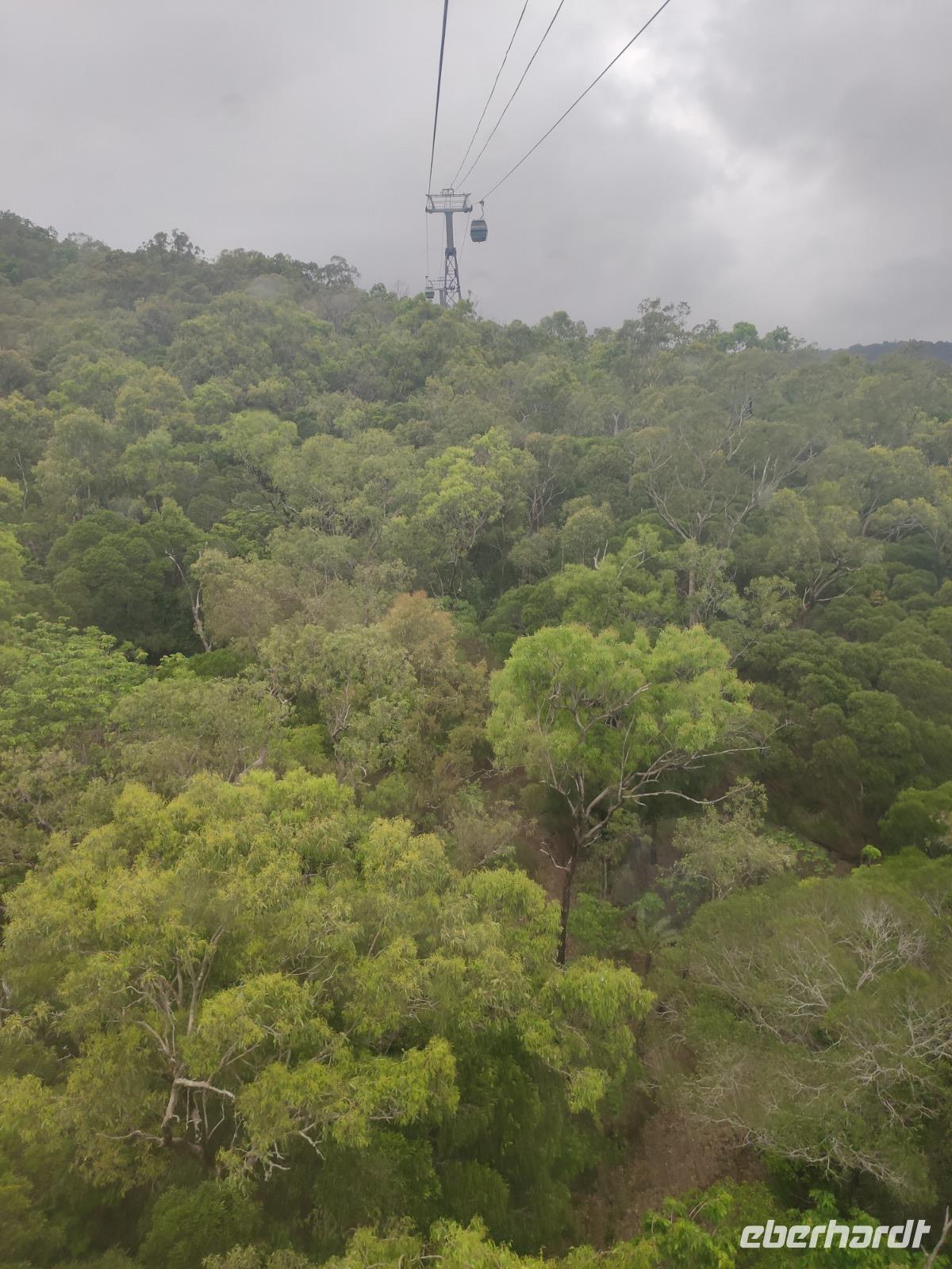 Mit Silk Air flogen wir an diesem Tag nach Cairns, in Queensland. Am dortigen Flughafen holte uns die örtliche Reiseleiterin Gabriele ab und fuhr mit uns ins Grand Chancellor Hotel. Dieses lag nochmals 20 km nördlicher im Küstenort Palm Cove (Palmen Bucht) und empfing uns mit einem großen Pool, der nach dem Bezug der Zimmer reichlich genutzt wurde. Gut ausgeruht stieß man am Abend darauf an, endlich den australischen Kontinent betreten zu haben. Zur Feier des Tages erwartete uns ein leckeres Abendessen im „Reef-House", direkt an der Strandpromenade gelegen. Der ein oder andere Gast hatte in den späten Abendstunden sogar noch das Glück Wallabys zu beobachten. Die kleinen Kängurus waren zum Teil so mutig bis an die Terrassen der Hotelzimmer heranzukommen.
