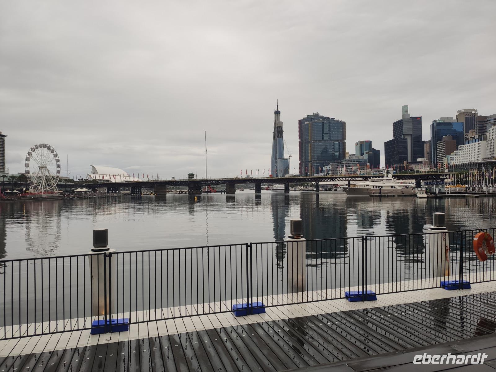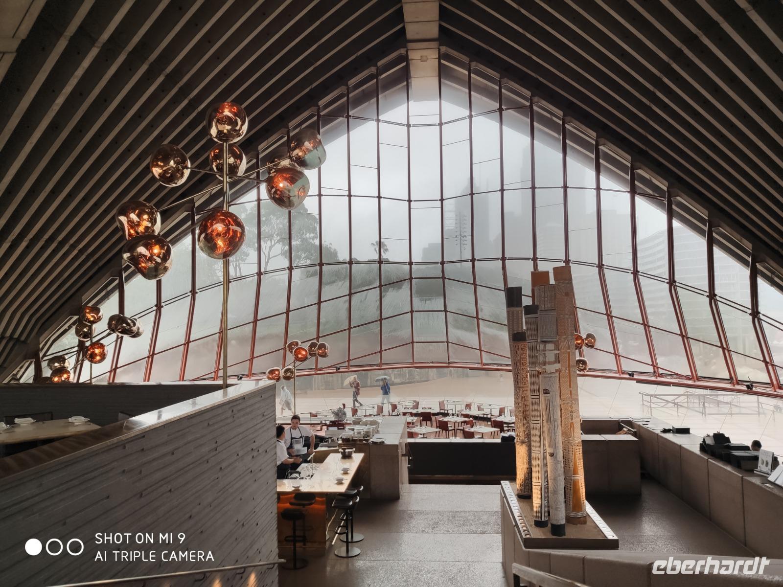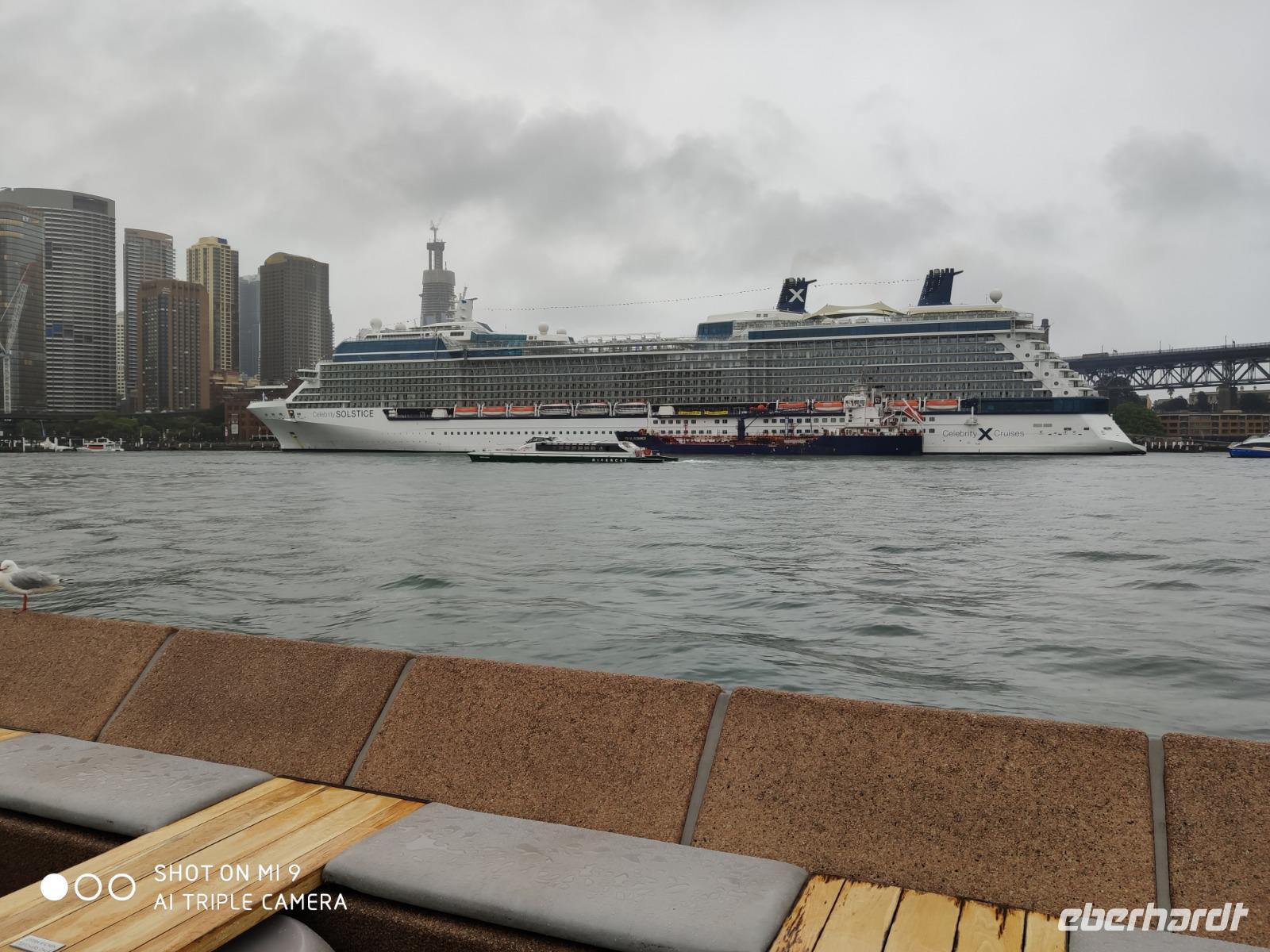 Bevor man für die nächsten 10 Nächte an Bord der Celebrity Solstice gehen konnte, stand ein besonderer Programmpunkt auf der To-Do Liste. Das wohl berühmteste Wahrzeichen der Stadt sollte genauer betrachtet werden. Nach dem Einladen der Koffer fuhr man mit dem Bus zum Opera House, dort angekommen musste man schnell sein, um halbwegs trocken das Bauwerk zu erreichen, immerhin schüttete es wie aus Eimern. Ein Segen für die Stadt und die umliegende Region, hatte es hier doch schon sehr lange nicht mehr geregnet. Karin berichtete uns von den Buschbränden, die noch vor wenigen Wochen die Stadt in Atem hielten. Unsere Opern-Führung startete im Restaurant Bennelong das zwei Michelin Sterne aufweist und gerade für den Mittagstisch hergerichtet wurde. Neben dem Utzon Room, der dem Architekten der Oper, dem Dänen Jørn Utzon, gewidmet ist, konnten wir auch Einblicke in das Studio, sowie das Drama Theater bekommen. Interessant sind vor allem zwei weitere Sachverhalte: Fast die gesamten Kosten für das Gebäude wurden durch eine Lotterie eingenommen. Traurigerweise hat der Architekt Herr Utzon sein geschaffenes Werk nie selbst mit eigenen Augen gesehen, nachdem es 1966 zu einem Zerwürfnis zwischen ihm und der australischen Regierung kam. Im Anschluss daran betrat der Däne nie wieder australischen Boden. Auch für uns sollten es die letzten Schritte sein, die wir in der Stadt zurücklegten, da kurz darauf die Zeit gekommen war, Bye Bye zu sagen und auf der Celebrity Solstice einzuchecken. Dies ging flott vonstatten, sodass man mit einem ersten Glass Sekt auf die bevorstehende Kreuzfahrt anstoßen konnte, bevor es an das Beziehen der Kabinen ging. Am Abend kehrte man in das Restaurant Erpernay ein, wo ein reichhaltiges Drei-Gänge Menü bereits wartete, währenddessen das Schiff langsam aus dem Hafen von Sydney auslief.