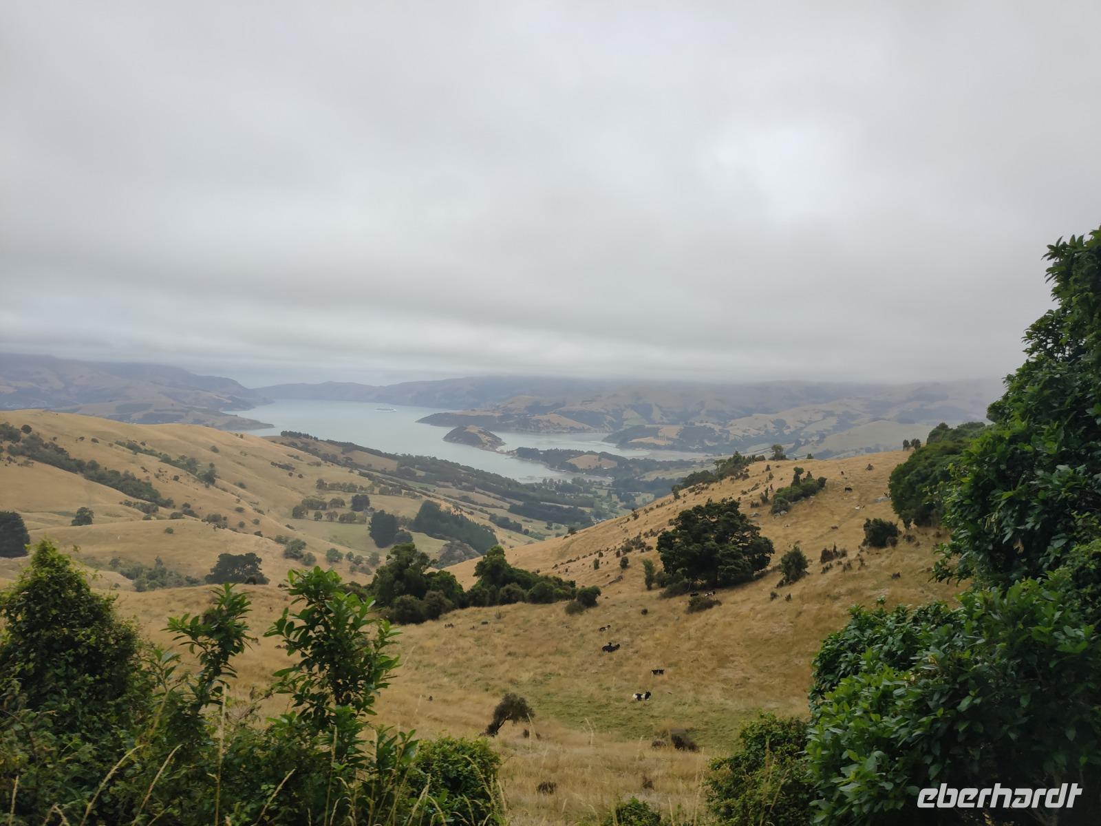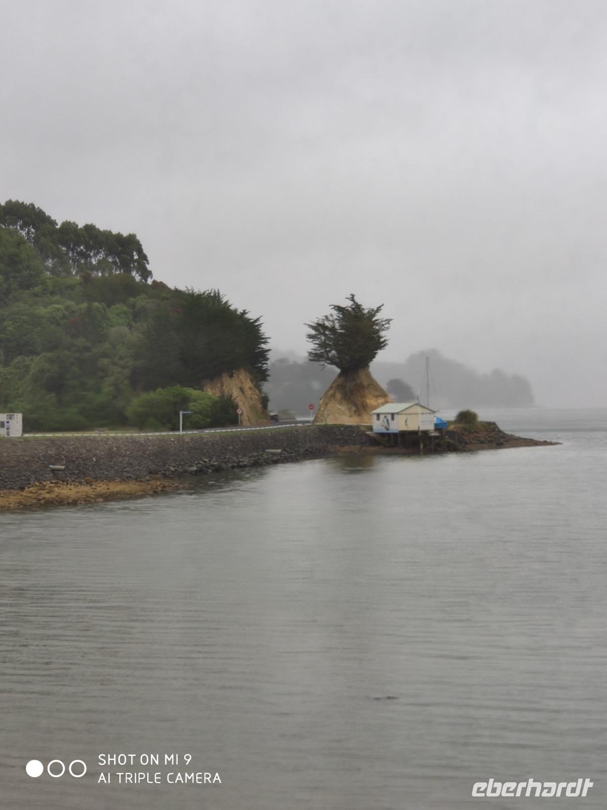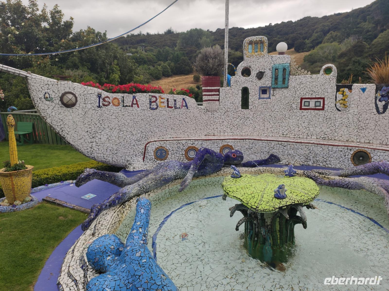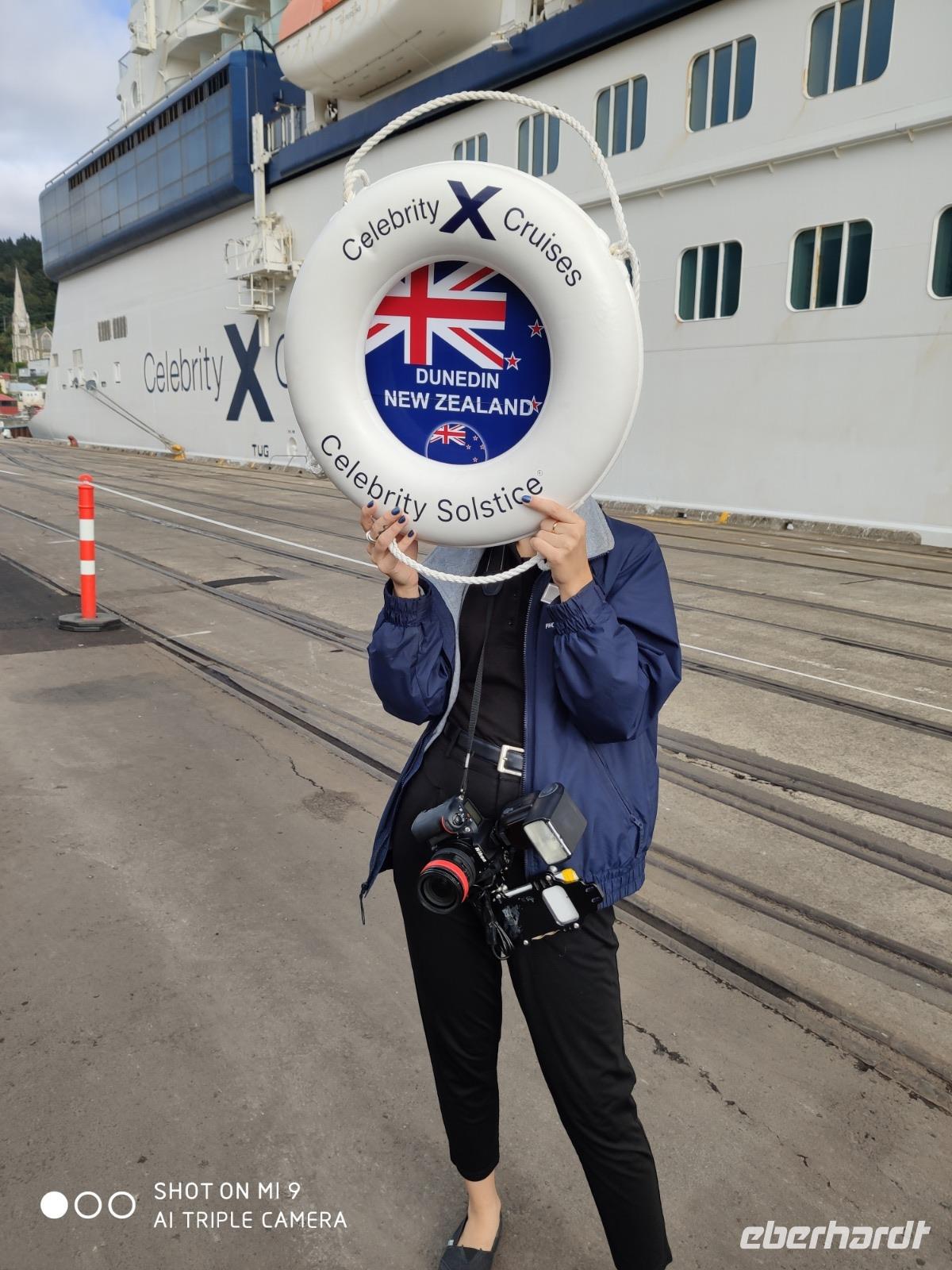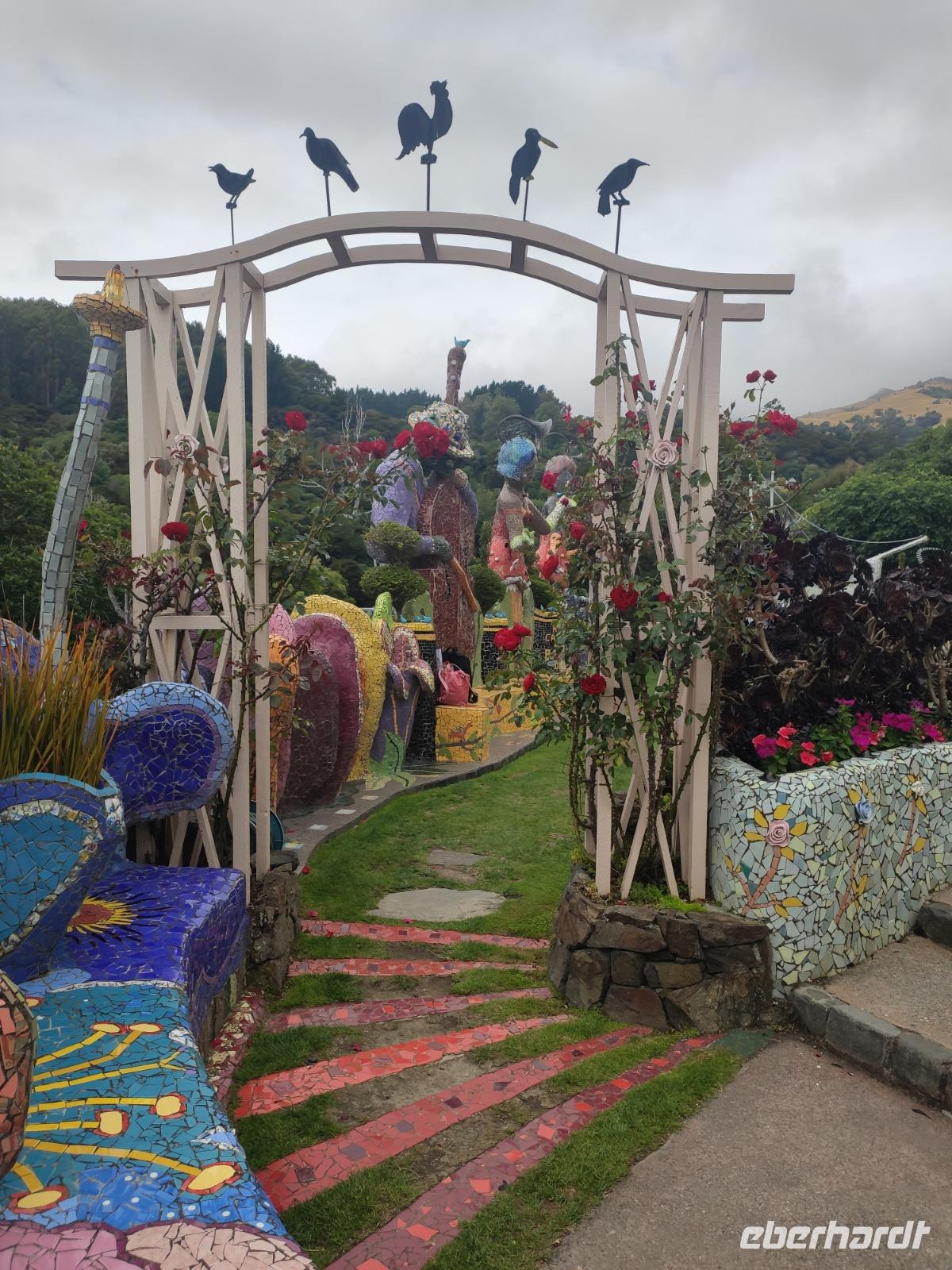 Akaroa, von französischen Siedlern im Jahr 1840, errichtet, kann kein Schiff dieser Größenordnung am Hafen unterbringen, sodass heute getendert werden musste. Nach dem Frühstück bestieg man eines der kleinen Boote, um nach 20 Minuten Fahrzeit den kleinen Ort zu erreichen. Ein kurzer Spaziergang führte zum Leuchtturm, der 1880 seiner Bestimmung übergeben wurde, die Schiffe sicher in den Hafen zu lotsen. Entlang der Küstenstraße mit zahlreichen Souvenir Läden und Restaurants kam man in das Zentrum des Ortes. Hierbei fiel auf, dass sowohl die Straßen als auch die Geschäfte französische Namen trugen. So wurde auch die örtliche Polizeistation als Gendarmerie bezeichnet. Zur Mittagszeit bestieg man den Bus, um eine Fahrt in das Hinterland der Halbinsel zu unternehmen. Die Berge, die sich dort auftürmen sind bis zu 500 Meter hoch und boten, trotz des Nebels, fantastische Ausblicke auf die zahlreichen Buchten. Unser örtlicher Busfahrer erklärte uns, dass bis 1916 die Ureinwohner, genannt Maori, sich gegen die Briten auflehnten und bis heute nicht alle Streitfragen geklärt sind. Entlang der Halbinsel lebt hier die seltenste Delfinart, die sogenannten Hector Delfine. Diese sind leider vom Aussterben bedroht, weswegen sie sicher behütet in Aufzuchtstationen groß werden. Zum Abschluss stand noch der Besuch des „Giant House" auf dem Programm. Der Name kommt daher, dass ein kleines Mädchen dieses Haus immer aus dem Tal sah und es ihr demnach so riesig vorkam. Folglich leitete sie für sich ab, dass dort Riesen leben müssten. Im Jahr 1880 wurde das Anwesen von einem englischen Bankier errichtet, bevor die Künstlerin Josie Martin es kaufte und nach und nach restaurierte. Der eindrucksvolle Garten mit zahlreichen wunderschönen Mosaikfiguren, wurde zum Teil mit den Werken von Hundertwasser verglichen. Rechtzeitig zum Nachmittagstee war man wieder zurück auf dem Schiff. Am Abend stand noch das gemeinsame Essen auf dem Programm, bevor das Theater besucht wurde, in dem Werke von Mozart neu inszeniert wurden. Dies wurde mit reichlich Akrobatik untermalt.