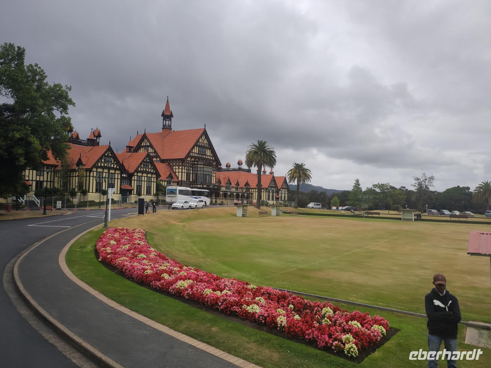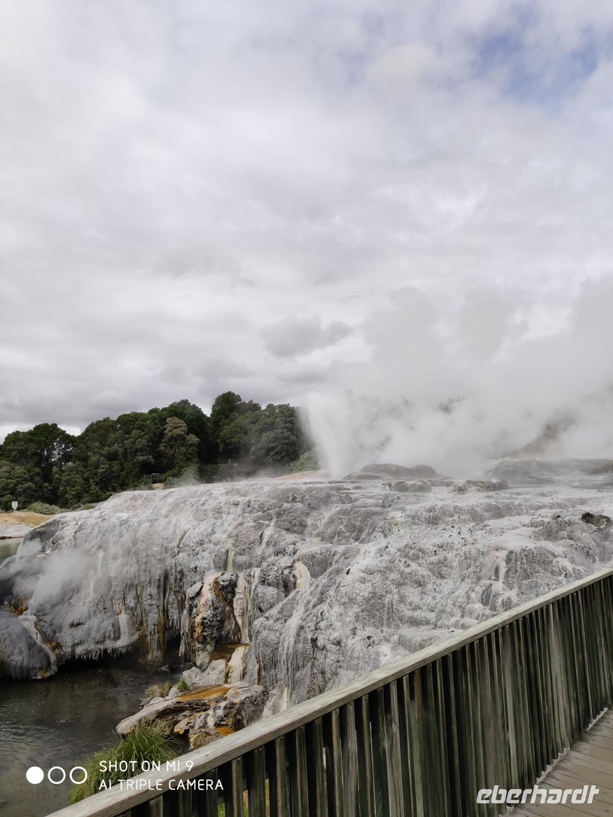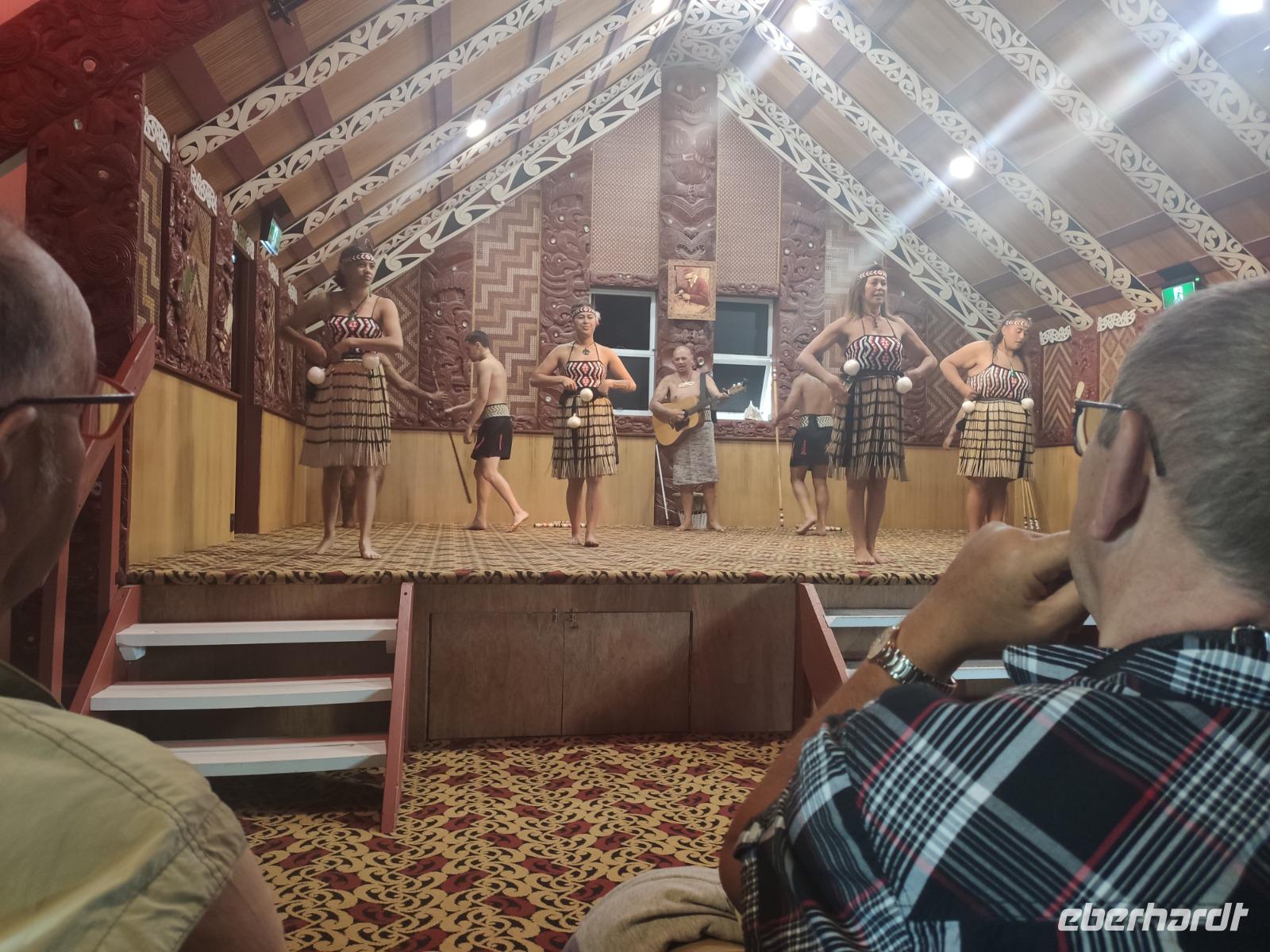 Am nächsten Morgen konnte man beim Einlaufen in den Hafen das Geschick des Kapitäns mit eigenen Augen sehen. Die Hafeneinfahrt ist hier besonders schmal, zudem gibt es einige Sandbänke, die eine zusätzliche Schwierigkeit darstellen. Am heutigen Tag stand der Ausflug nach Rotorua an, dazu versammelte sich die Reisegruppe zu früher Stunde im Theater des Schiffes um anschließend gemeinsam den Bus zu besteigen, der uns zuerst entlang der Strandpromenade von Tauranga fuhr. Hier sind in den letzten Jahren die Immobilienpreise, wie in der gesamten Region in die Höhe geschossen. Grund dafür ist, dass zahlreiche Rentner ihren Alterssitz vom noch teureren Auckland hierher verlagern, da sowohl das Wetter sehr gut sei als auch die „günstigeren" Häuserpreise und Lebenshaltungskosten locken. Auf dem einzigen Highway Neuseelands, auf dem 110 km/h erlaubt sind, fuhren wir in Richtung unseres ersten Stopps dem Wai-O-Tapu Geothermalpark. Dabei erzählte uns unser Fahrer, dass nicht der Tourismus die wichtigste Einnahmequelle der Region darstellt, da dieser „nur" saisonal ist, sondern der Anbau von grünen und goldenen Kiwis die größte Rolle spielt. Diese Früchte hießen ursprünglich „Chinese gooseberries", allerdings wurden sie erst durch die Namensänderung so wirklich ein Verkaufsschlager. Die Superfrucht enthält mehr Vitamin C als eine Orange und jede wird von Hand gepflückt. Bei -1 Grad gelagert, hält sie sich bis zu 12 Monate, das erklärt warum Kiwis rund um das Jahr im heimischen Supermarkt zu bekommen sind, wenngleich die meisten in Deutschland aus Italien und nicht NZ stammen. Um vor allem während der Haupterntezeit das Ganze abwickeln zu können, setzen die Farmer sowohl auf Backpacker als auch auf Ausländische Erntehelfen wie Inder, Polynesier oder Indonesier. Kurz vor dem Park konnte man die ersten Rauchschwaden erkennen, die wie Nebelwolken aus der Natur aufstiegen. Im ersten Moment hätte man hier darauf tippen können, dass diese auf ein Brand hindeuten. Im Naturpark angekommen, konnte man dann aber sehen, dass diese zu den Kratern gehören, die die Landschaft durchziehen. In diesen sammelt sich bis zu 80 Gard heißes Wasser. Je nach Farbe des Wassers lassen sich unterschiedliche Mineralien nachweisen. Gelb weist demnach auf Sulfur hin, Rot auf Eisen. Der Geruch, der dabei an den Kratern entsteht, hatte etwas von verfaulten Eiern. Nach 90 Minuten Aufenthalt bestiegen wir wieder den Bus, der uns zum Mittagessen auf den Raddampfer „Lakeland Queen" brachte. Mit dem Dampfer befuhr man gemächlich den Rotorua See und bediente sich an den frischen Muscheln des Buffets. Wieder an Land angekommen unternahm man eine kurze Stadtrundfahrt durch das Städtchen und sah unter anderem die schönen „Government Gardens". Diesen legten die Briten an und nutzten die unterirdischen Quellen für ihre Badehäuser. Noch heute sind hier viele Sanatorien. Auch nach einer Chemotherapie kommen Menschen aus aller Welt hierher, um verlorene Mineralstoffe wieder aufzunehmen. Den Abschluss des Tagesausflugs bildete der Besuch von Te Puia, einem Kulturzentrum, das von den Maori betrieben wird. Die Maori sind die indigene Bevölkerung von Neuseeland, das sie als erstes besiedelten und stammen ursprünglich aus Polynesien. Zuerst führte uns unser Guide zum „Pohutu Geysier", auf dem er früher ebenfalls gespielt und gebadet hat. Dieser speit zweimal die Stunde bis zu 80 Grad warmes Wasser aus und spielt im alltäglichen Leben der indigenen Bevölkerung eine wichtige Rolle. So wird zum Beispiel direkt im heißen Wasser die Nahrung zubereitet und gekocht. Der zweite Stopp führte uns zu einem Schlammkrater. Dieser breitet sich immer weiter aus und daher musste ein dahinter liegendes Hotel bereits evakuiert werden, da das Fundament mit der Zeit einstürzen wird. Der Schlamm, der aus dem Krater entnommen wird, enthält zahlreiche Mineralien, weshalb er insbesondere zur Herstellung von Kosmetika genutzt wird. Diese stellen eine wichtige Einnahmequelle für den Stamm dar. Weiter ging es im Anschluss zu dem Kiwi-Vogel. Die Neuseeländer bezeichnen sich selbst als Kiwi, in Anlehnung an ihr seltenes Nationaltier. Diese Gattung ist ausschließlich nachtaktiv, kann sehr schlecht sehen und verfügt deshalb über einen ausgeprägten Geruchssinn. Die Population nimmt rapide ab, seitdem das Land durch die Europäer kolonialisiert wurde. Ein Grund hierfür sind Hunde und Katzen, die die Kiwi Vögel jagen. Leider konnte man den anwesenden Vogel in der Dunkelheit nur erahnen und böse Zungen behaupten, es hätte auch ein kleines Kätzchen sein können, was dort hinter Glas zu sehen war. Wieder im Tageslicht angekommen, konnten wir noch kurz einen Einblick in die Handwerkstatt gewinnen, bevor wir zu einer Tanzvorführung in ein Maori Haus eingeladen wurden. Dort stand unter anderem der berühmteste Tanz der Maori, der Haka, auf dem Programm. Dieser wird beispielsweise auch von den „All Blacks", der Rugby Nationalmannschaft, vor ihren Spielen aufgeführt. So mancher aus der Reisegruppe wippte recht bald mit bei den präsentierten Liedern, sodass es umso trauriger war, als wir wieder aufbrechen mussten, um zum Schiff zurückzugelangen. Ein wenig traurig war man außerdem, als es hieß Abschied von unseren liebgewonnenen Kellnern zu nehmen. Im Anschluss wurden die Koffer gepackt, bevor man ein letztes Mal von den Wellen in den Schlaf gewogen wurde.