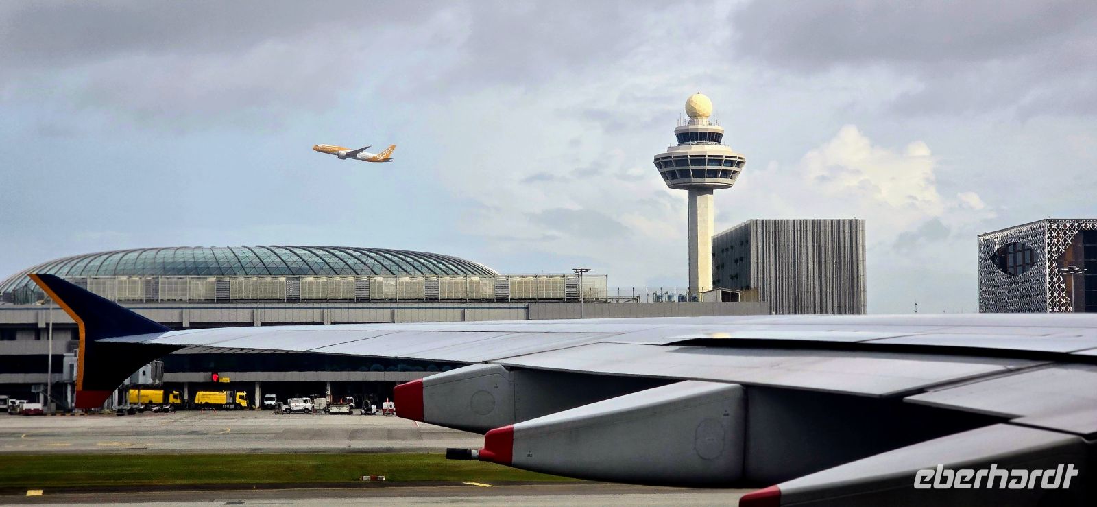 Ein endlos langer Tag über den Wolken – irgendwo zwischen Zeitverschiebung und Flugzeugsnack verschwimmt der Tag zum abend. Schließlich tauchen unter uns die Gebäude Singapurs auf, und mit leichter Verspätung setzt der A380 sanft am Changi Airport auf.