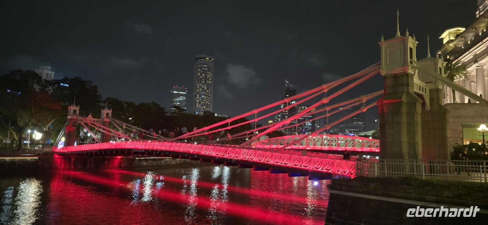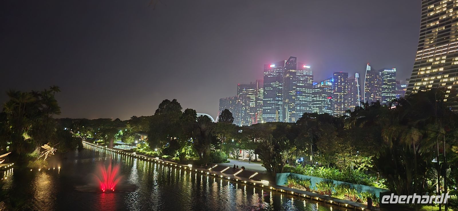 Im Hotel Gran Pacific an der City Hall geht das Einchecken schnell und unkompliziert. Einmal frisch gemacht, und schon geht’s per Taxi zur abendlichen Lichtershow auf der Event Plaza. Was für ein Empfang! Farben, Musik, Wasserfontänen – ein leuchtendes Willkommen im Herzen der Stadt. Dann geht es schnell rüber zu den Gardens by the Bay um uns von der Rhapsody Lichter und Musikshow verzaubern zu lassen, Momente zum Träumen, wieder erwacht spazieren wir gemütlich am Ufer entlang zurück zum Hotel. Die nächtliche Skyline glitzert, Boote ziehen vorbei, und die Partymeile der Quays pulsiert voller Leben. Müde, aber glücklich fallen wir ins Bett – Singapur hat uns gepackt.