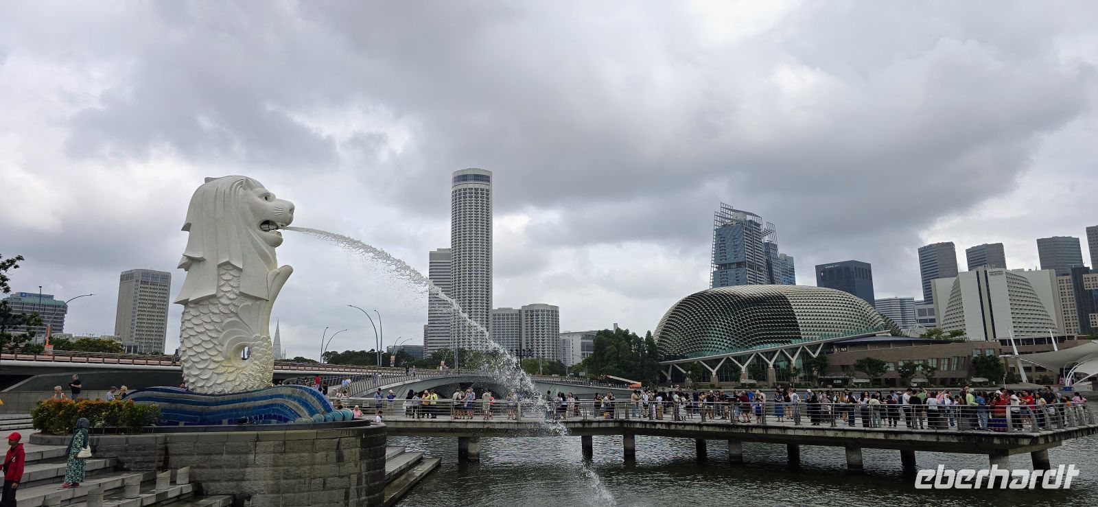 Nach einer erholsamen Nacht und einem ausgiebigen Frühstück starten wir bestens gelaunt zur Stadterkundung. Erster Halt ist das wohl bekannteste Wahrzeichen der Stadt: der Merlion. Halb Löwe, halb Fisch und rundum fotogen – ein perfekter Auftakt mit tollen Blicken auf die Skyline und das glitzernde Wasser. Die tropische Wärme lässt endgültig Urlaubsstimmung aufkommen.