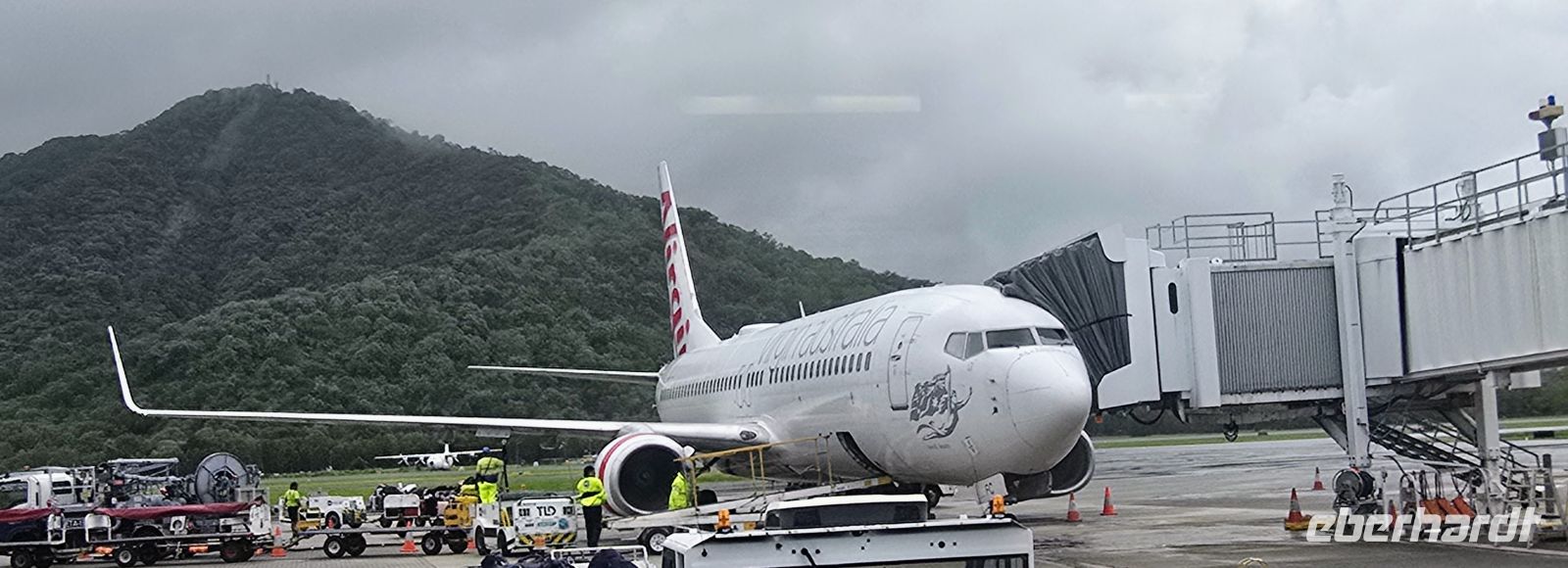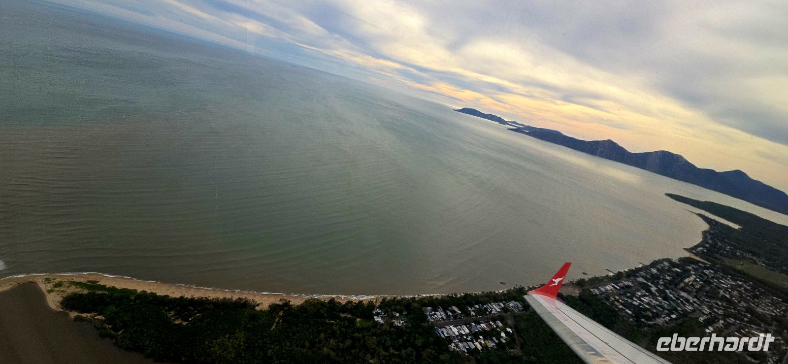 Kaum angekommen, geht es schon weiter. Direkt im Terminal checken wir für den Weiterflug mit Virgin Australia nach Cairns ein. Ein kurzer Bustransfer zum Terminal 2, ein wenig Warten – dann hebt die Maschine Richtung tropischer Norden ab. Unter uns glitzert das endlose Blau der Korallensee, ein echtes Urlaubsversprechen aus der Luft.