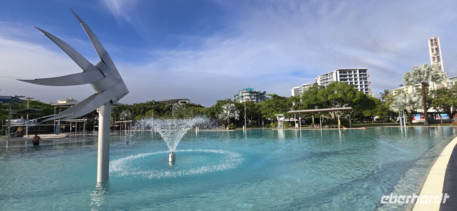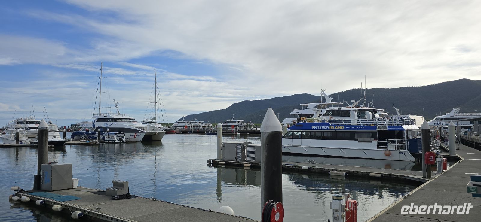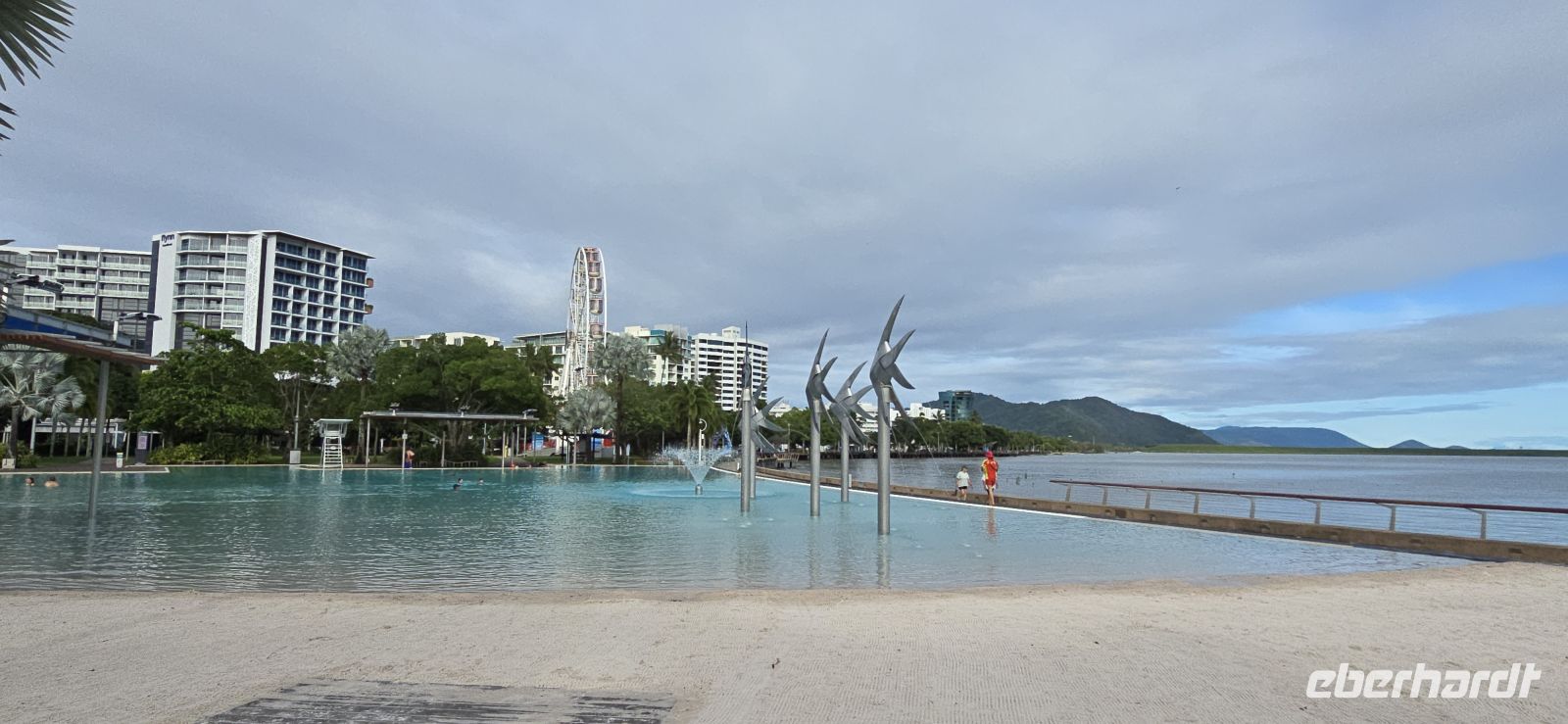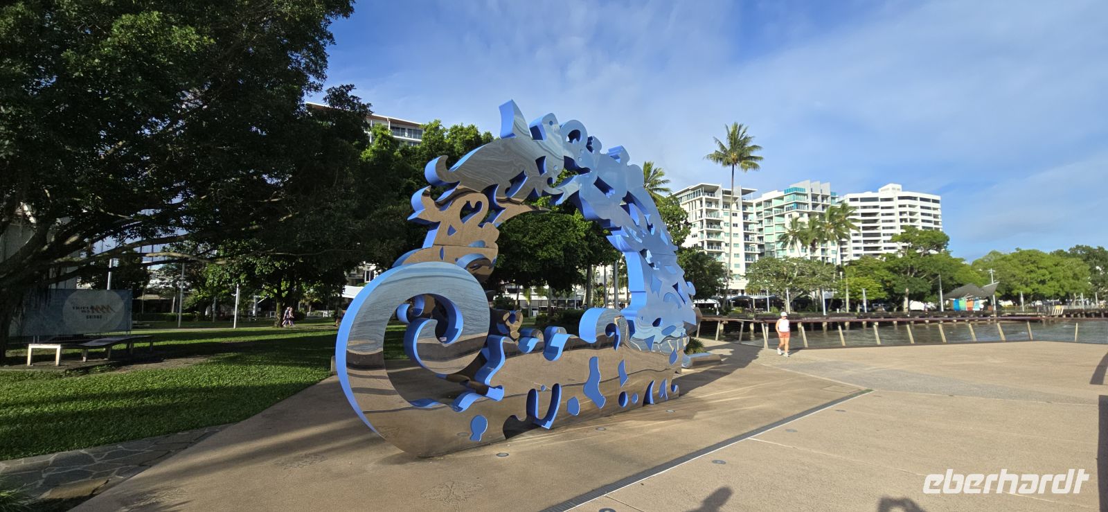 Cairns selbst zeigt sich davon erstaunlich unbeeindruckt. Sonne, 28 Grad, tropisch-schwül, kaum Wind – fast ein bisschen unfair. Also wird spontan umdisponiert und aus dem geplanten Seetag ein vielseitiger Stadt- und Genießertag. Ein Spaziergang entlang der Promenade bringt Urlaubsfeeling pur, Palmen rascheln, das Meer glitzert und der Himmel tut so, als wäre nichts gewesen.