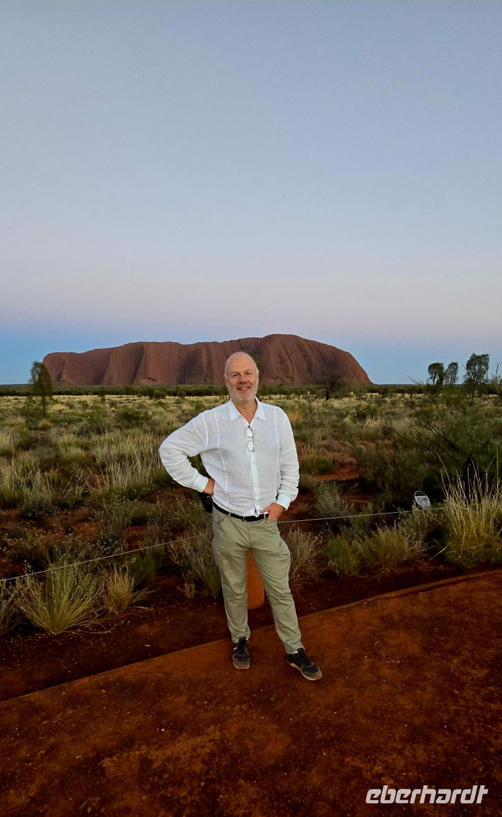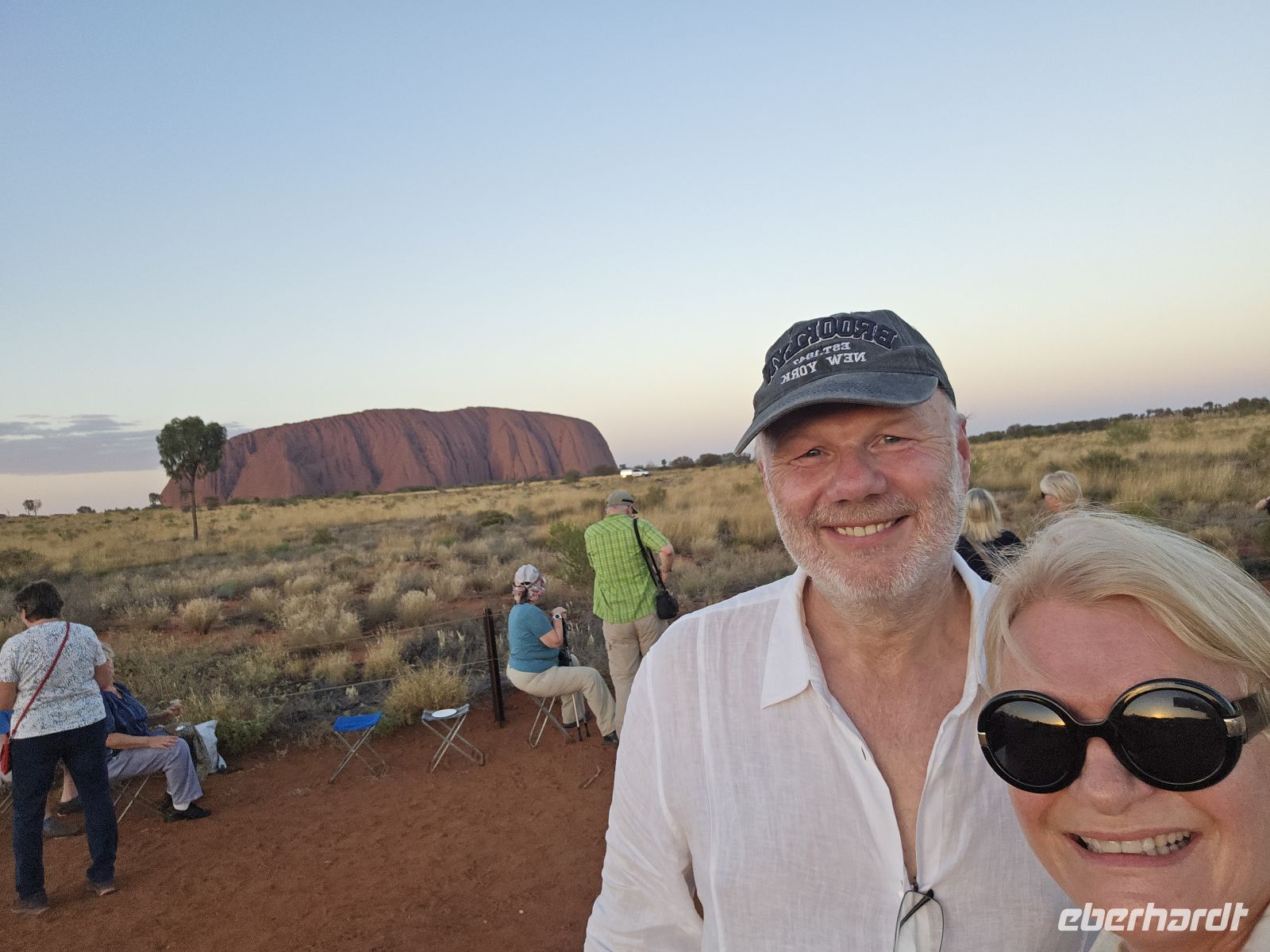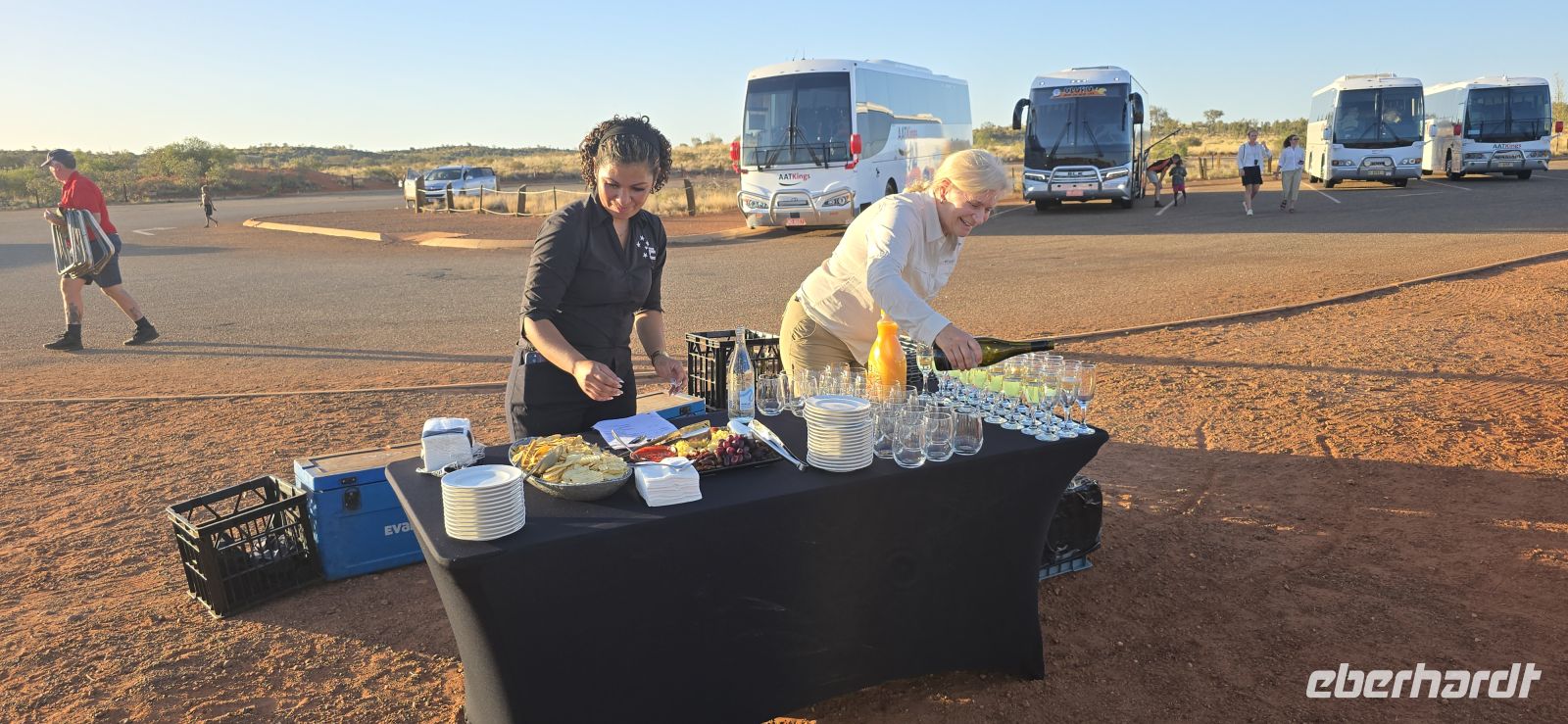 Am frühen Abend brechen wir erneut auf. Der Sonnenuntergang am Uluru steht an. Mit einem Glas Sekt und kleinen Snacks in der Hand erleben wir, wie der Felsen langsam seine Farbe wechselt: von warmem Orange über tiefes Rot bis hin zu dunklem Purpur. Ein Moment, der still macht und lange nachwirkt.