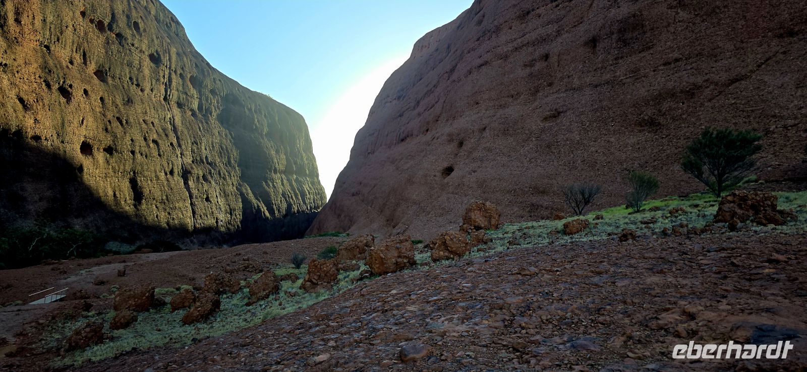 Gegen halb sieben fahren wir weiter zum nächsten Aussichtspunkt. Von hier bietet sich ein großartiger Panoramablick auf die Kata Tjutas, jene geheimnisvollen Felsformationen, die wie aus dem Nichts aus der Ebene auftauchen. Nach einem kurzen Fotostopp geht es zu Fuß hinein in die Walpa Gorge. Zwischen den gewaltigen Felsen spürt man die Kraft und Stille dieser uralten Landschaft – ein Ort, der Demut und Ehrfurcht weckt.