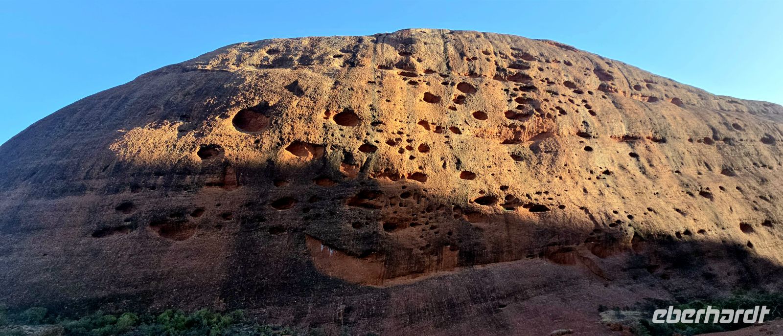 Unser erstes Ziel ist natürlich der Uluru selbst. Erste Fotos, erste ehrfürchtige Blicke – und dann ein Spaziergang entlang des Mala Walks. Schnell wird klar, warum hier alle mit Fliegennetzen unterwegs sind: Die Natur ist allgegenwärtig, in jeder Form. Wir umrunden den mächtigen Monolithen, stoppen am Mutitjulu Waterhole und sammeln weitere beeindruckende Eindrücke und Motive.